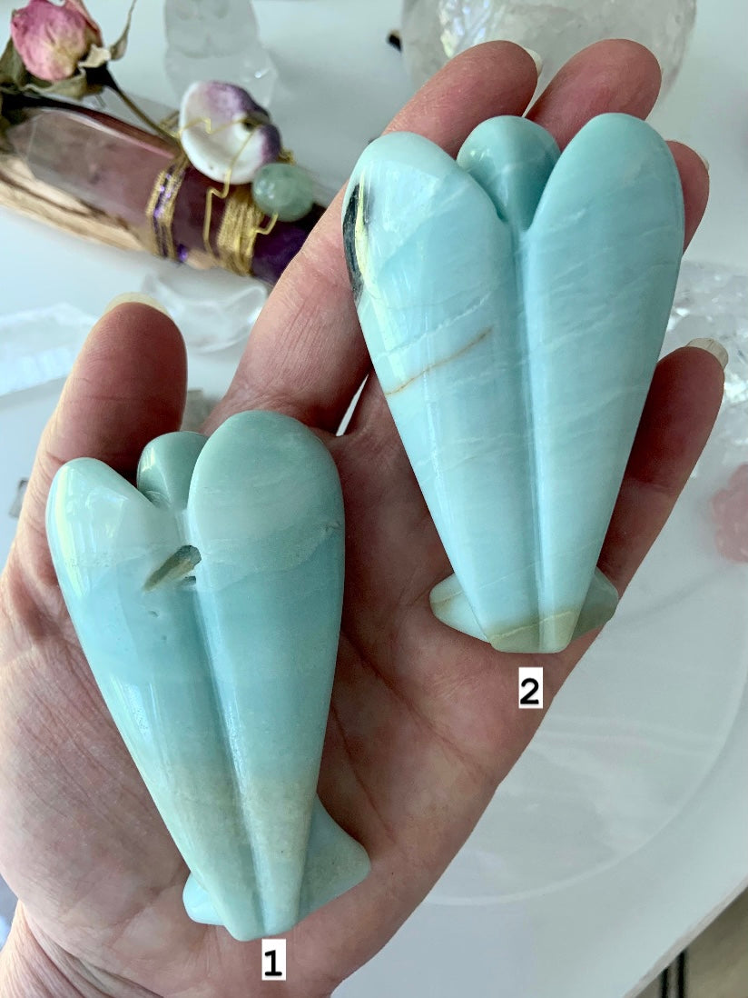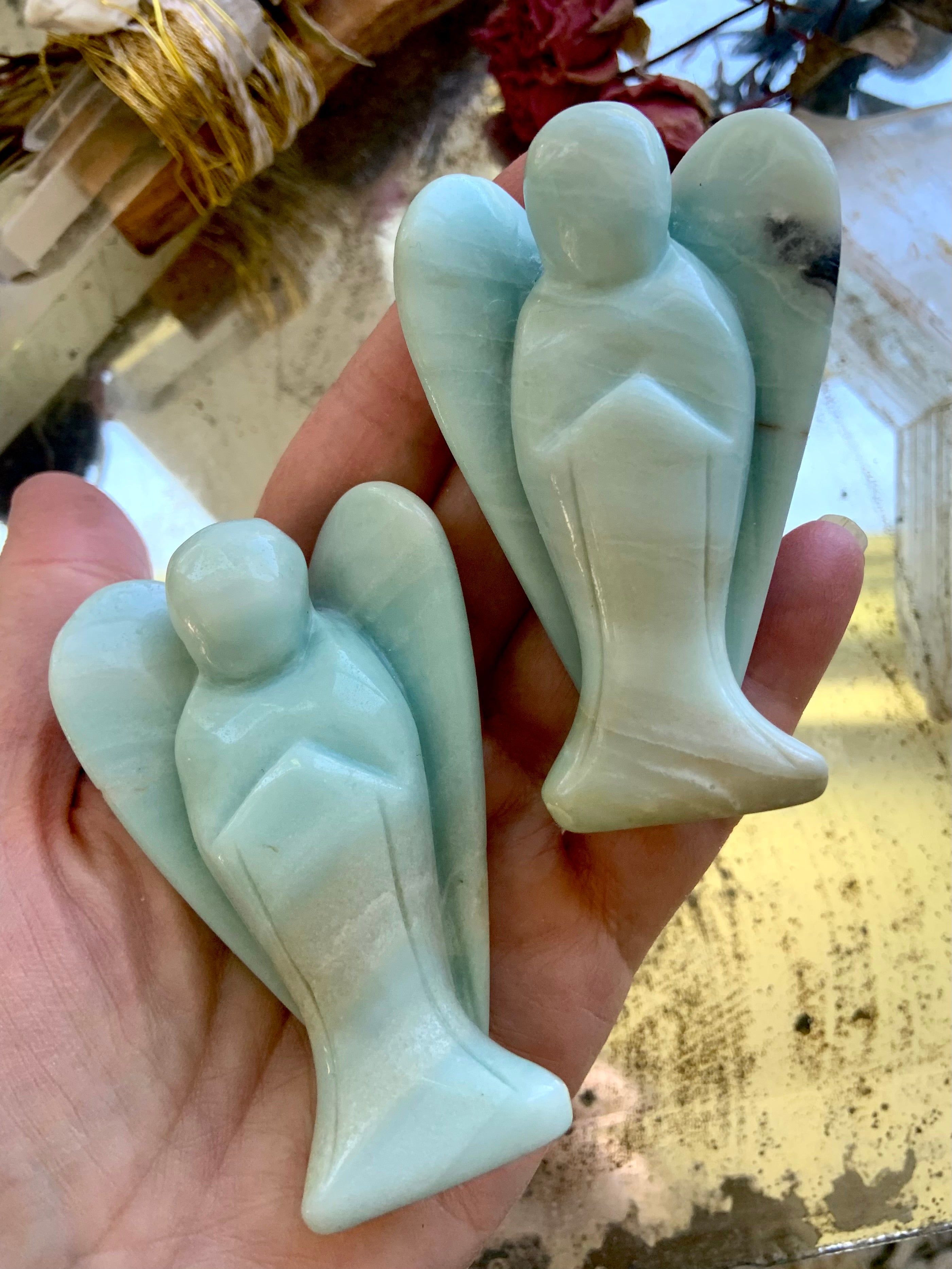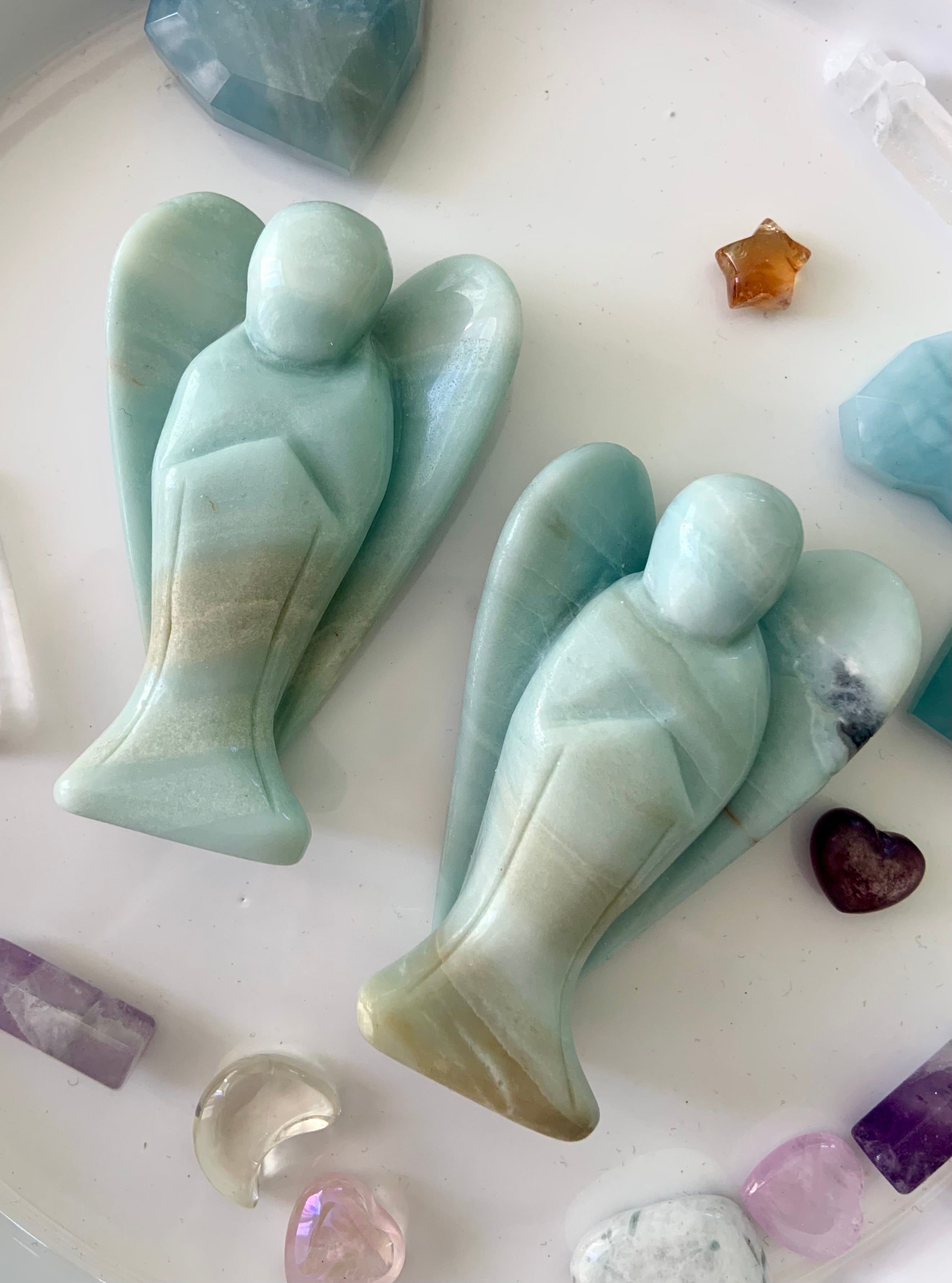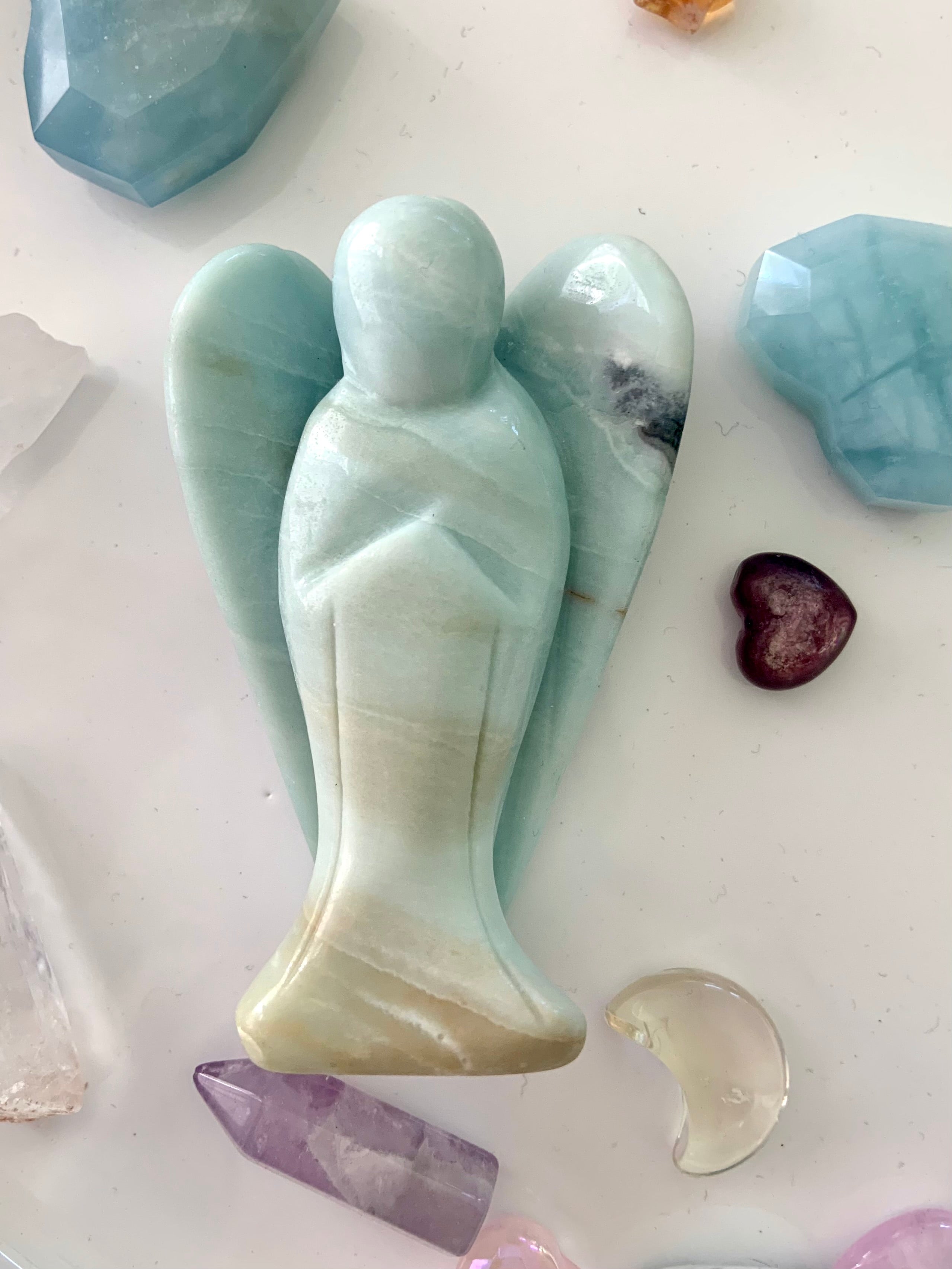 This collection includes Amazonite moons, stars, hearts, and our Heart Chakra Crystal Set, as well as high-quality Ice Amazonite bracelets. You’ll also find a rotating selection of one-of-a-kind spheres, dragons, angels, towers, and jewelry designed to support self-expression, confidence, and emotional clarity.
