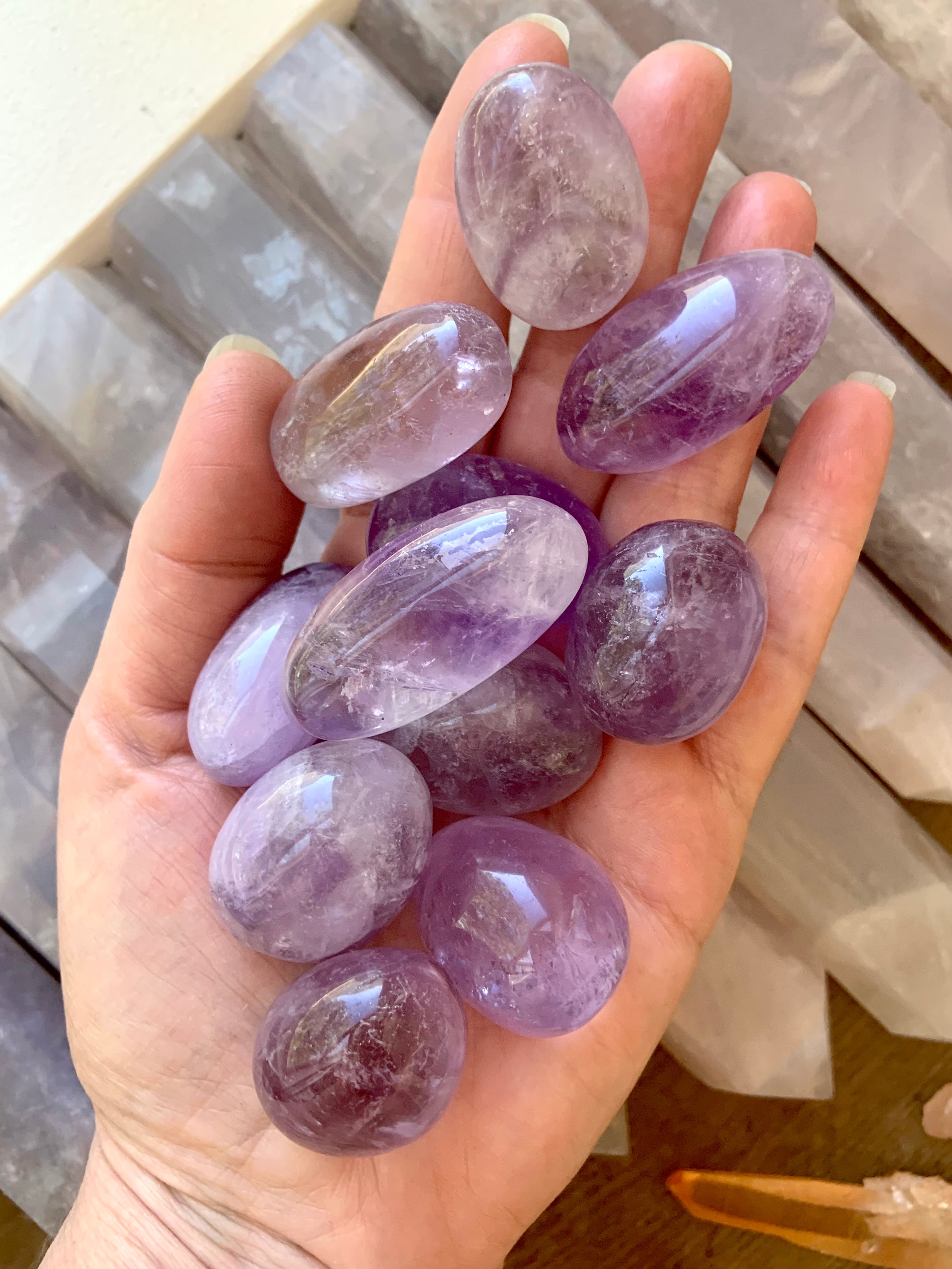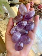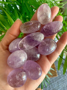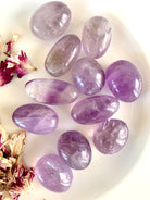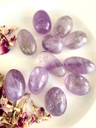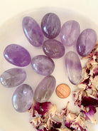 These light colored Amethyst tumbles are a good size to use as a meditation crystal, in your crystal grids, to make moon water, or carry as a pocket stone. These pretty purple crystals have a soft color, some have a bit of smokey quartz, others have phantom lines.