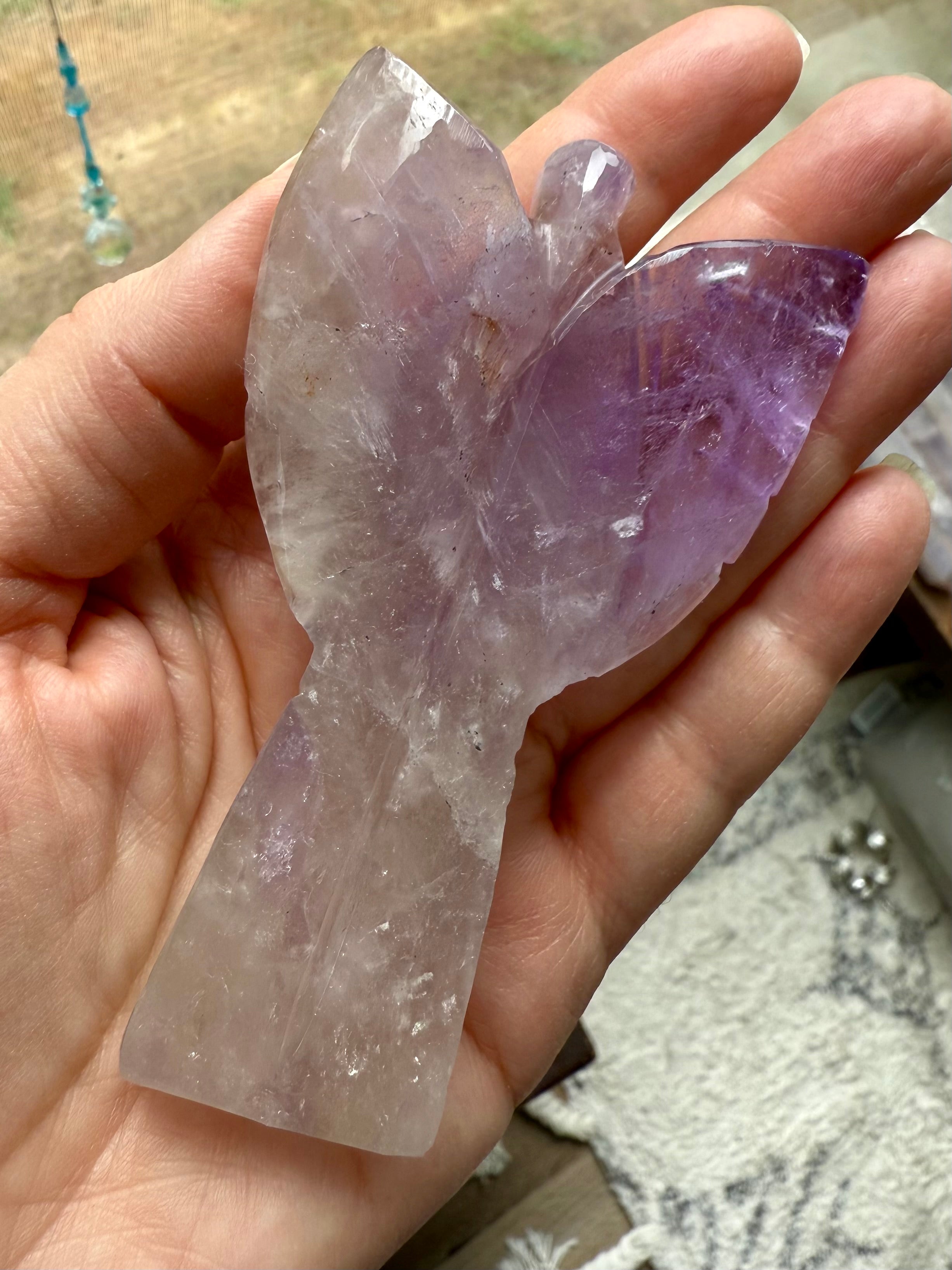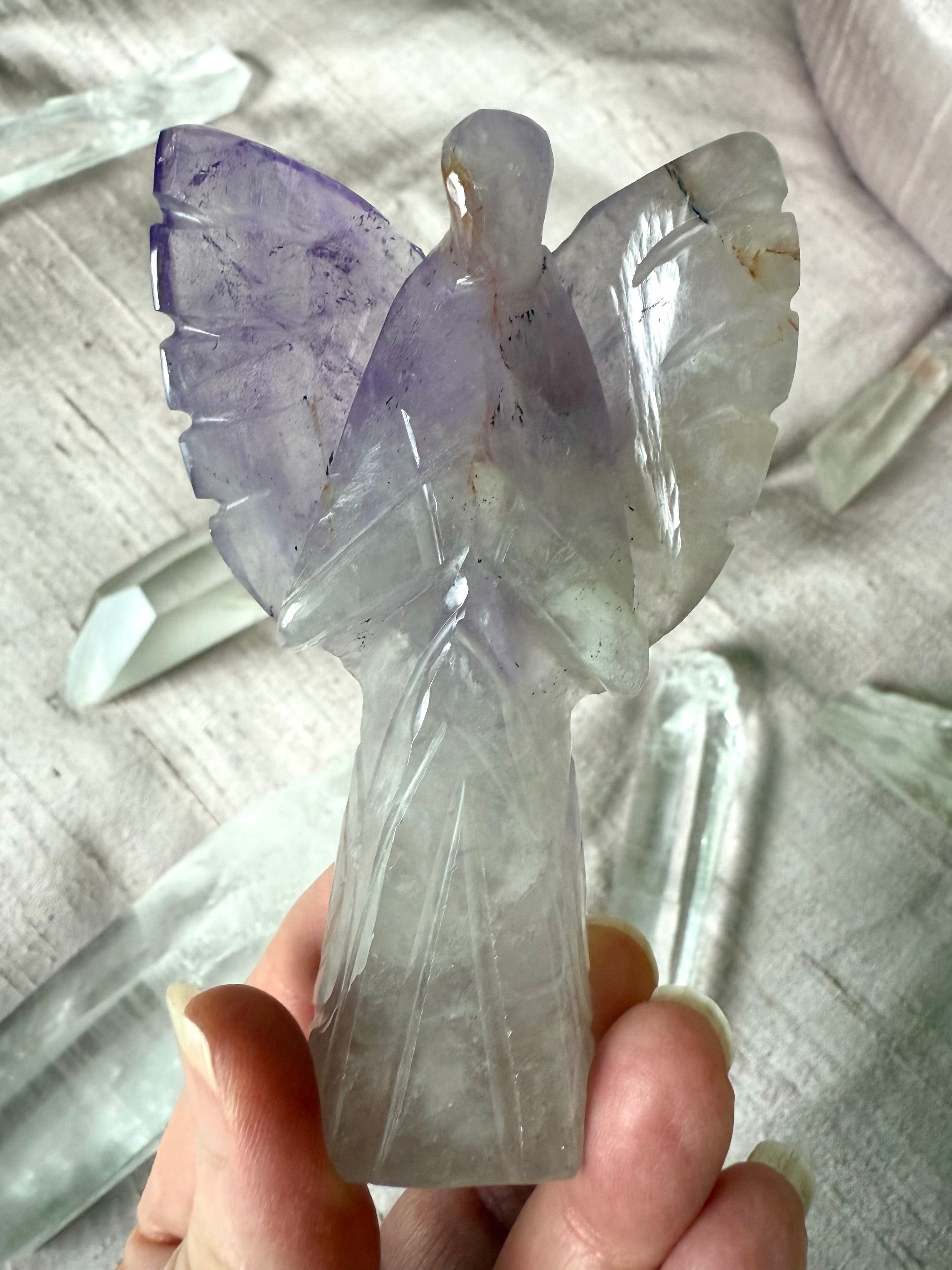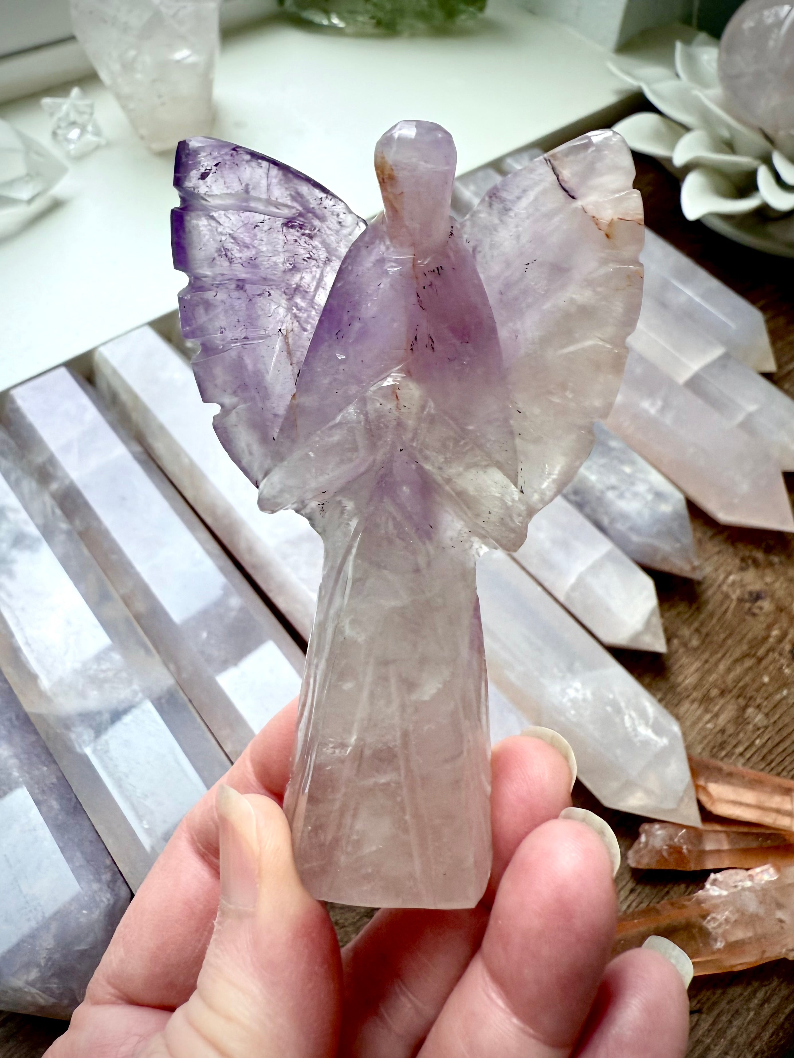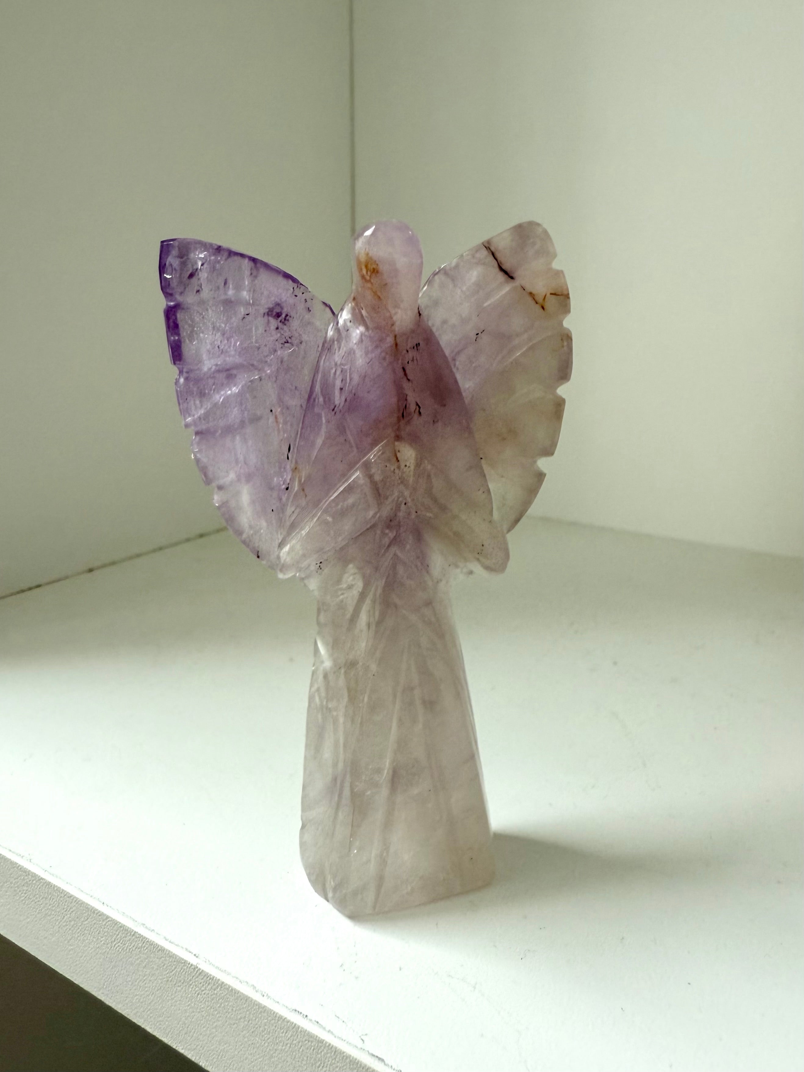 Amethyst has a high, sweet energy that is easily accessible through it's beautiful purple sparkles. Lovingly hand carved into the shape of an angel, the crystalline magic is potent, undeniable + ready to nurture you on your path.