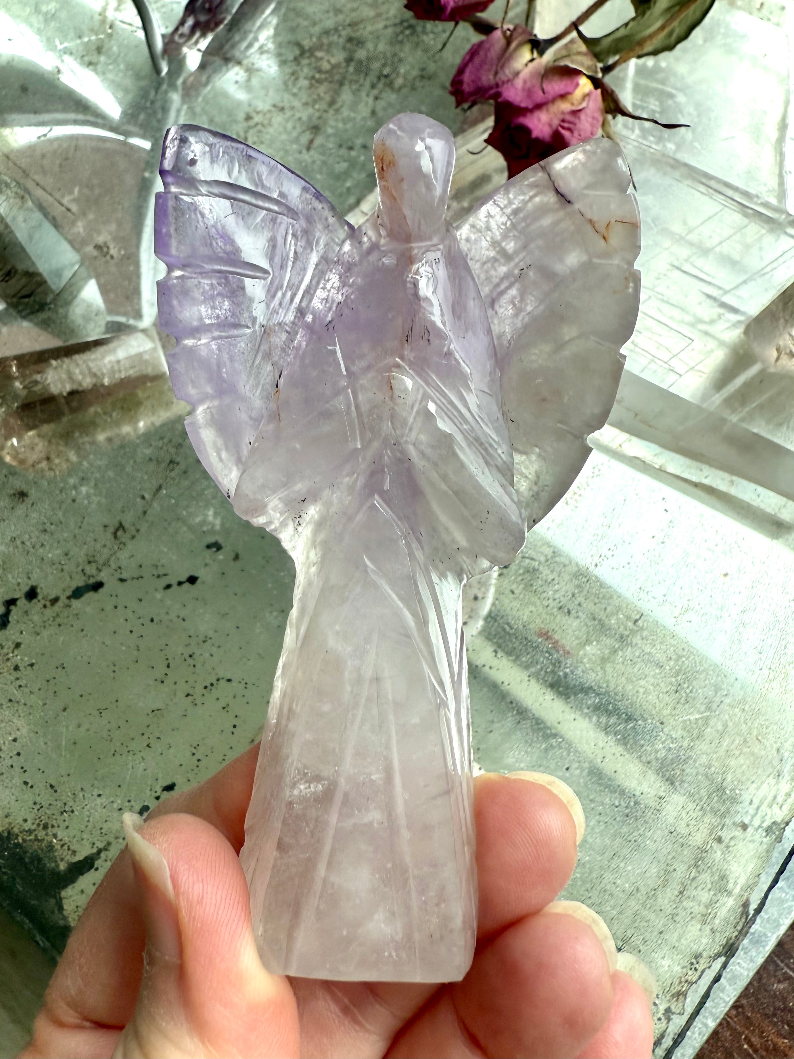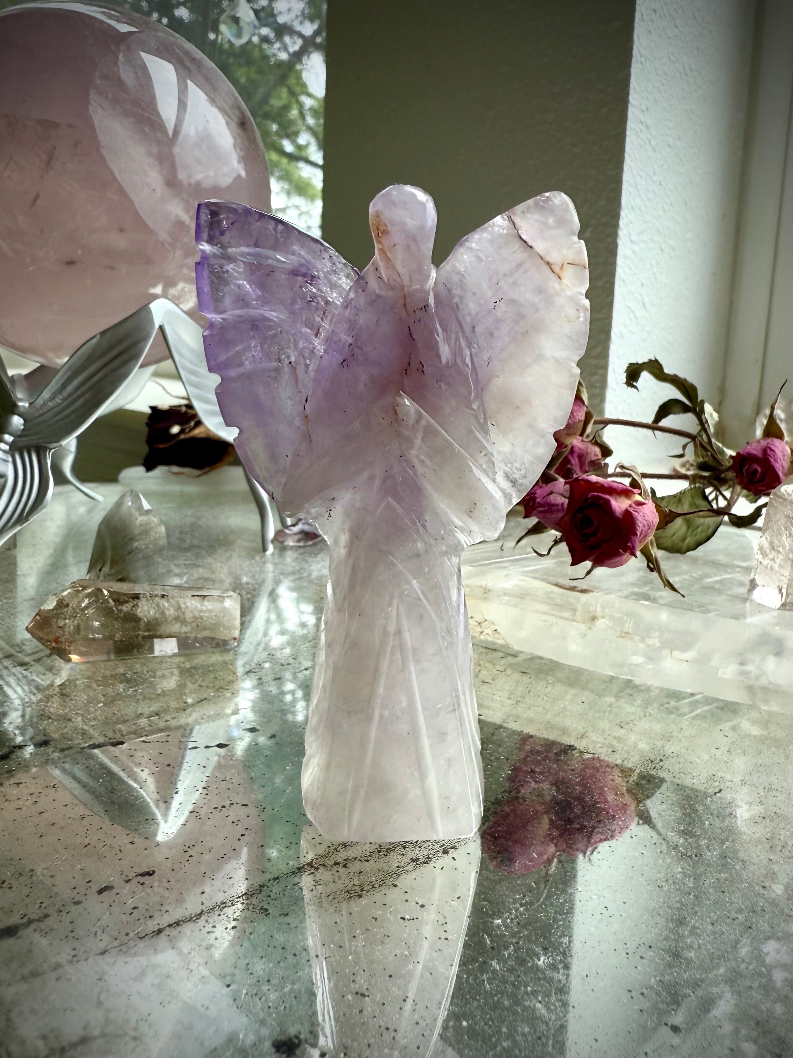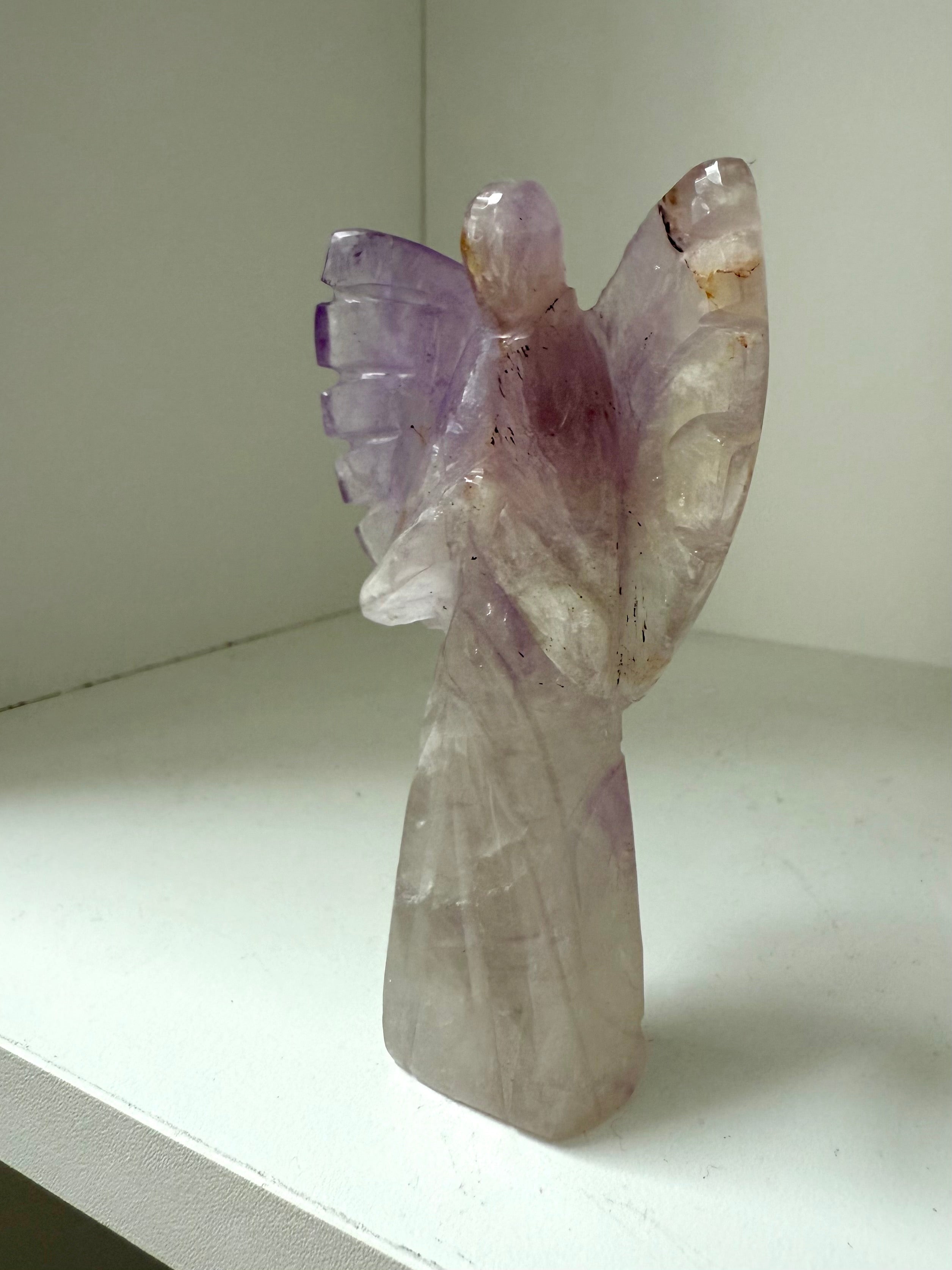 This is a nice sized angel carving that feels very nurturing to hold or looks lovely displayed amongst your special things. A crystal angel figurine makes a calming, supportive, transcendent energetic addition to your crystal healing toolkit to enhance your meditation practice, hold + amplify your prayers while elevating your sacred space with protective angelic energy.