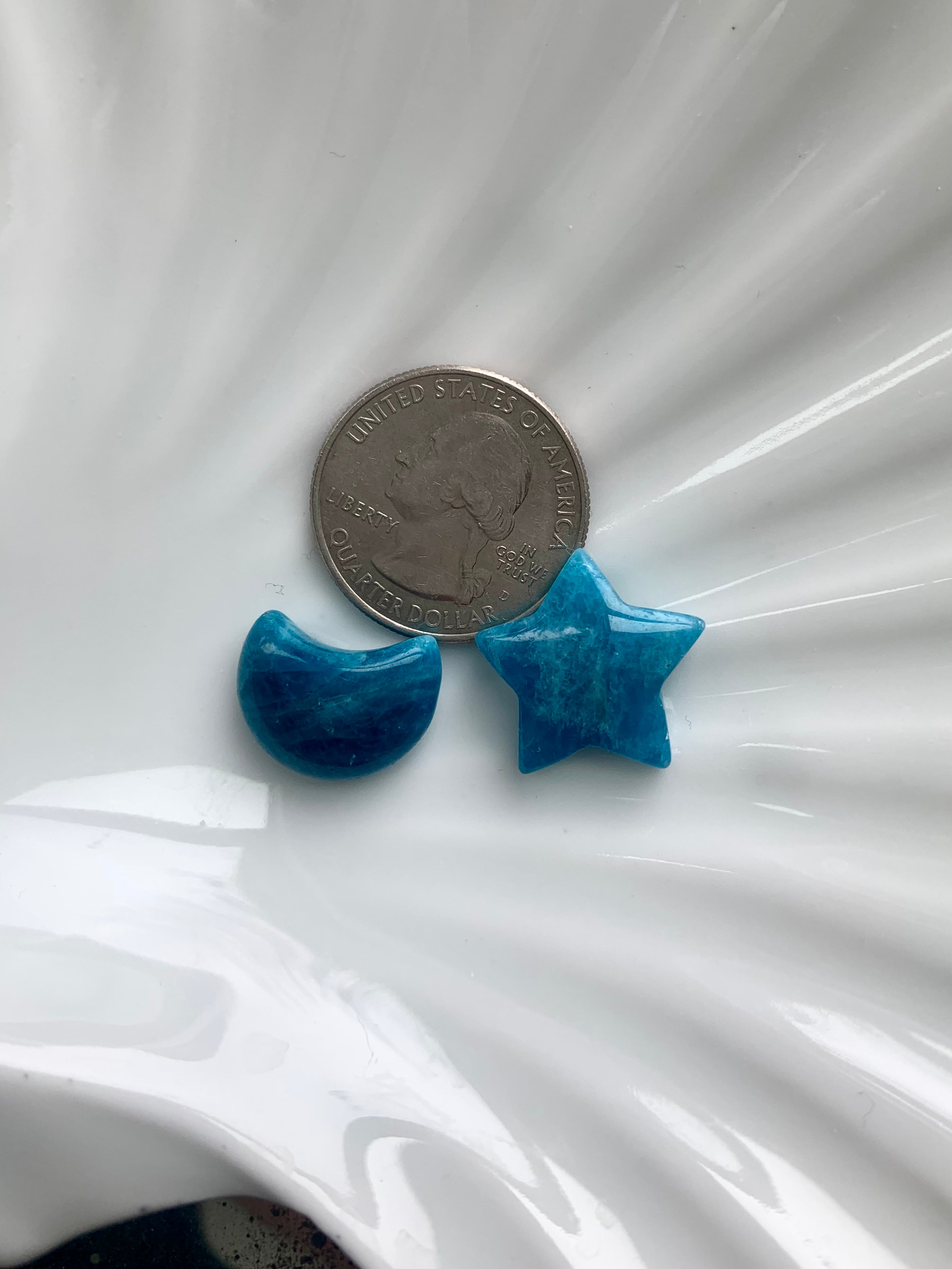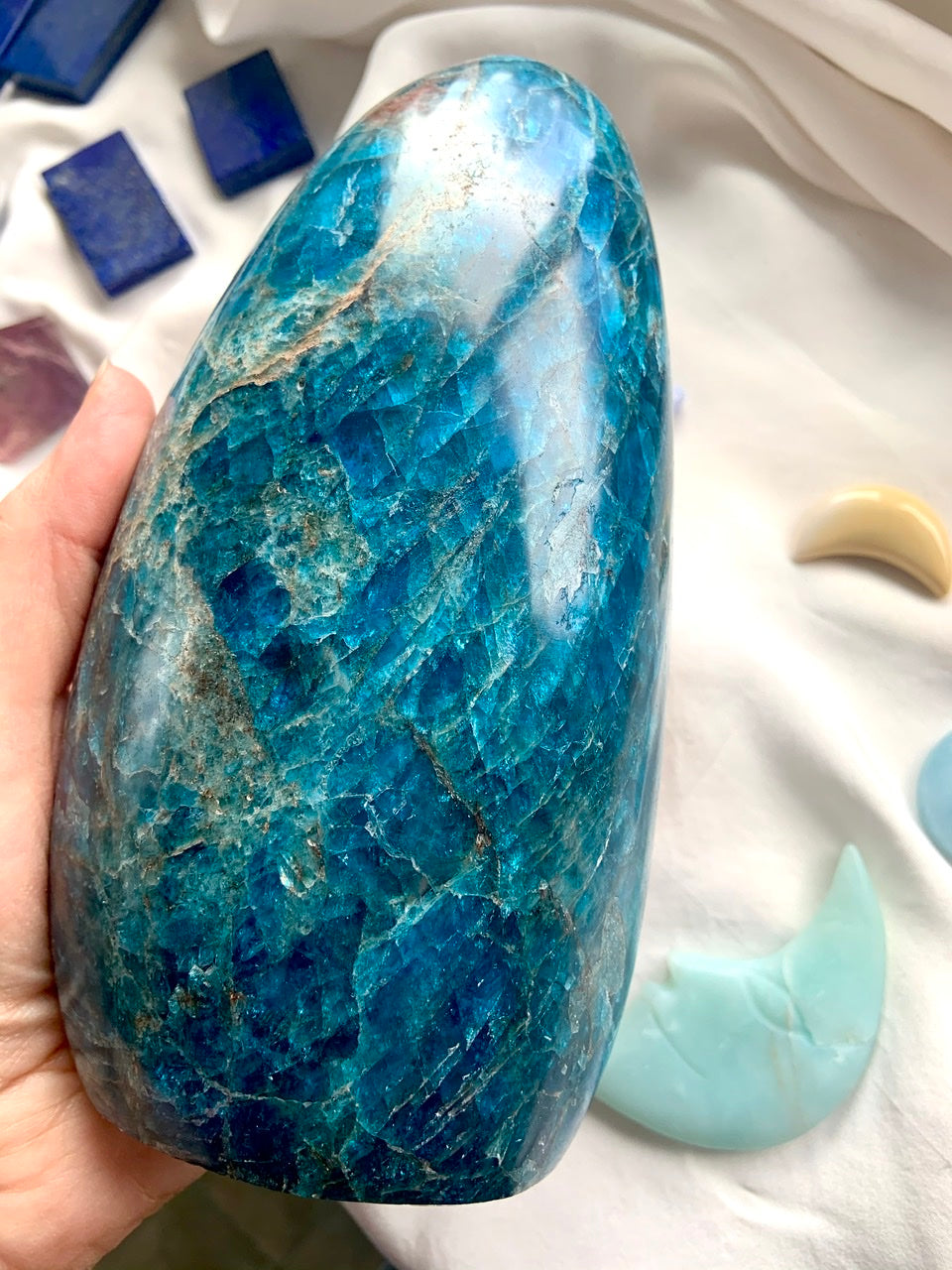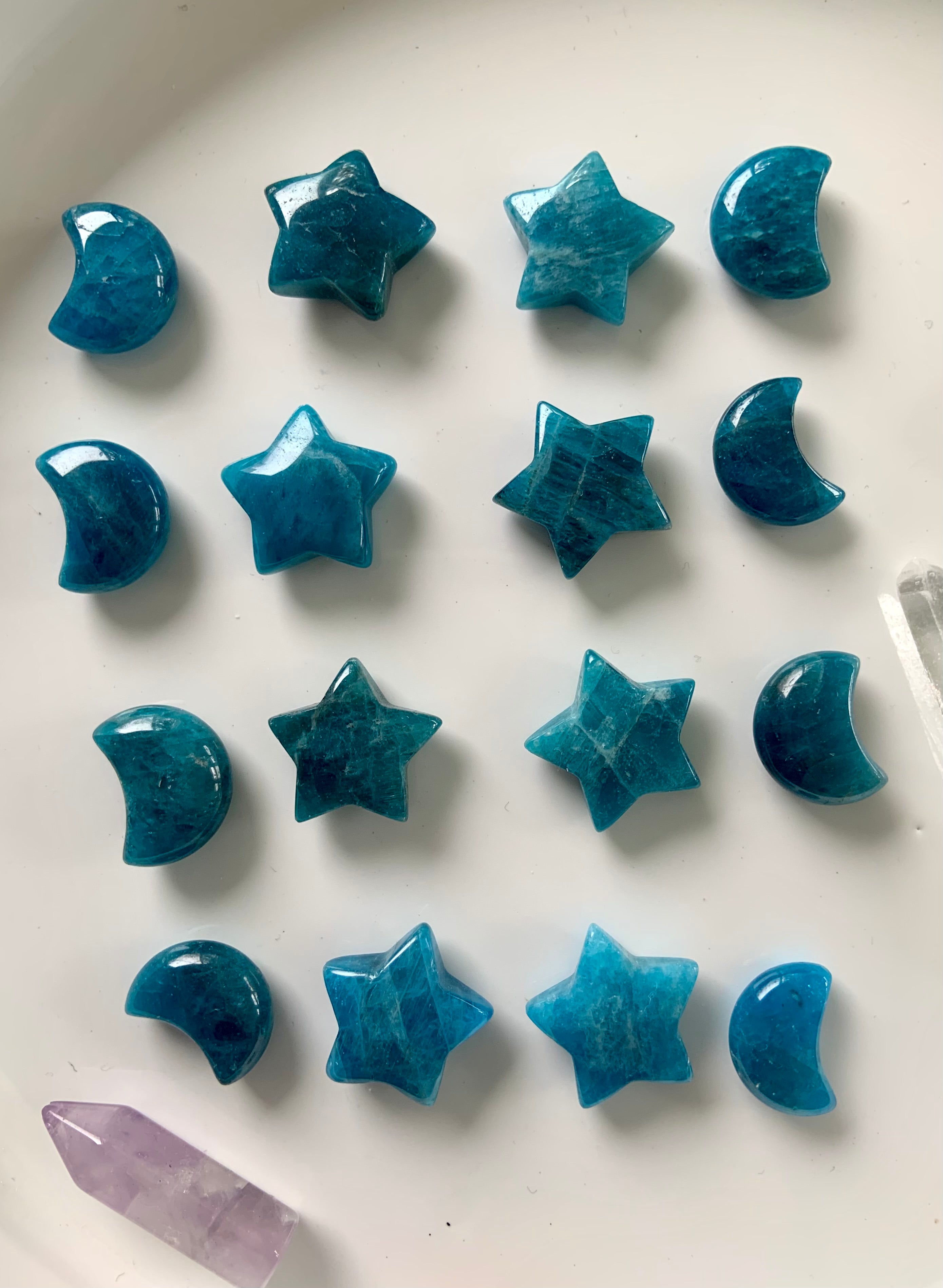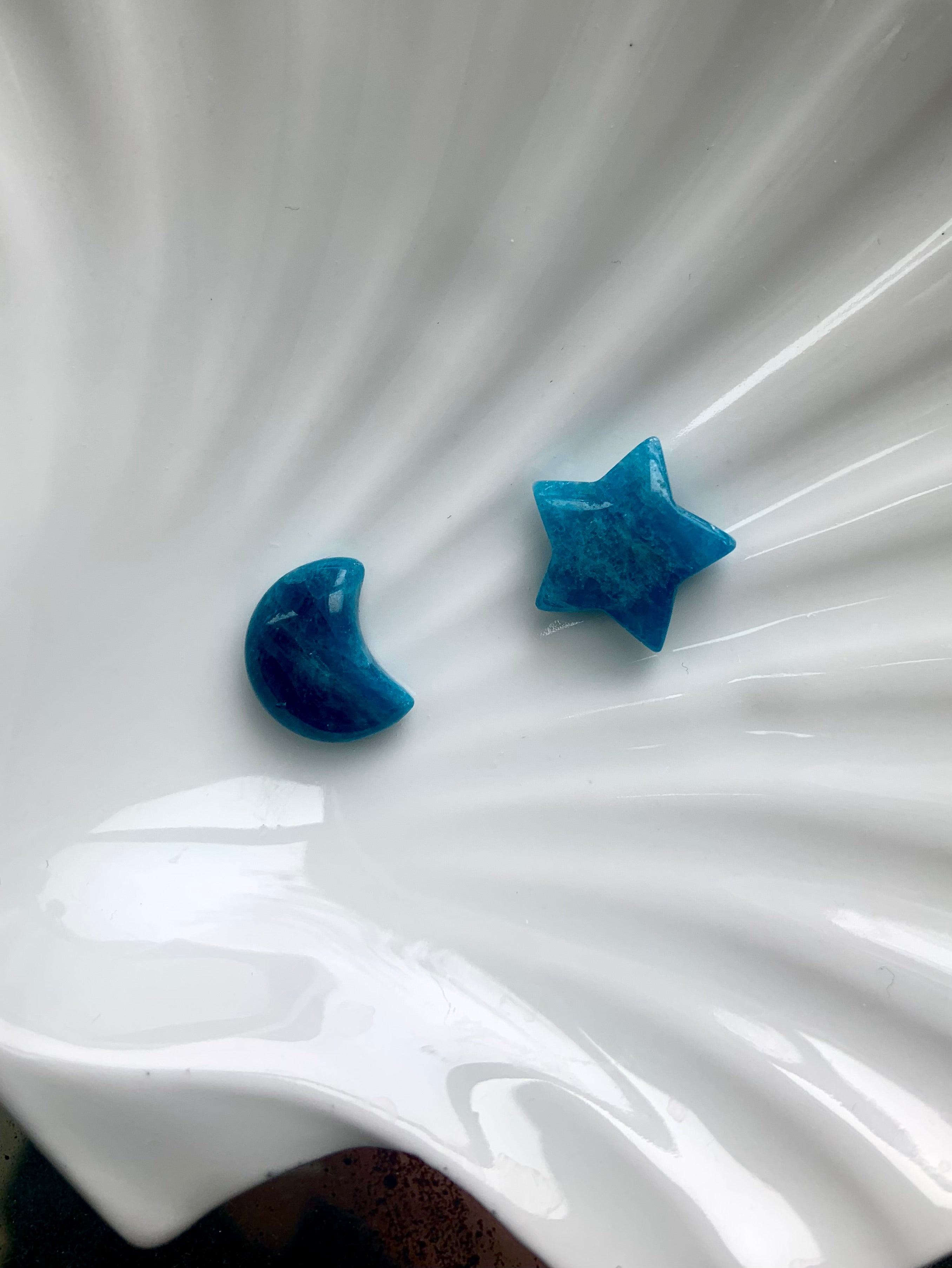Our Blue Apatite collection features best-selling mini moons, stars, and hearts—alongside beaded bracelets, necklaces, and sacred treasures like our Mermaid Crystal Confetti. You'll also find a rotating selection of one-of-a-kind palmstones, polished freeforms, spheres, and towers, perfect for meditation, altar work, or energetic alignment.