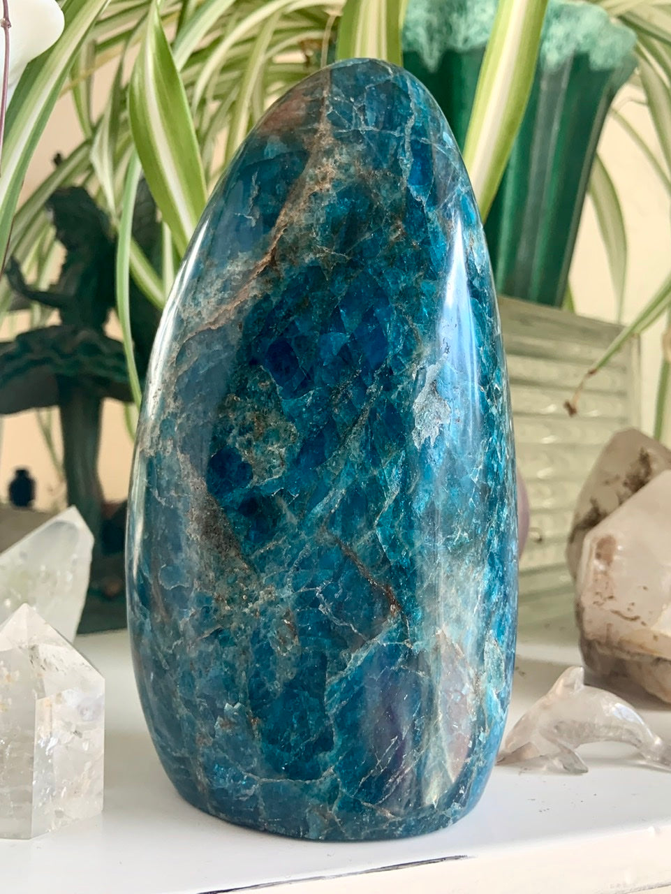 Let these radiant blue crystals reconnect you with clarity, truth, and your highest inner knowing. Hand-selected for their luminous color, high vibration, and magical shimmer, each Blue Apatite piece is a talisman of insight and empowered expression.