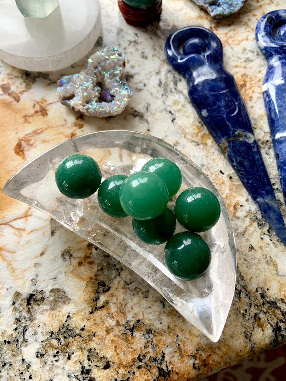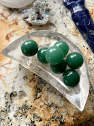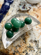 These mini Green Aventurine Spheres are high quality showing gorgeous green hues in the natural stone. Mini crystal spheres make a fun addition to your crystal collection. Use this set of 3 mini spheres to make jewelry, or in your crystal grid designs, to decorate your jewelry box, or in your crystal crafts.