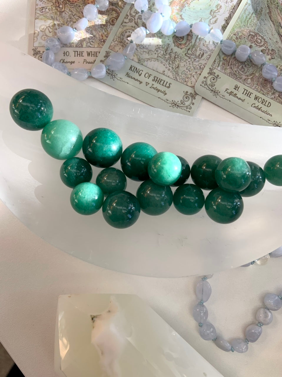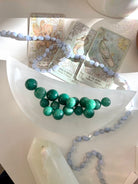 Green Aventurine offers heart-centered blessings from Gaia. It comforts, harmonizes + diffuses negative emotions. Green Aventurine resonates with the heart chakra, protecting the heart + promoting compassion.