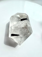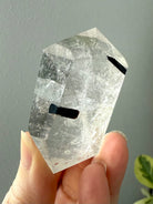Black Tourmaline in Clear Quartz is one of the most powerful conductors of energy. These stones are excellent for absorbing + transmuting any negative energy in your body or environment.