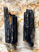 These are beautiful, imperfect raw stones. Some have quartz, mica, iron and/or calcite inclusions. Due to the raw nature + columnar growth pattern + mineral inclusions, they are delicate, brittle + flaky.