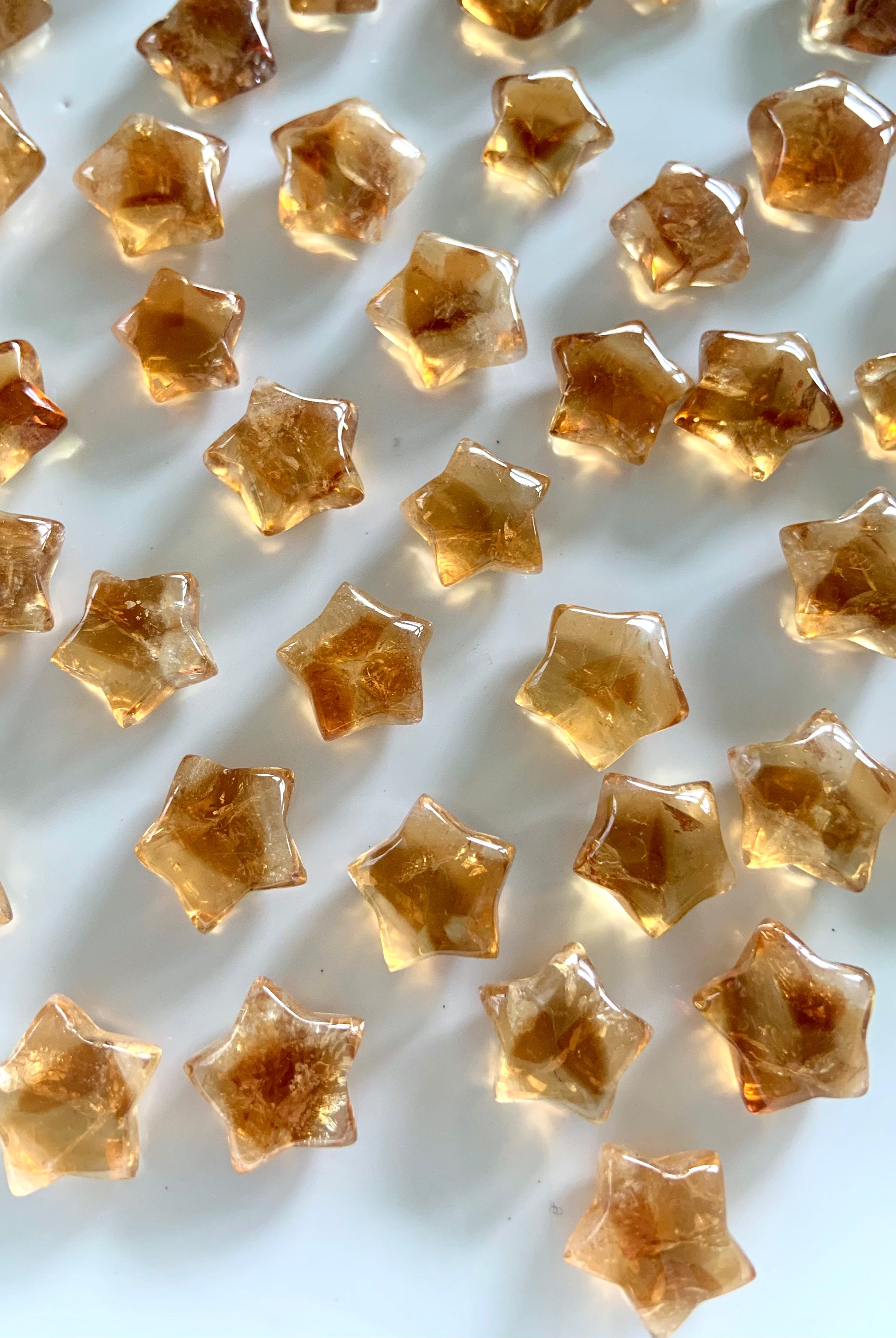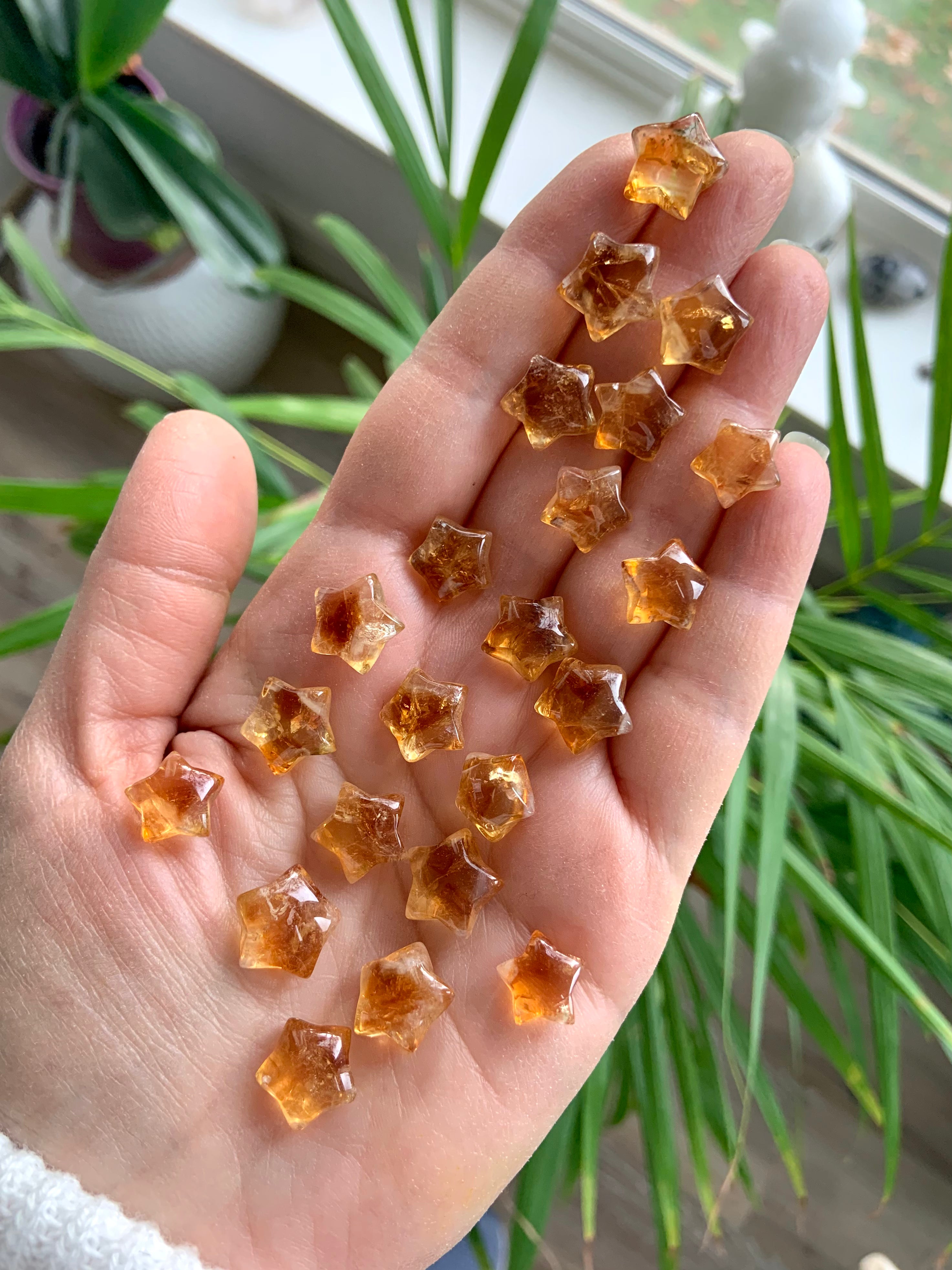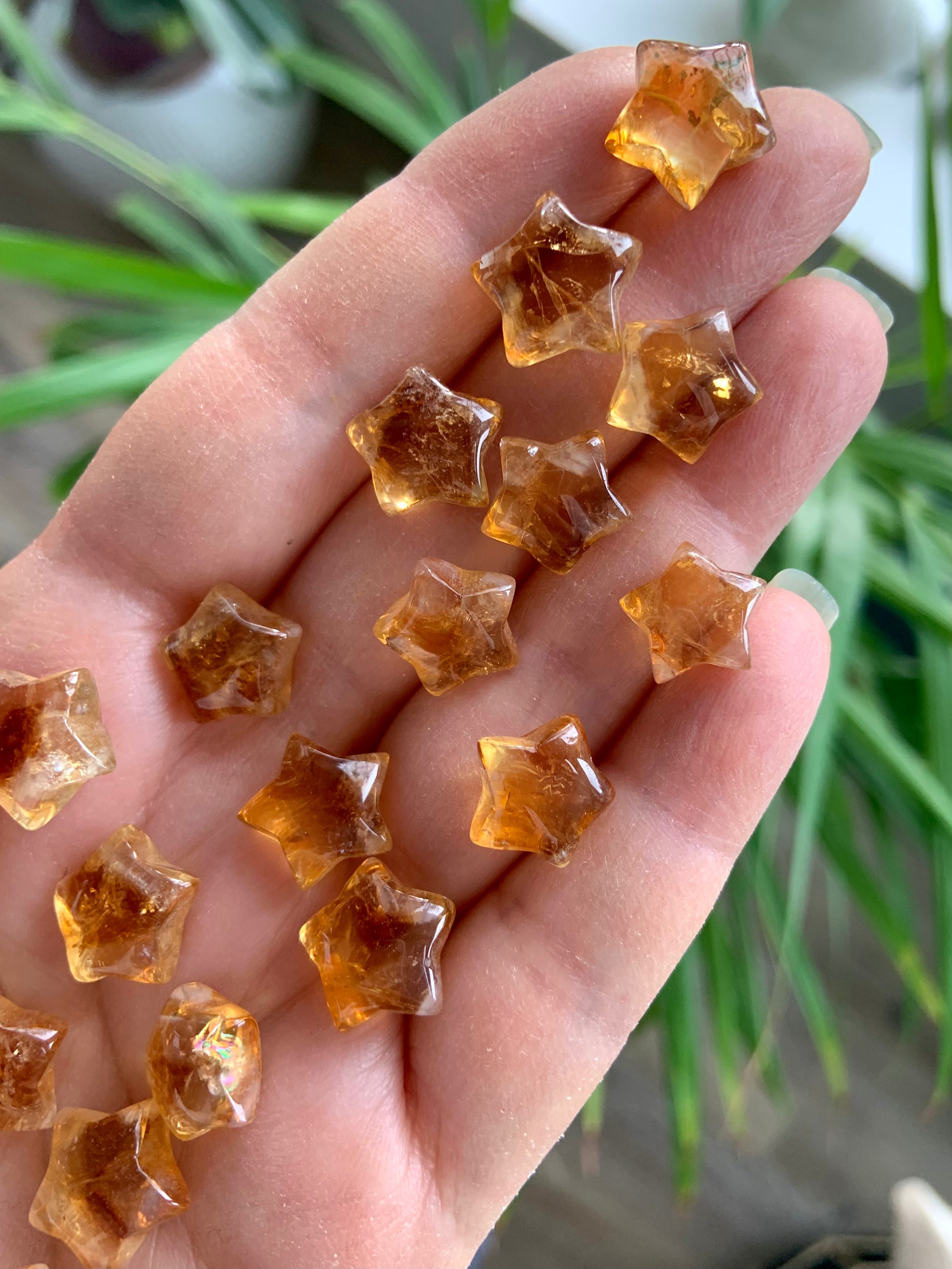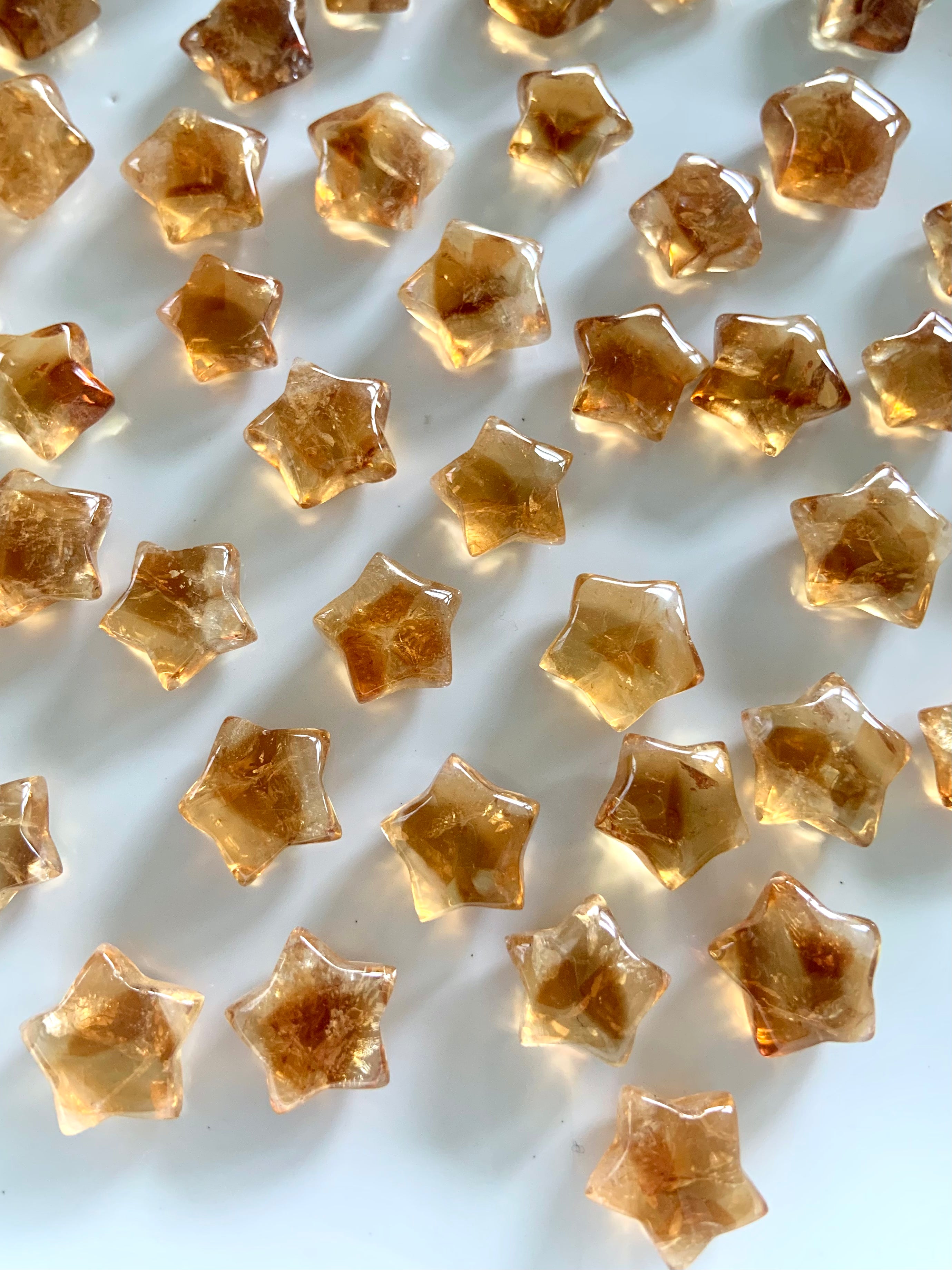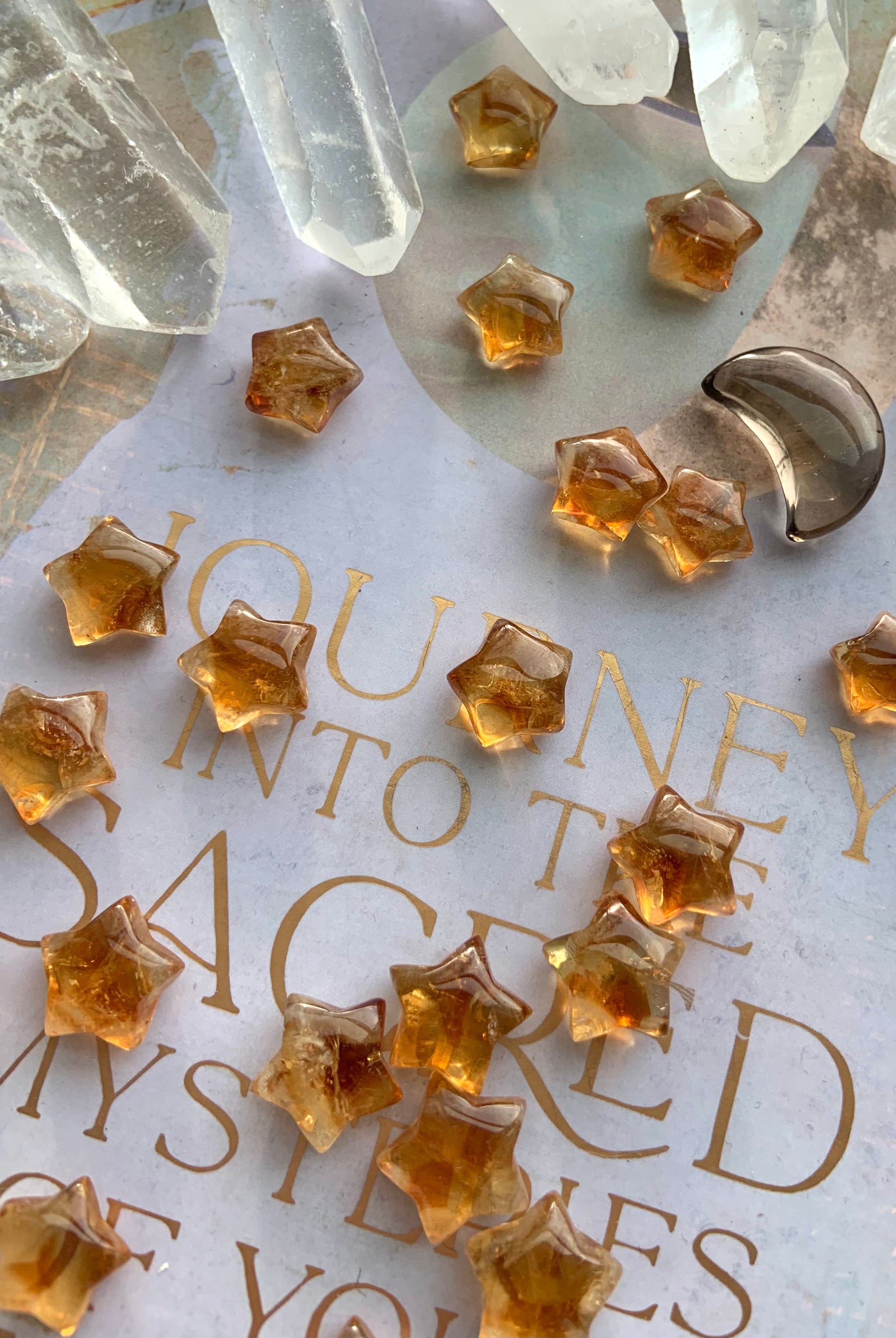 Our Citrine collection features best-selling mini crystal hearts, moons, and stars—plus bracelets, a Citrine-infused Golden Ray Aura Mist, and chakra healing crystal sets. You’ll also find a rotating selection of one-of-a-kind jewelry, raw points, spheres, towers, and sacred carvings that glow with golden warmth.