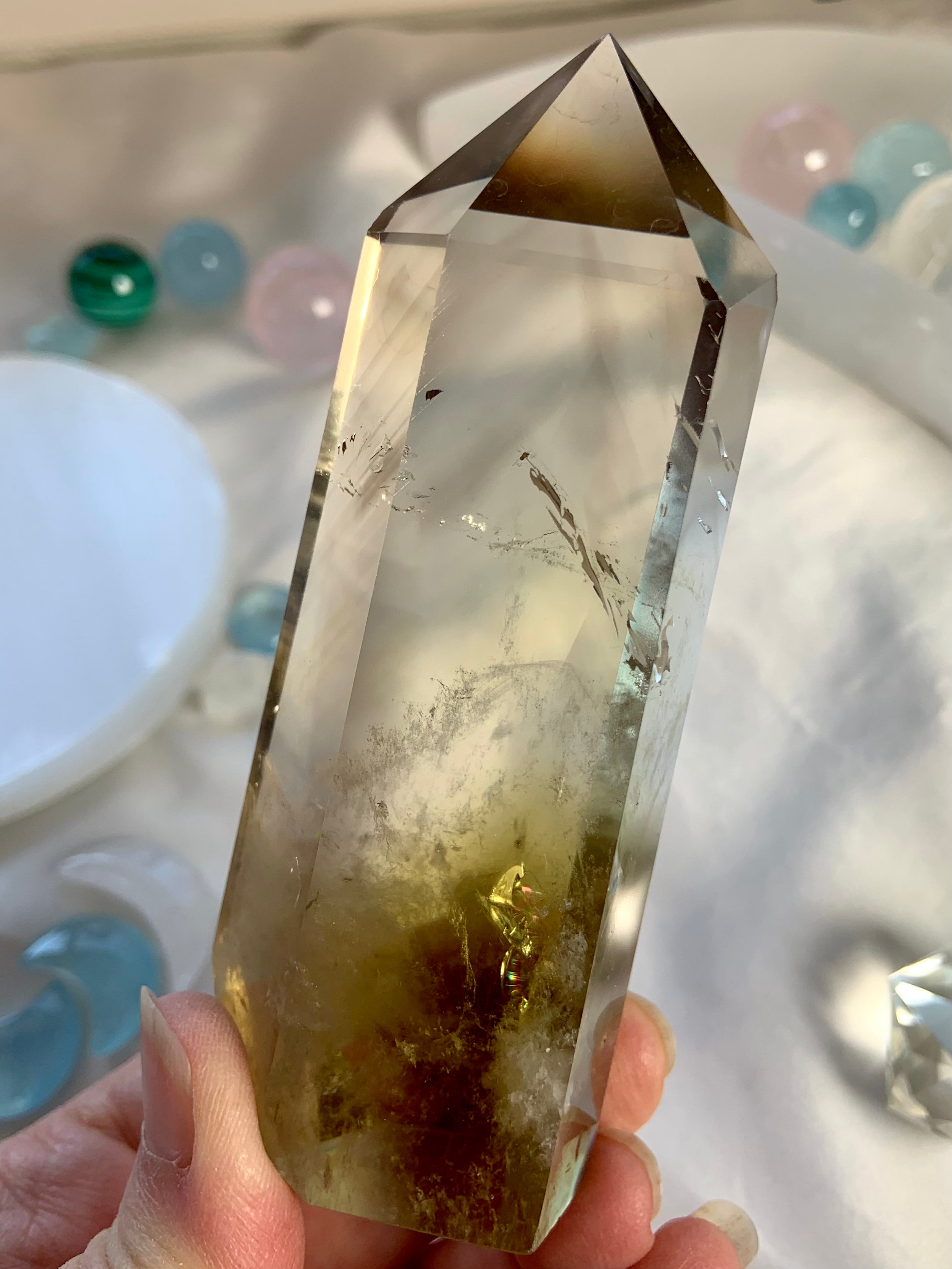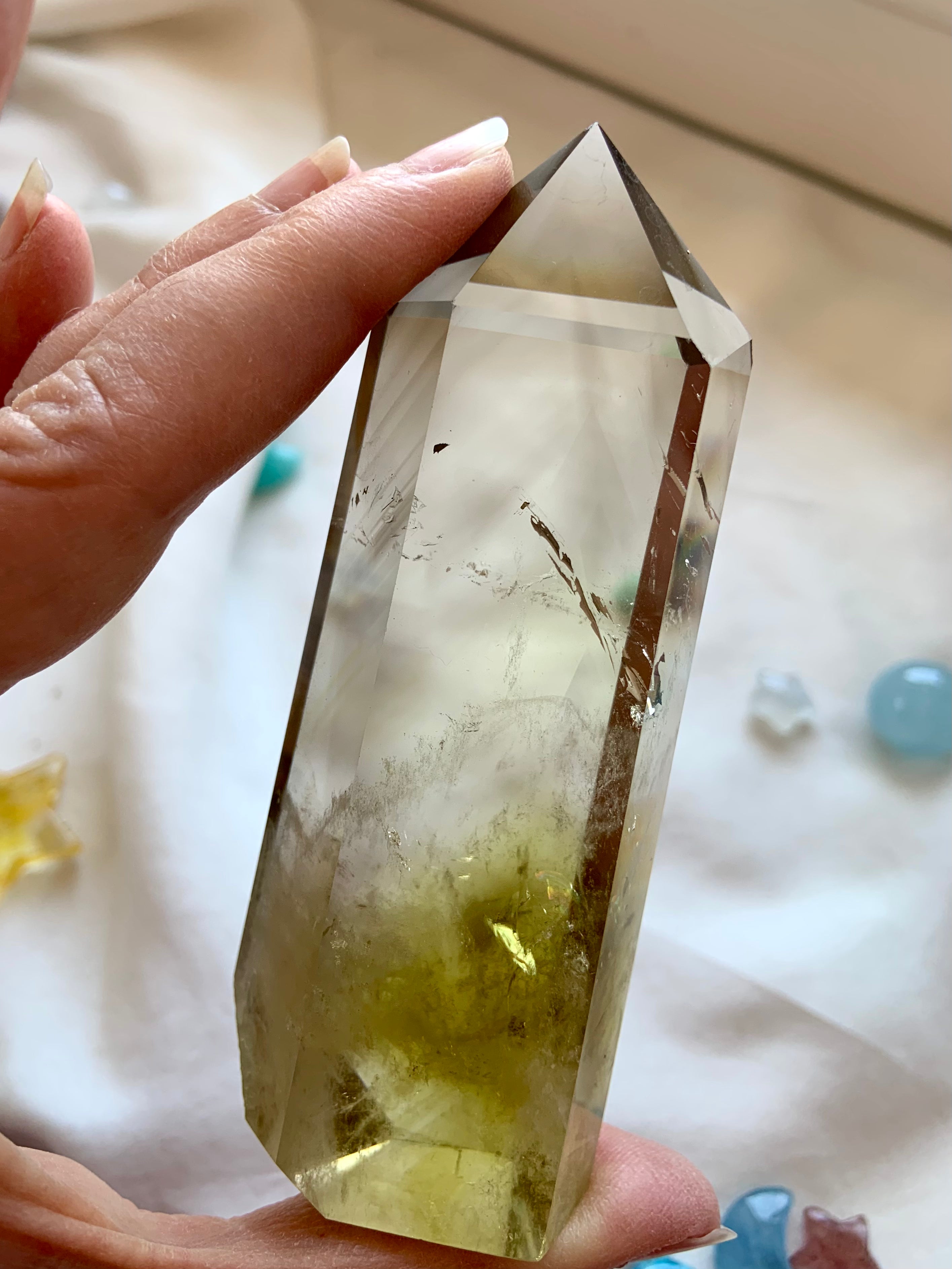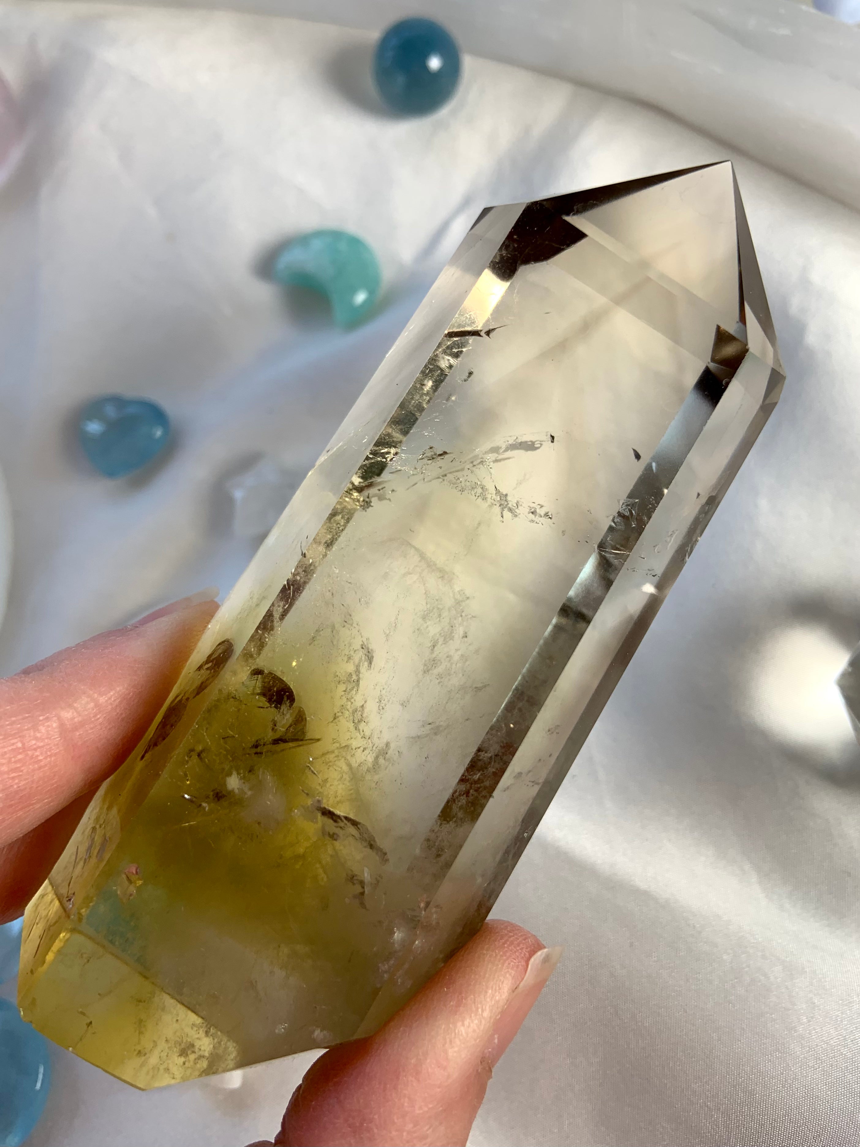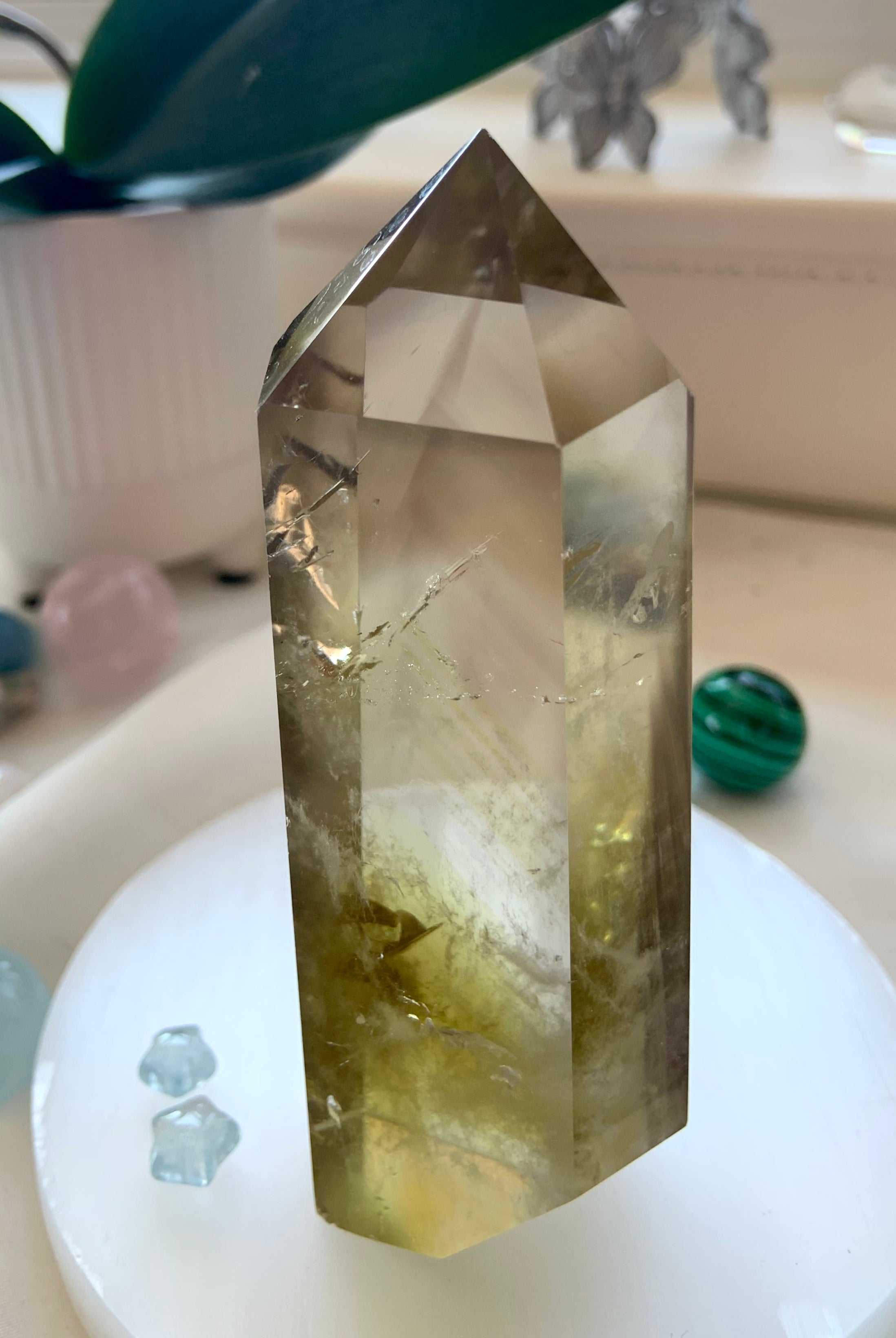 Our Citrine collection features best-selling mini crystal hearts, moons, and stars—plus bracelets, a Citrine-infused Golden Ray Aura Mist, and chakra healing crystal sets. You’ll also find a rotating selection of one-of-a-kind jewelry, raw points, spheres, towers, and sacred carvings that glow with golden warmth.