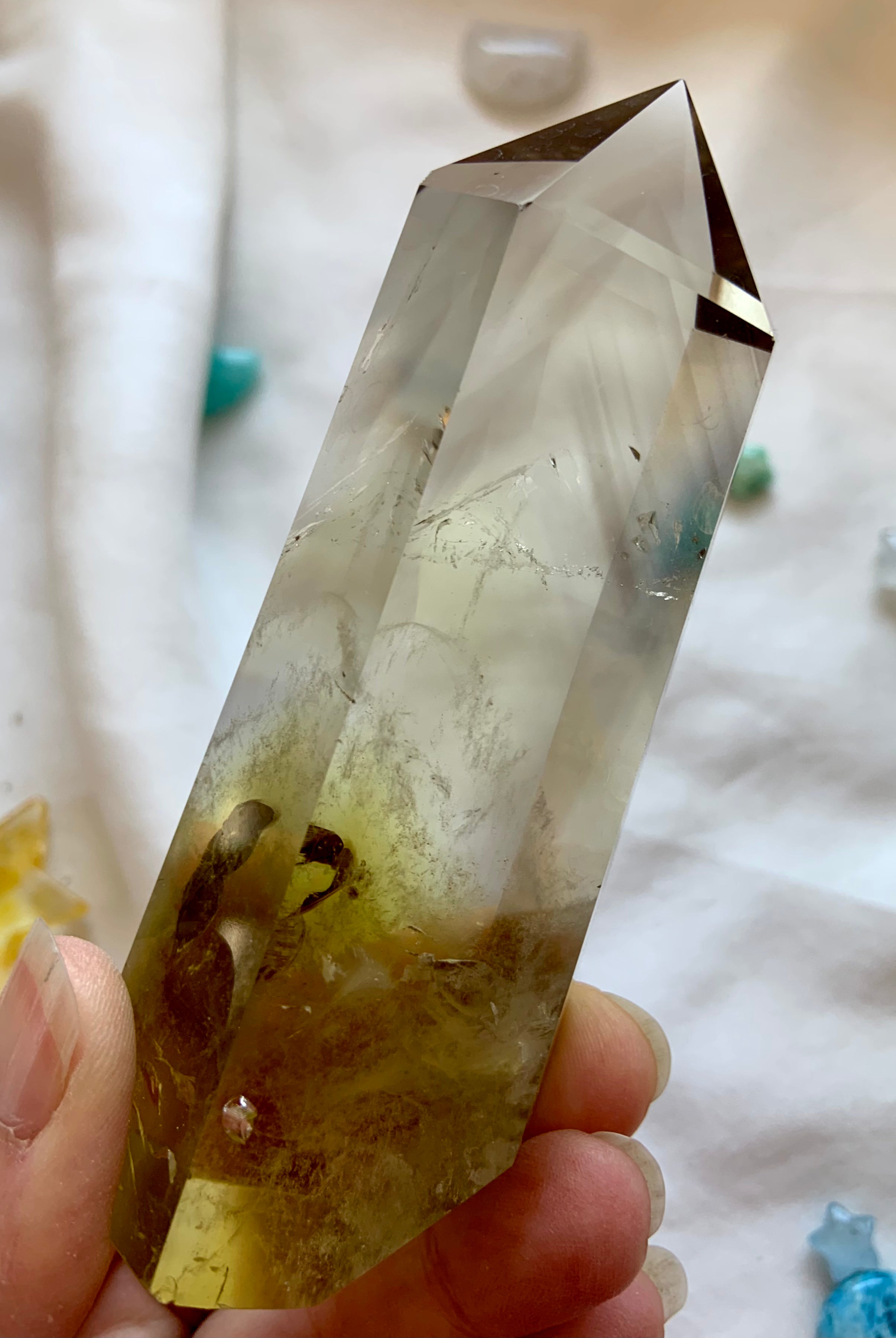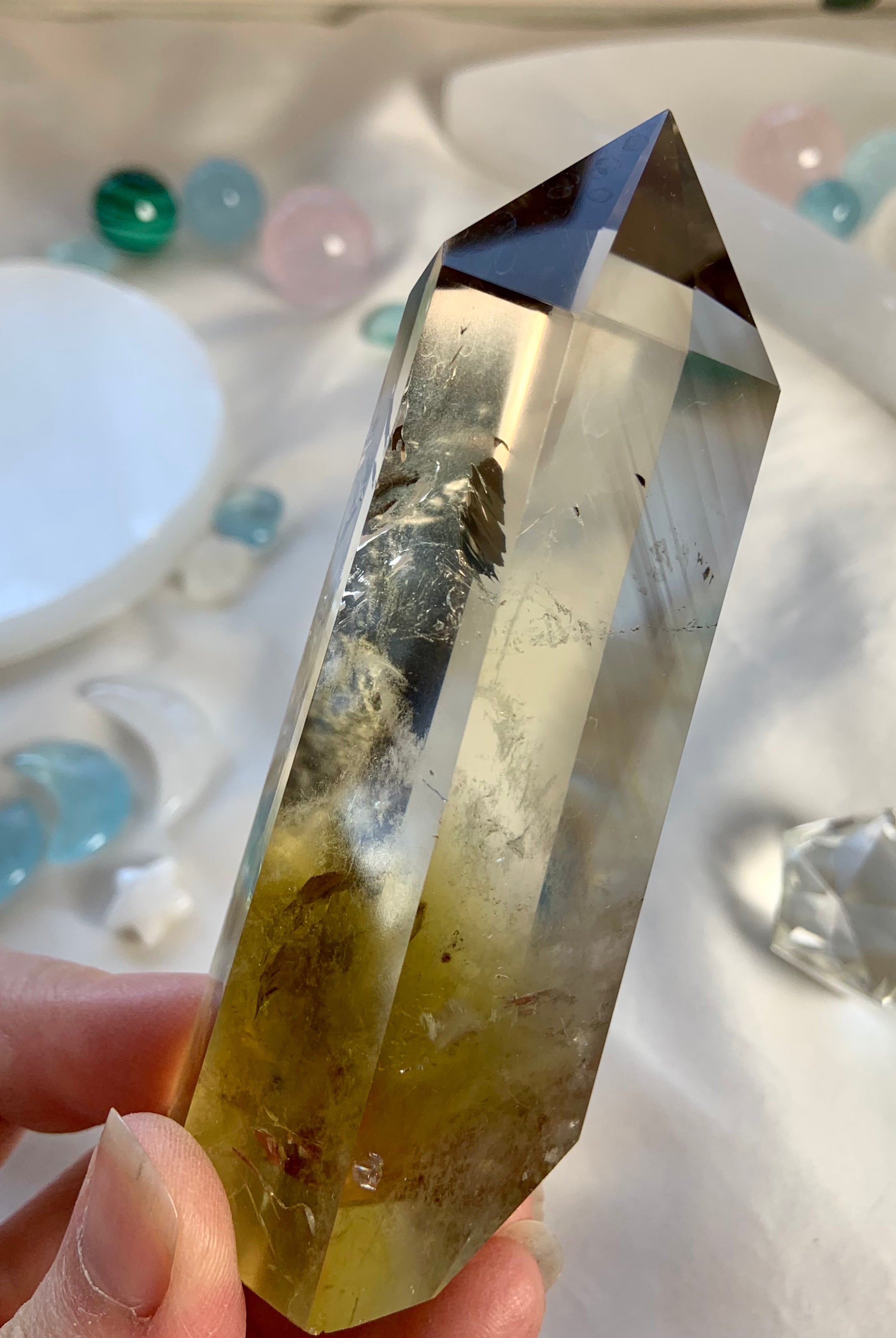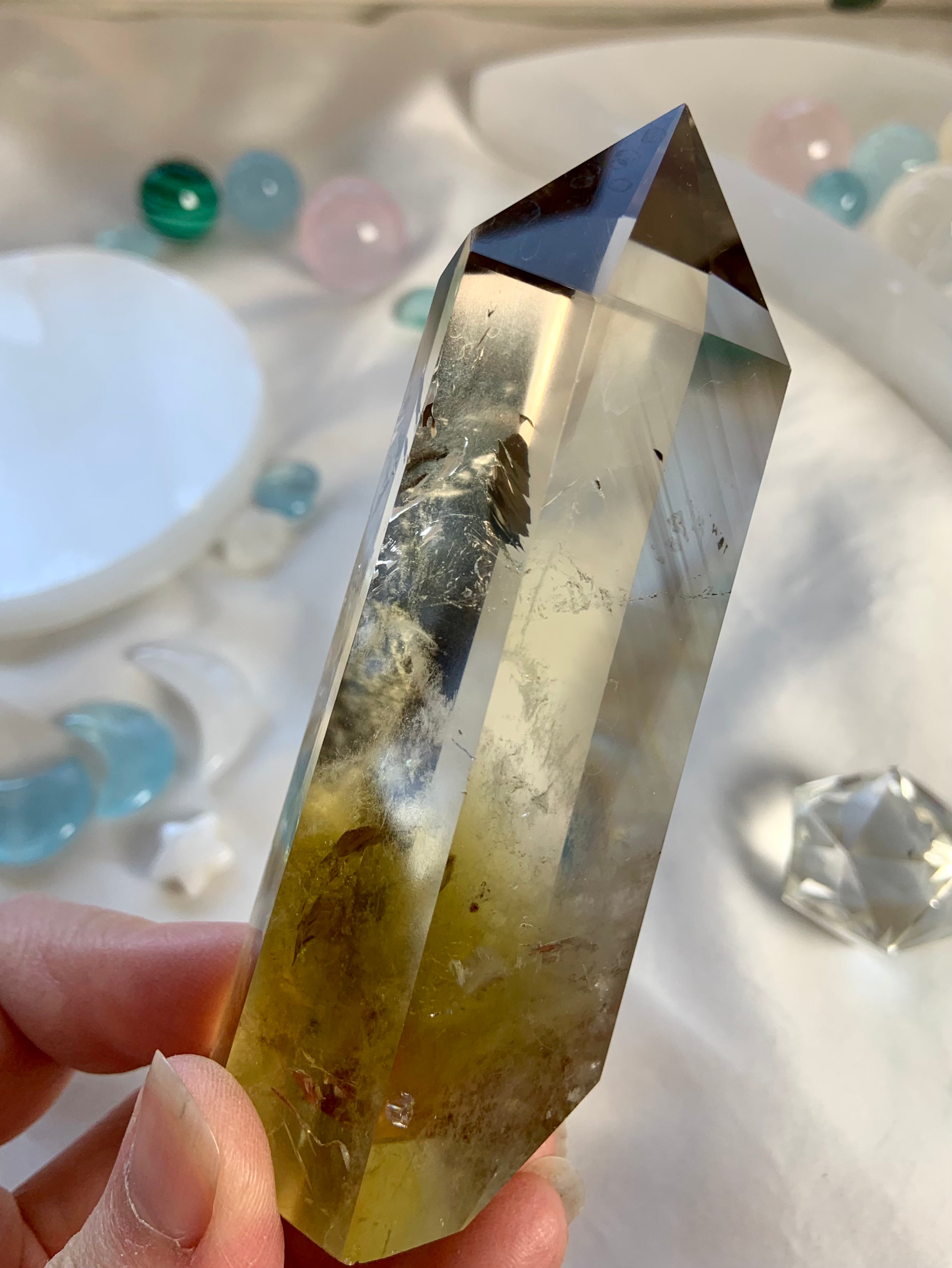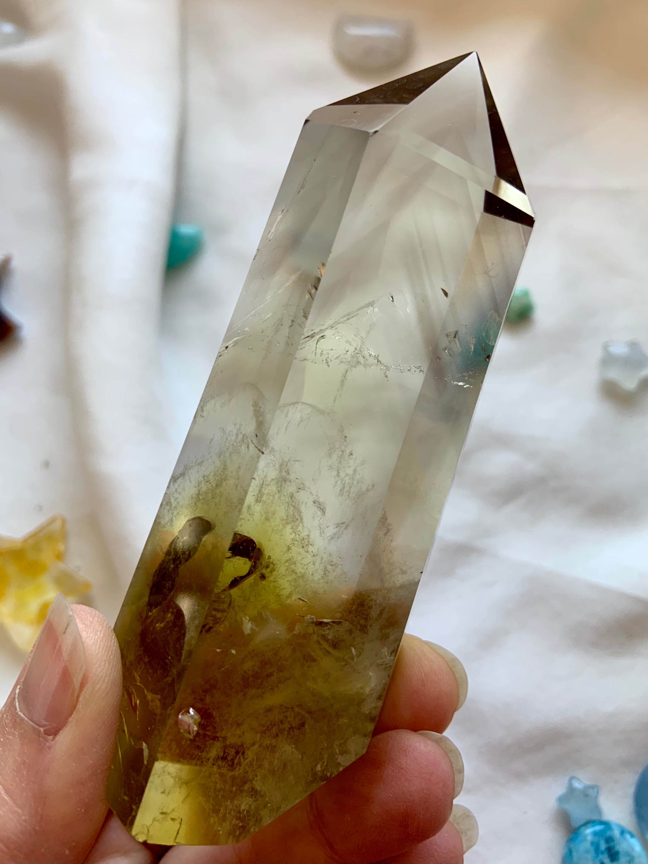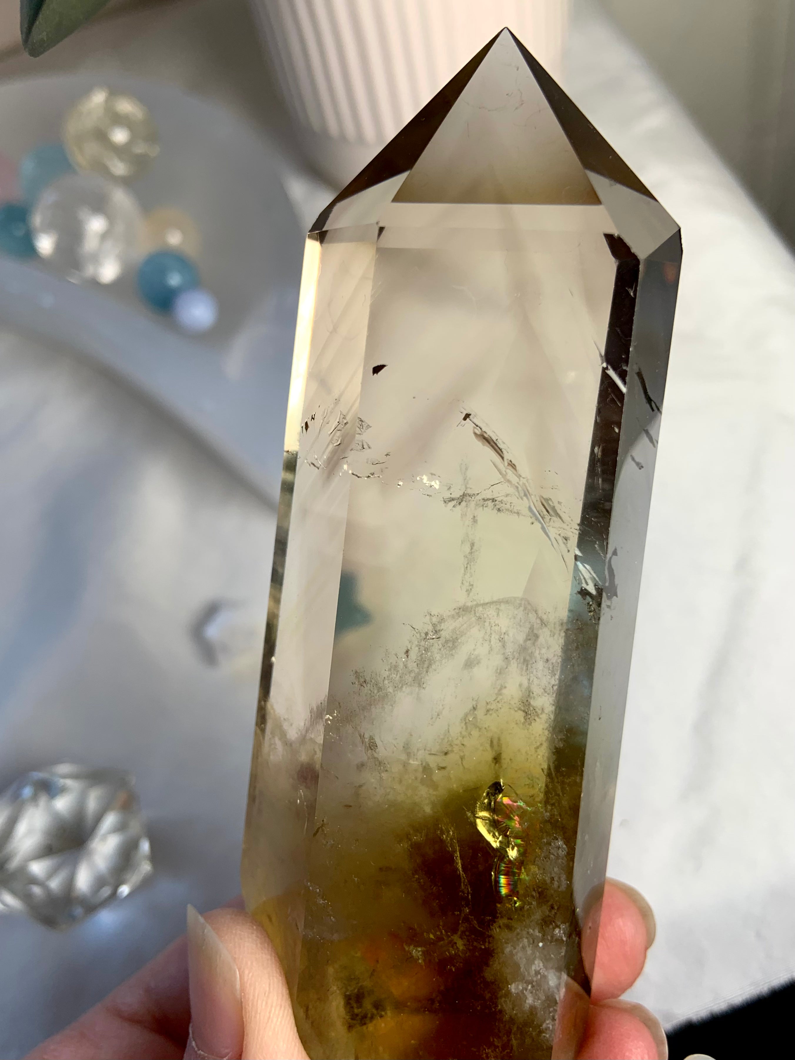 Our Citrine collection features best-selling mini crystal hearts, moons, and stars—plus bracelets, a Citrine-infused Golden Ray Aura Mist, and chakra healing crystal sets. You’ll also find a rotating selection of one-of-a-kind jewelry, raw points, spheres, towers, and sacred carvings that glow with golden warmth.