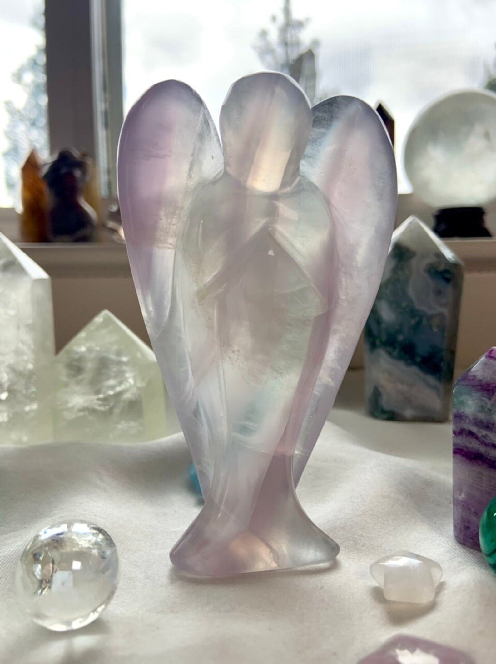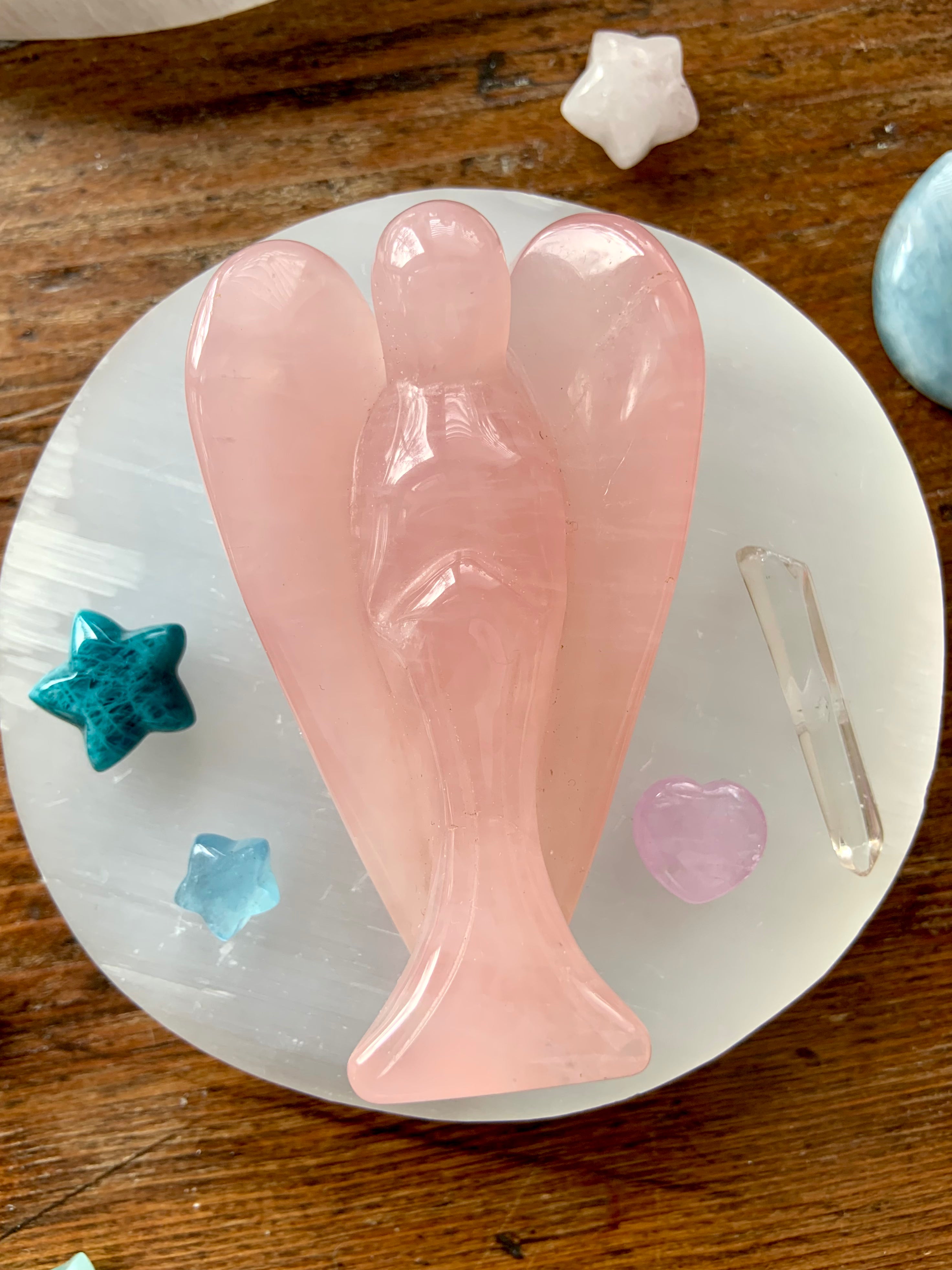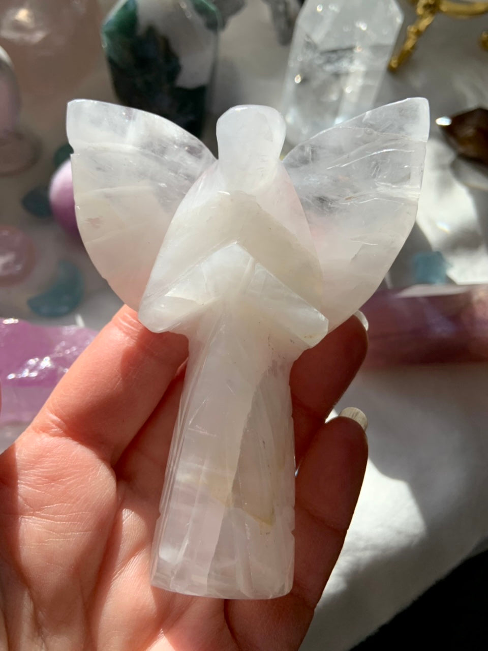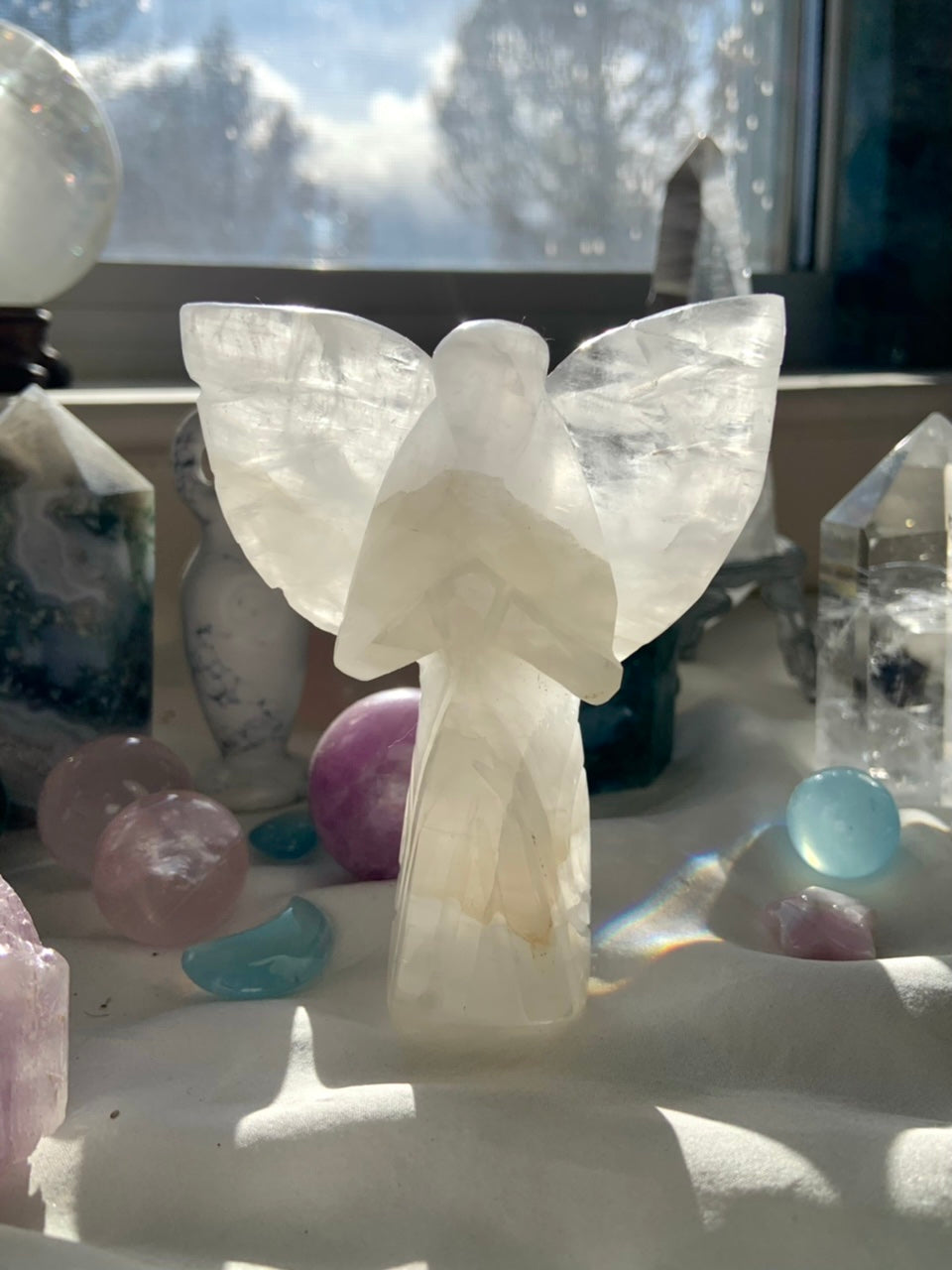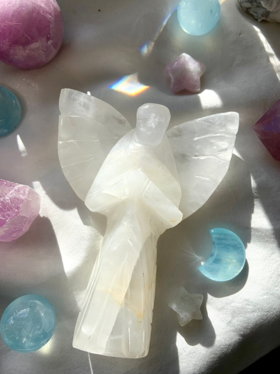 This curated collection includes pocket-size companions, meditation stones, altar guardians, and one-of-a-kind statement pieces. Whether gifted as a spiritual keepsake or used in ritual and remembrance, crystal angels offer comfort, presence, and a connection to the celestial realms.