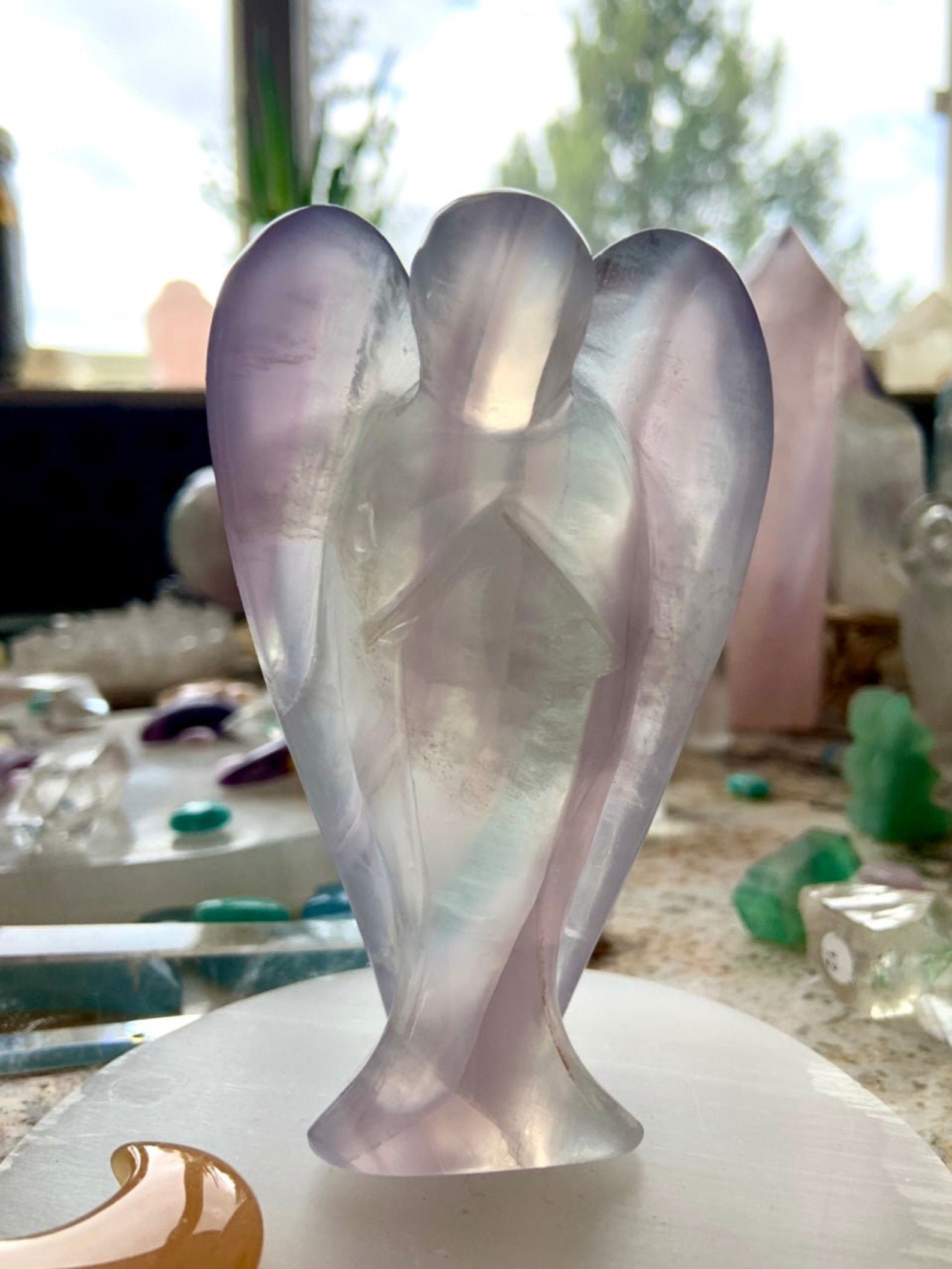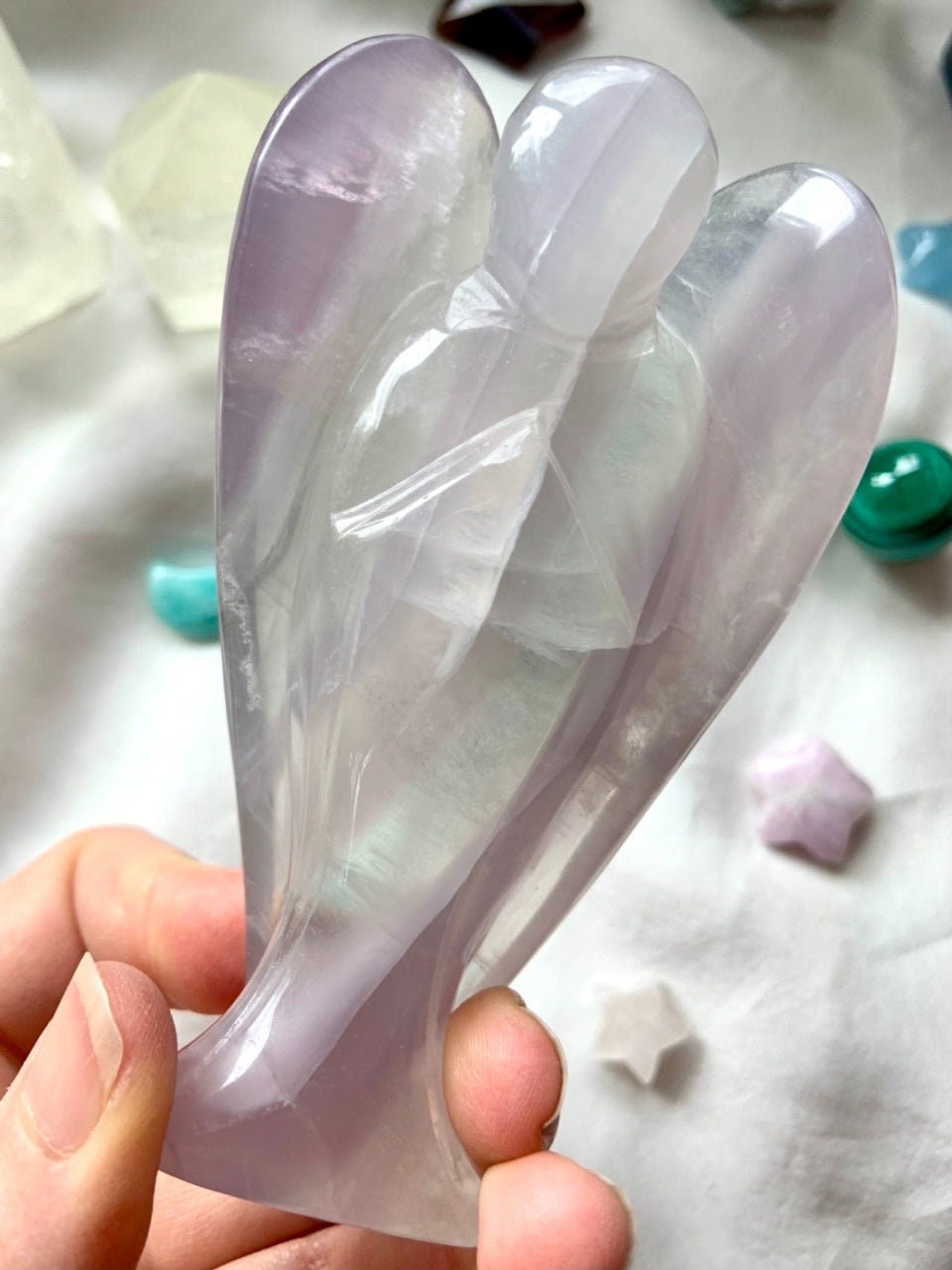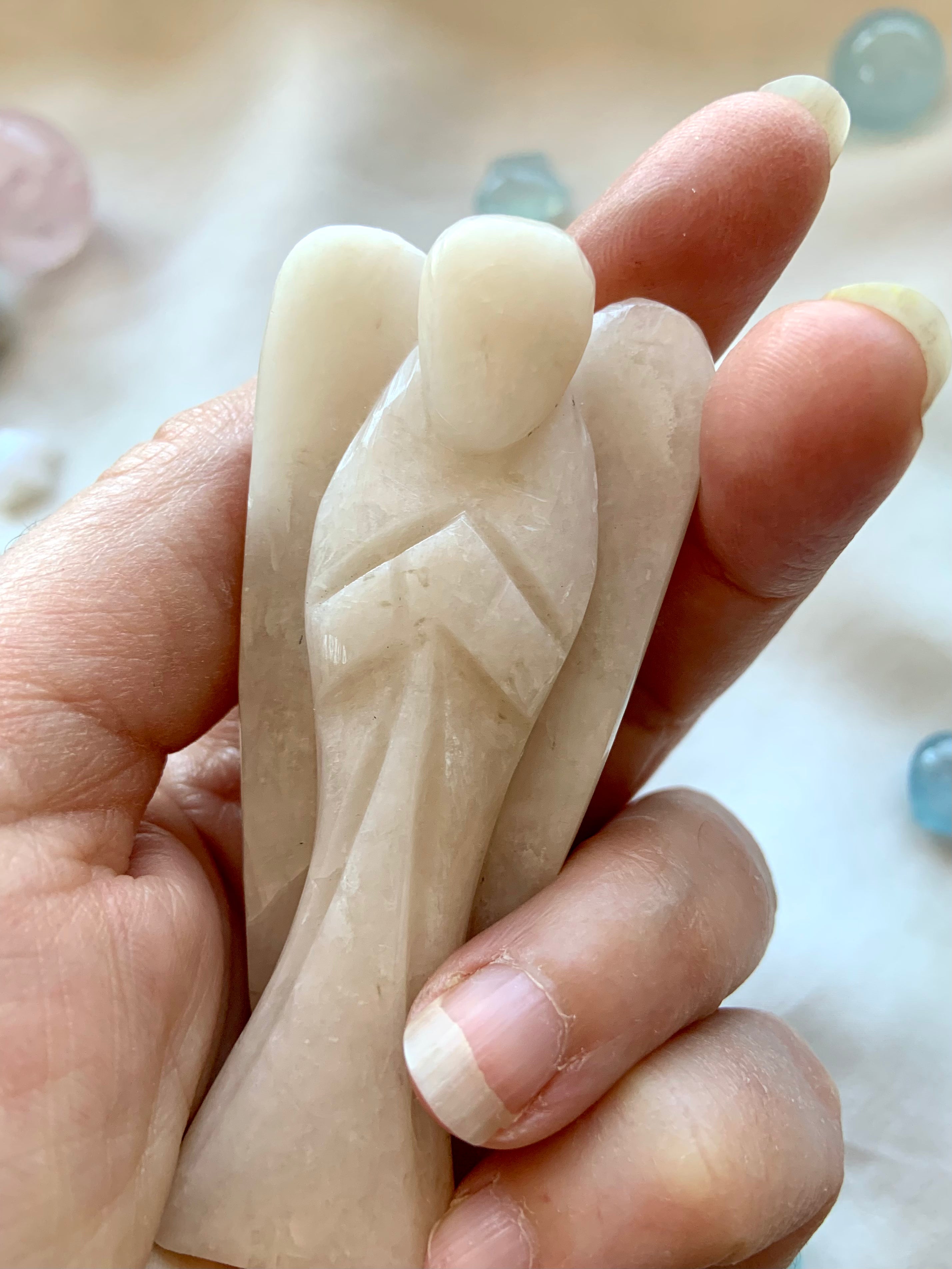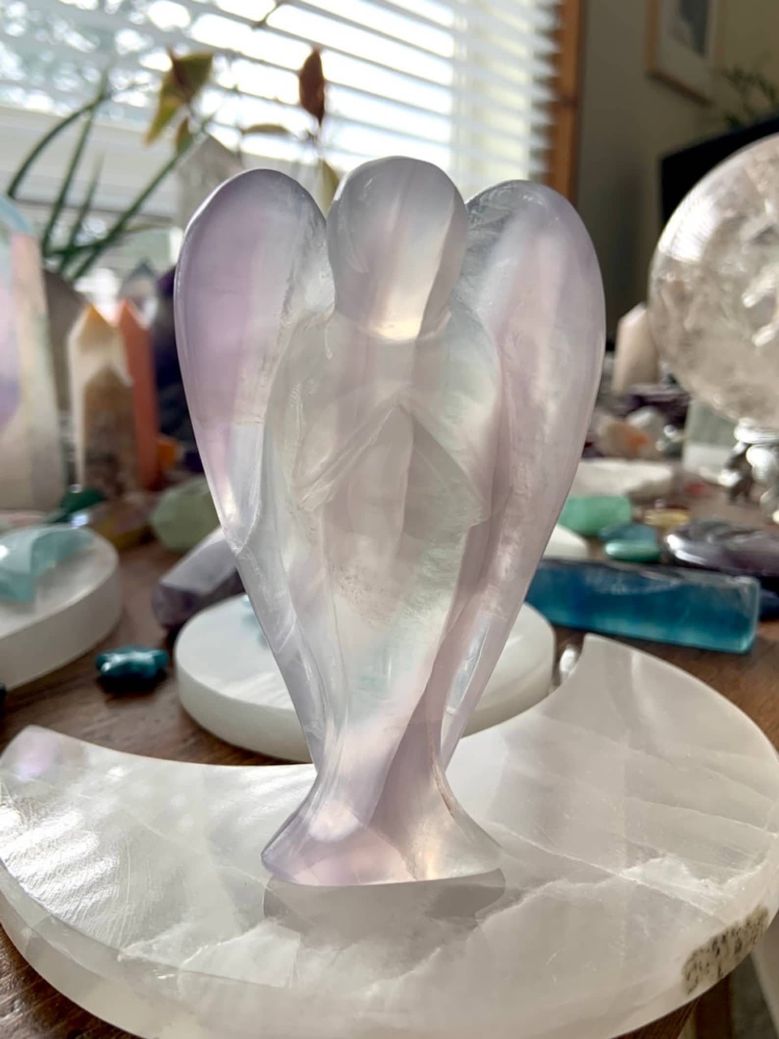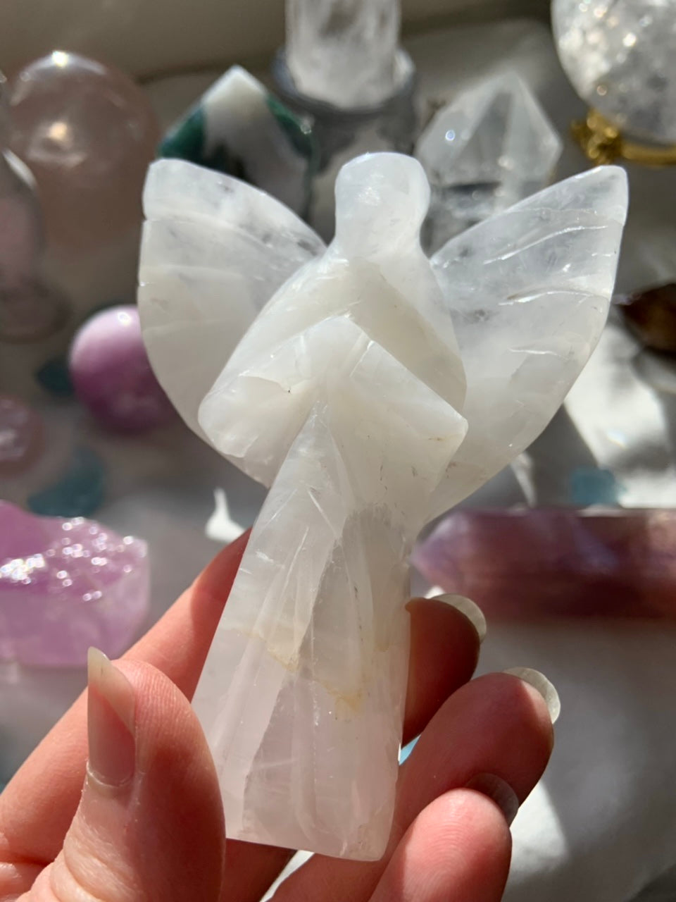 This curated collection includes pocket-size companions, meditation stones, altar guardians, and one-of-a-kind statement pieces. Whether gifted as a spiritual keepsake or used in ritual and remembrance, crystal angels offer comfort, presence, and a connection to the celestial realms.