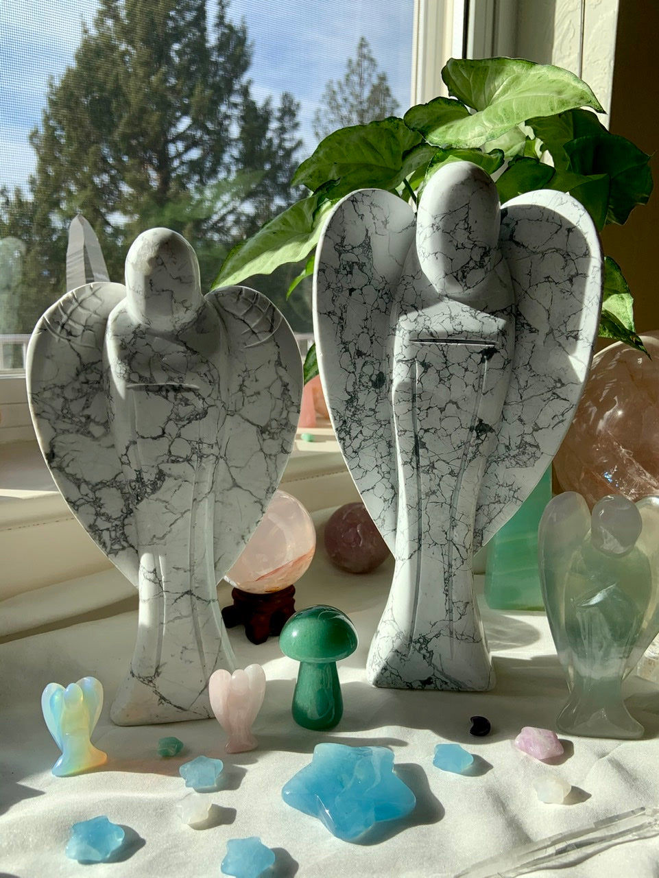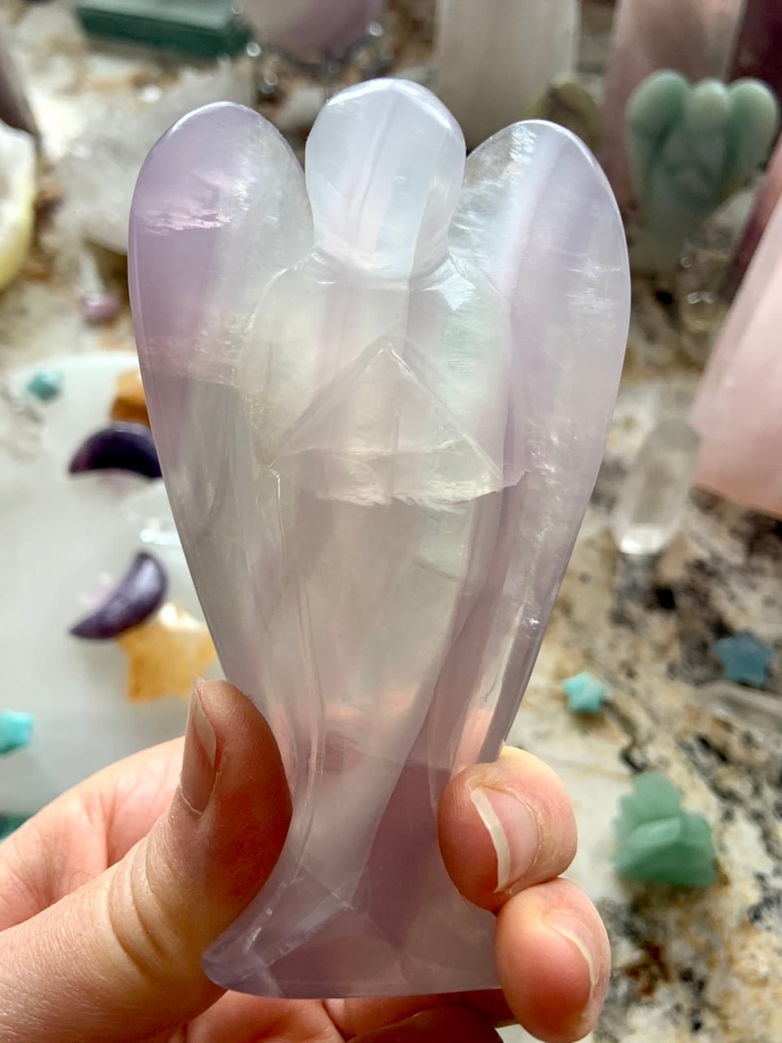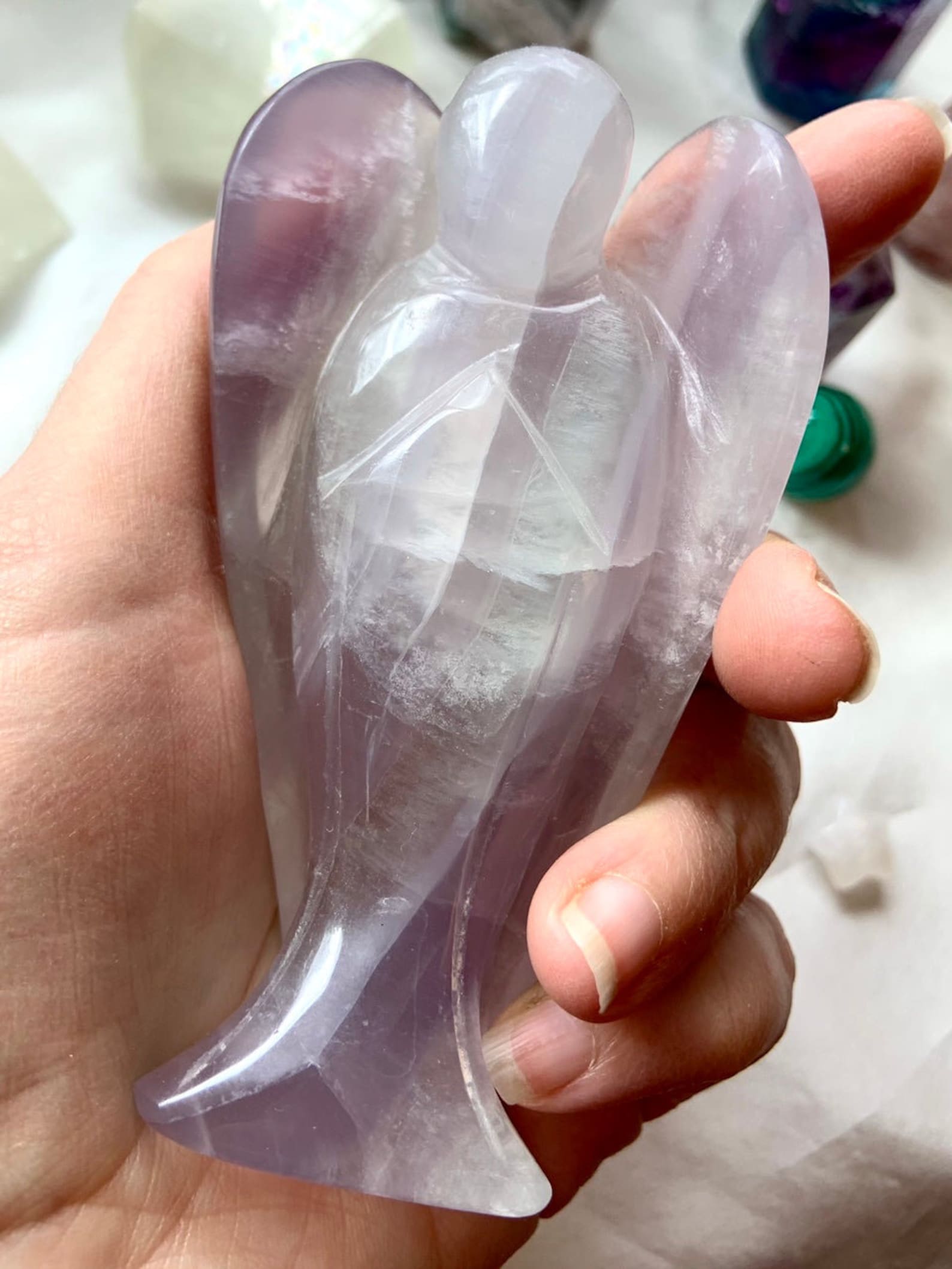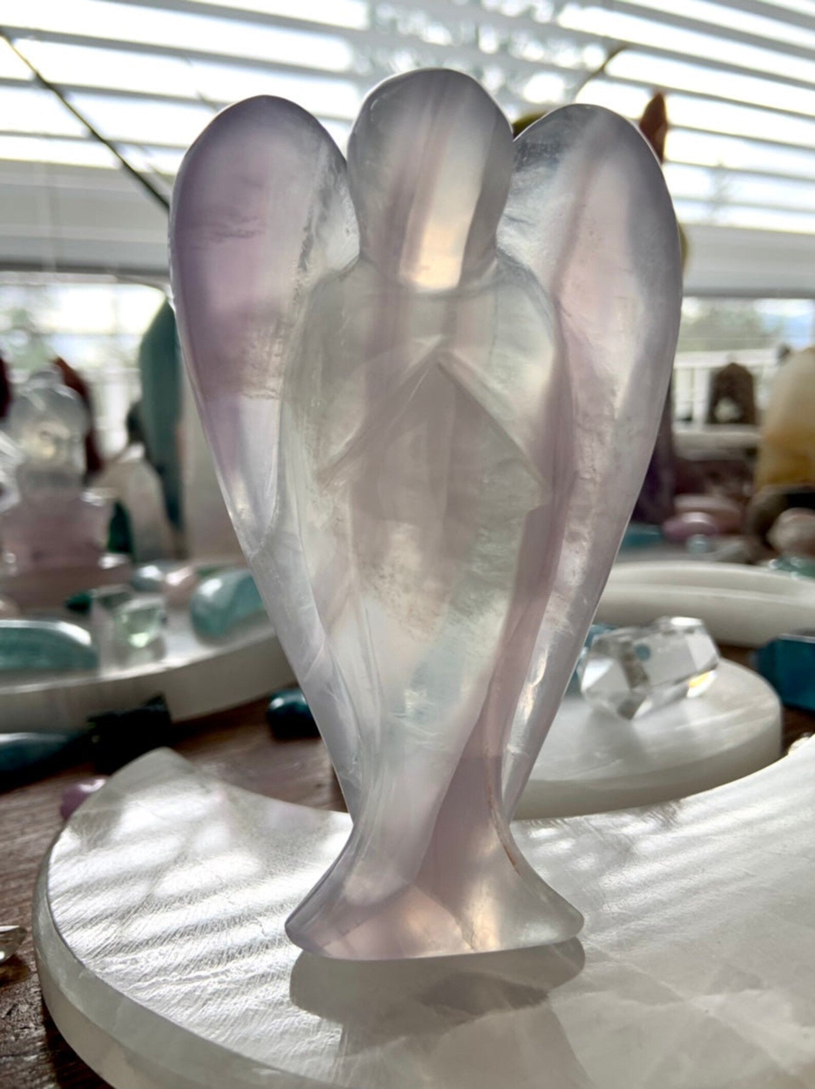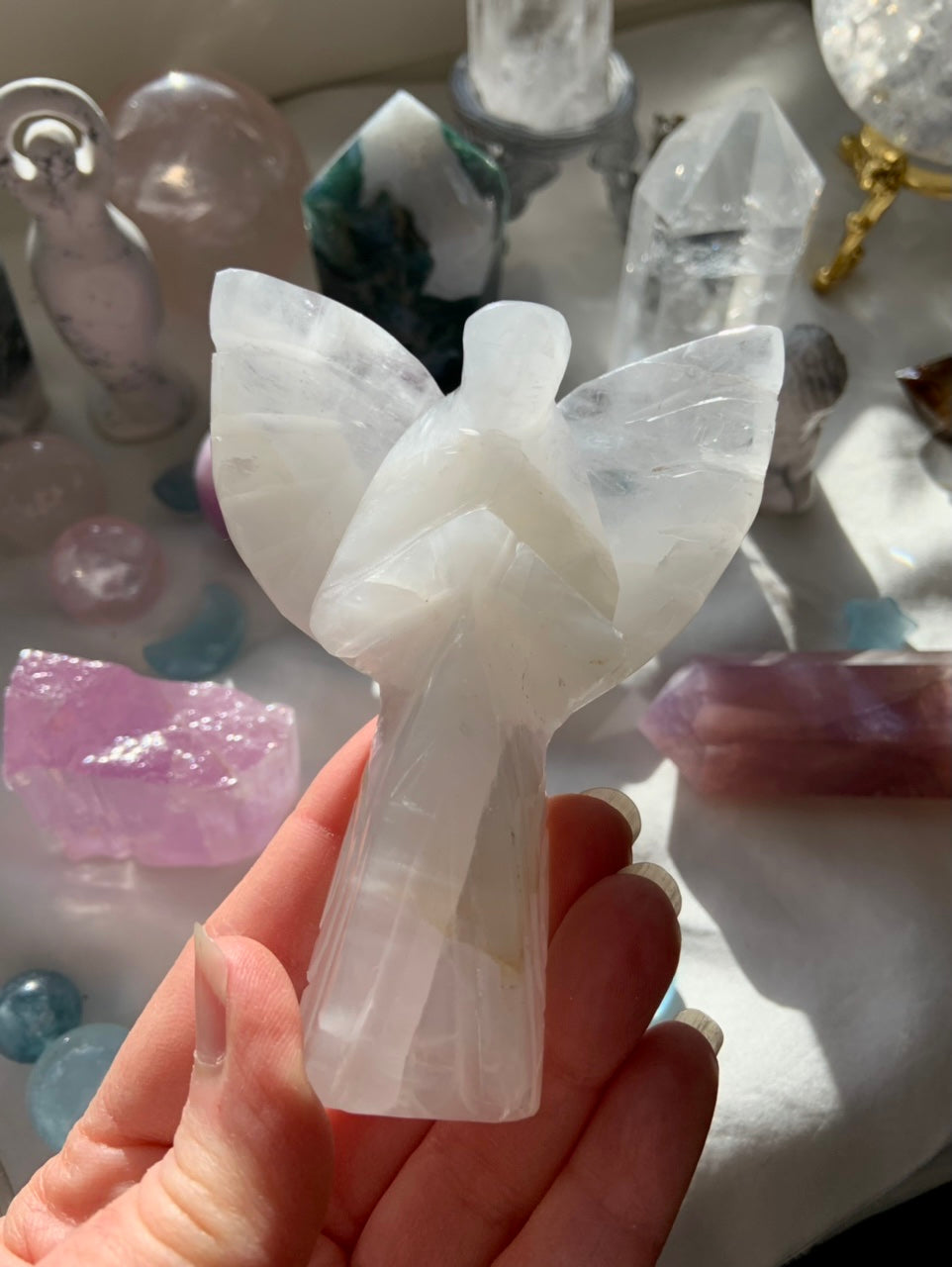 This curated collection includes pocket-size companions, meditation stones, altar guardians, and one-of-a-kind statement pieces. Whether gifted as a spiritual keepsake or used in ritual and remembrance, crystal angels offer comfort, presence, and a connection to the celestial realms.