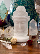 Gorgeous, divinely feminine + sparkly white, these Hanbai Jade Quan Yin Statues bring peaceful tranquility to your sacred space. Beautiful detailed carving on all sides with a matte finish that allows the natural glitter of the White Jade to shine. This crystal goddess head is simply divine.