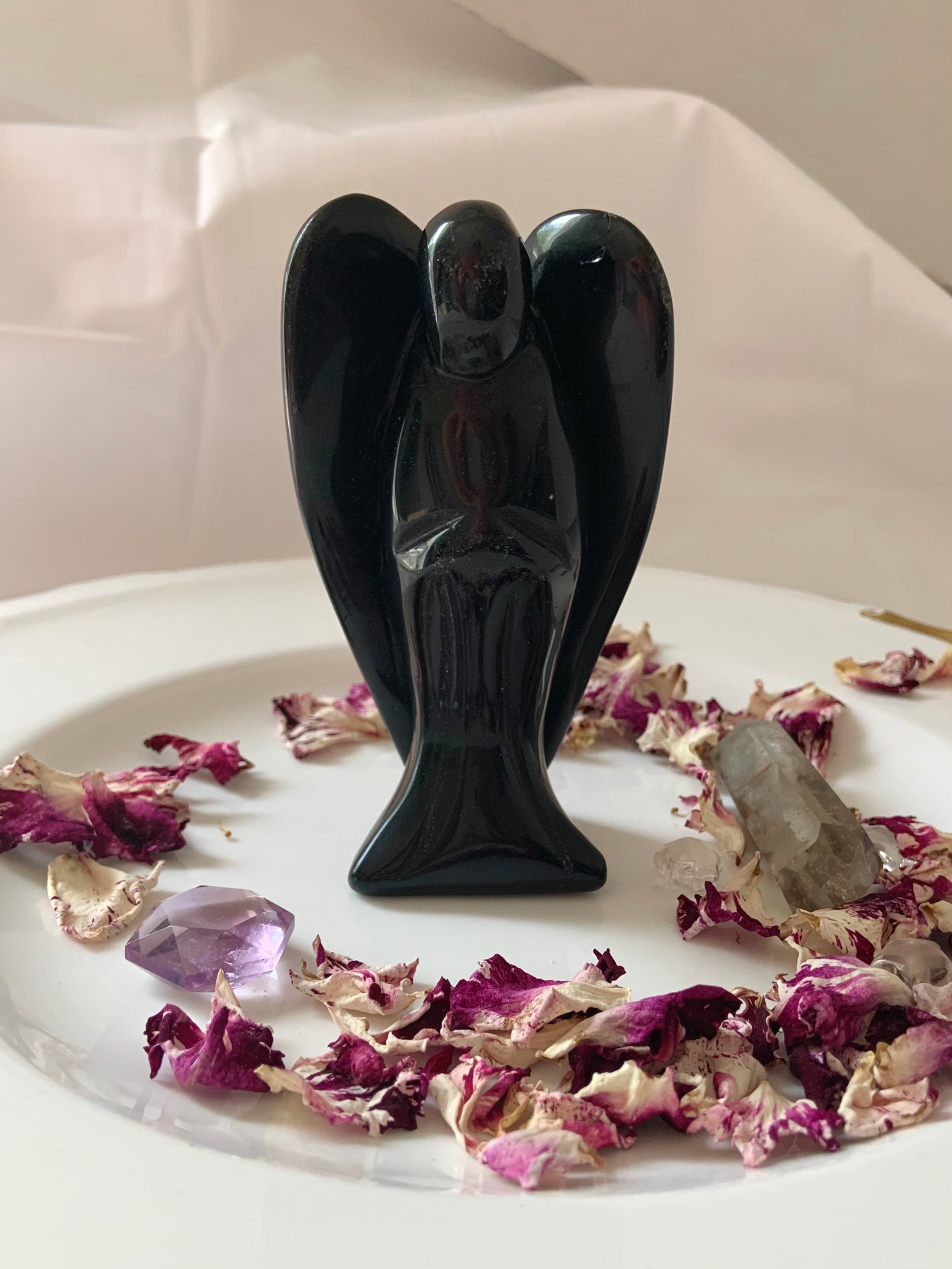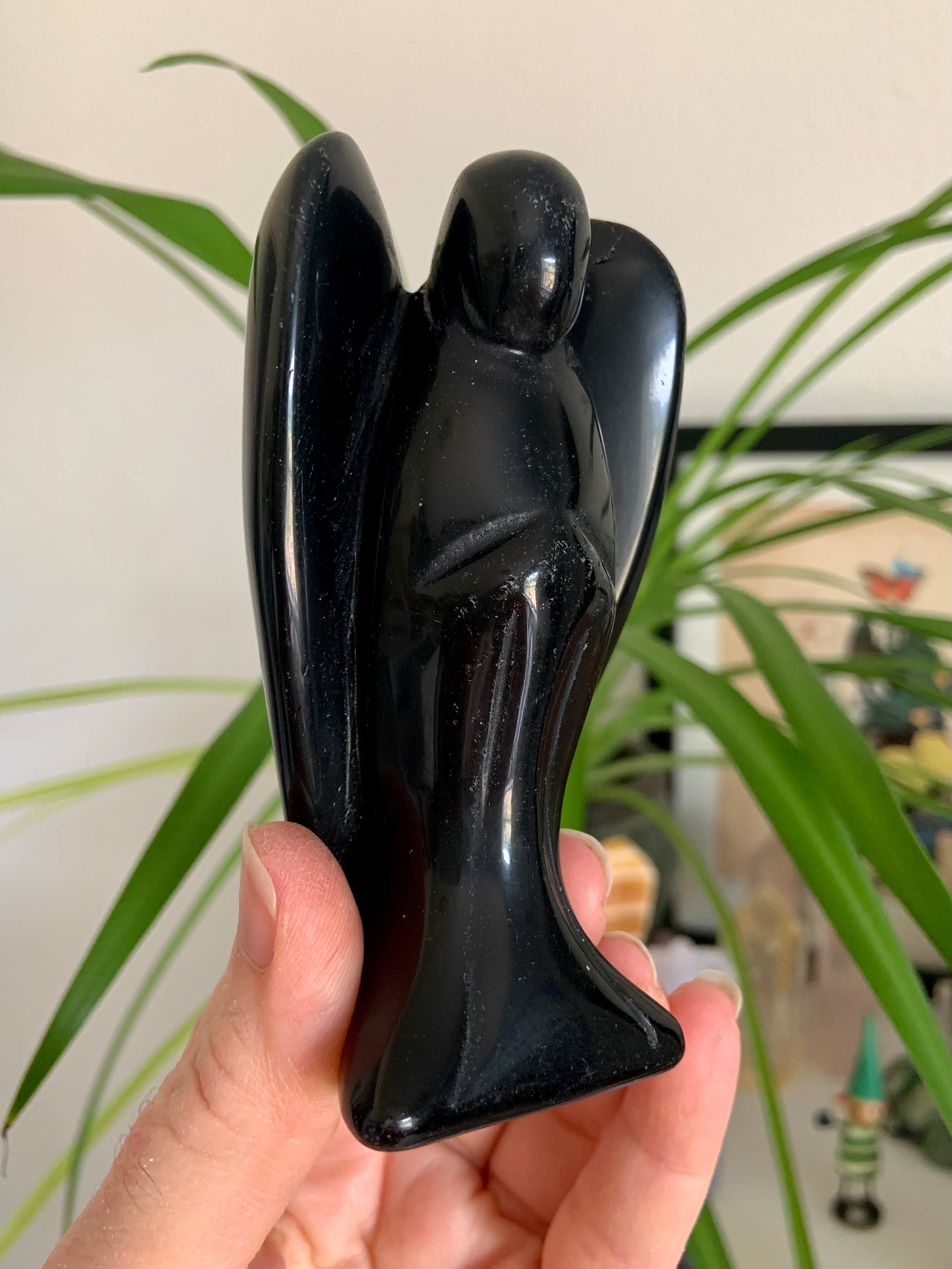 This is a substantially sized angel carving that feels very powerful to hold + makes a statement in your crystal home decor, elevating your sacred space with protective angelic energy.