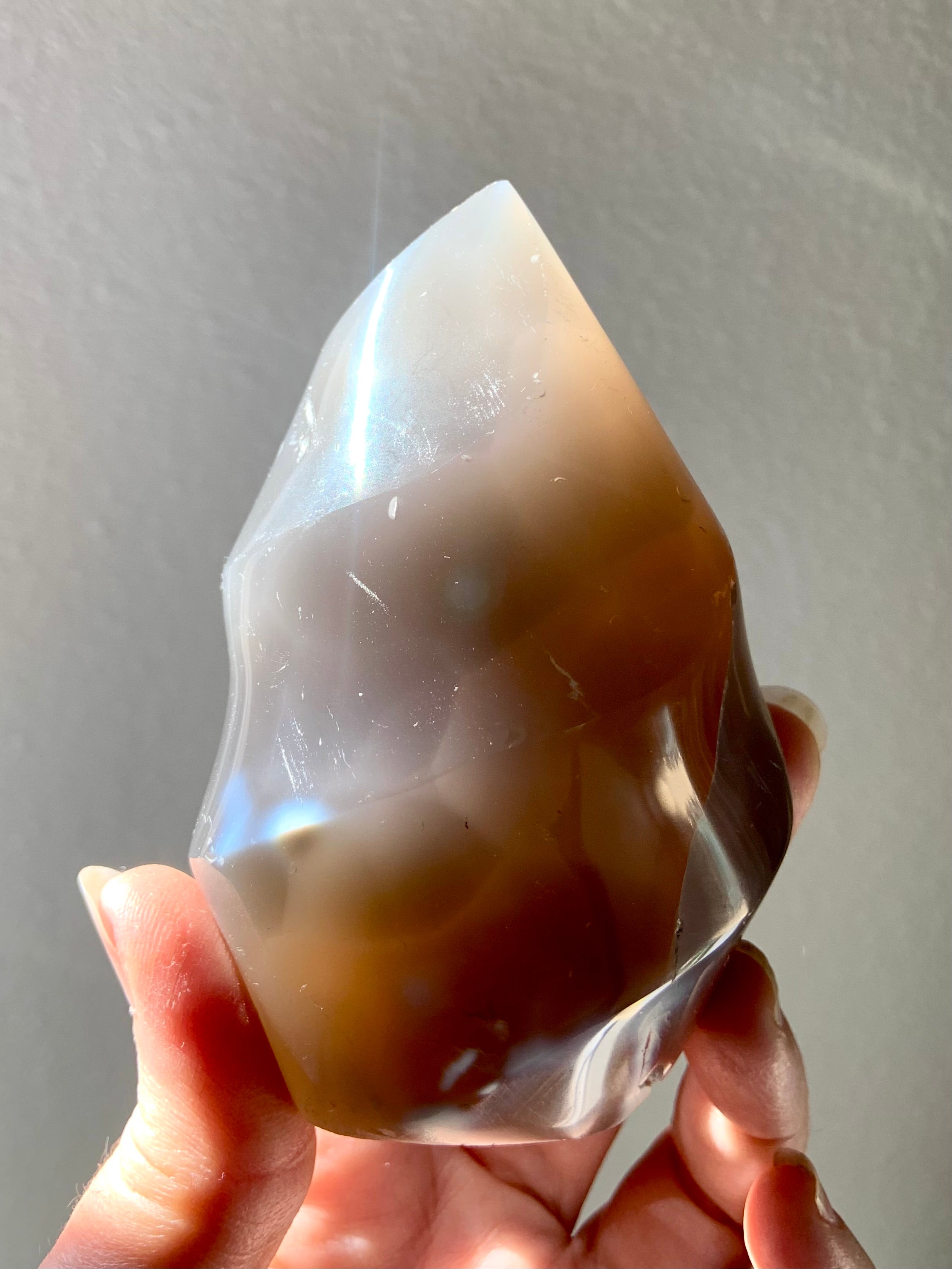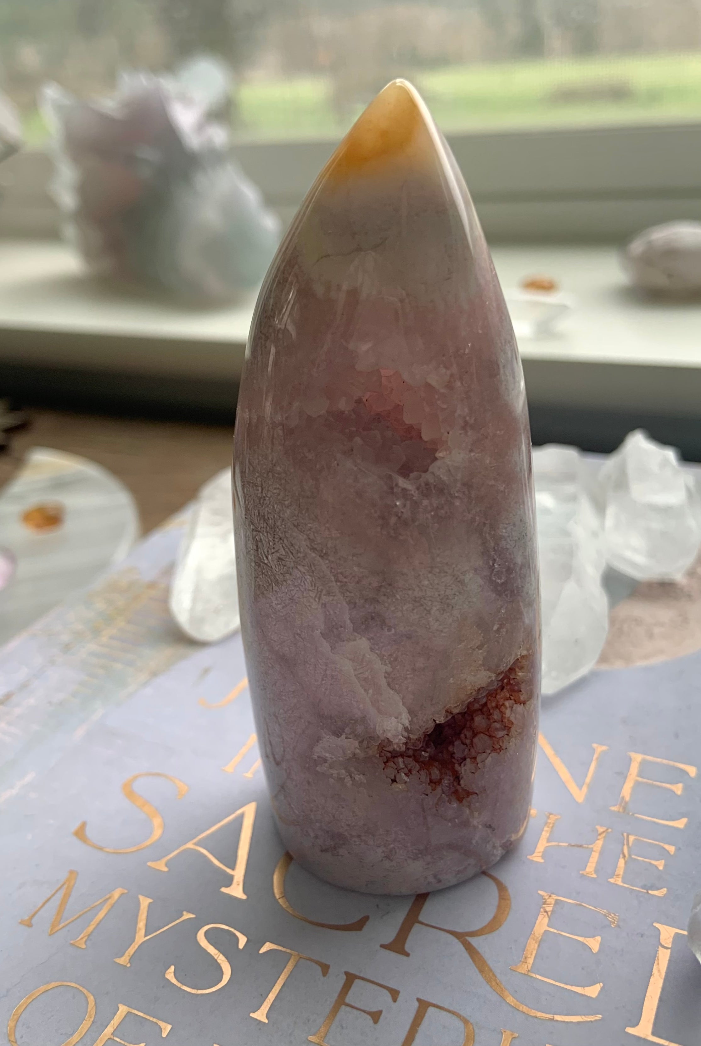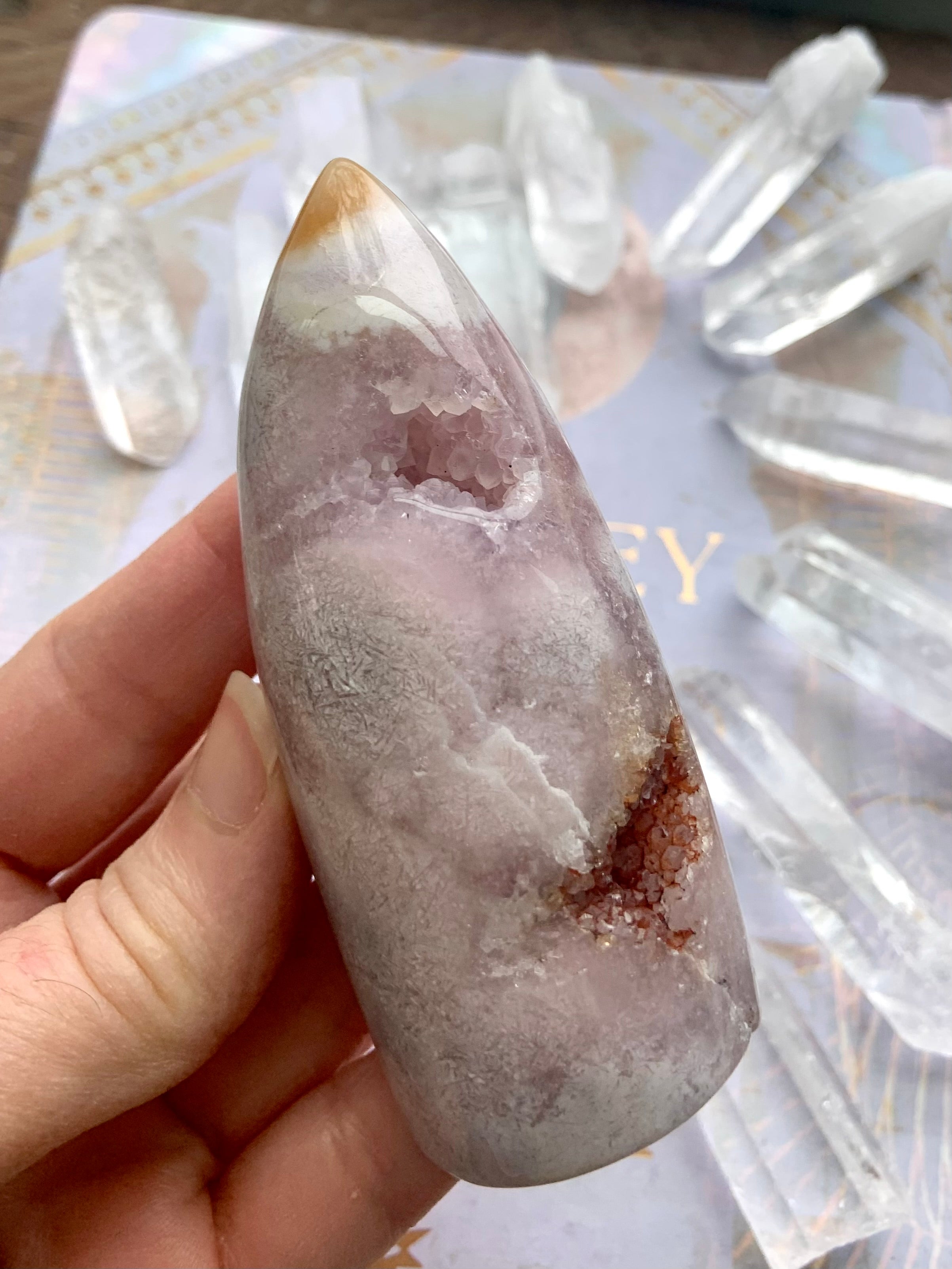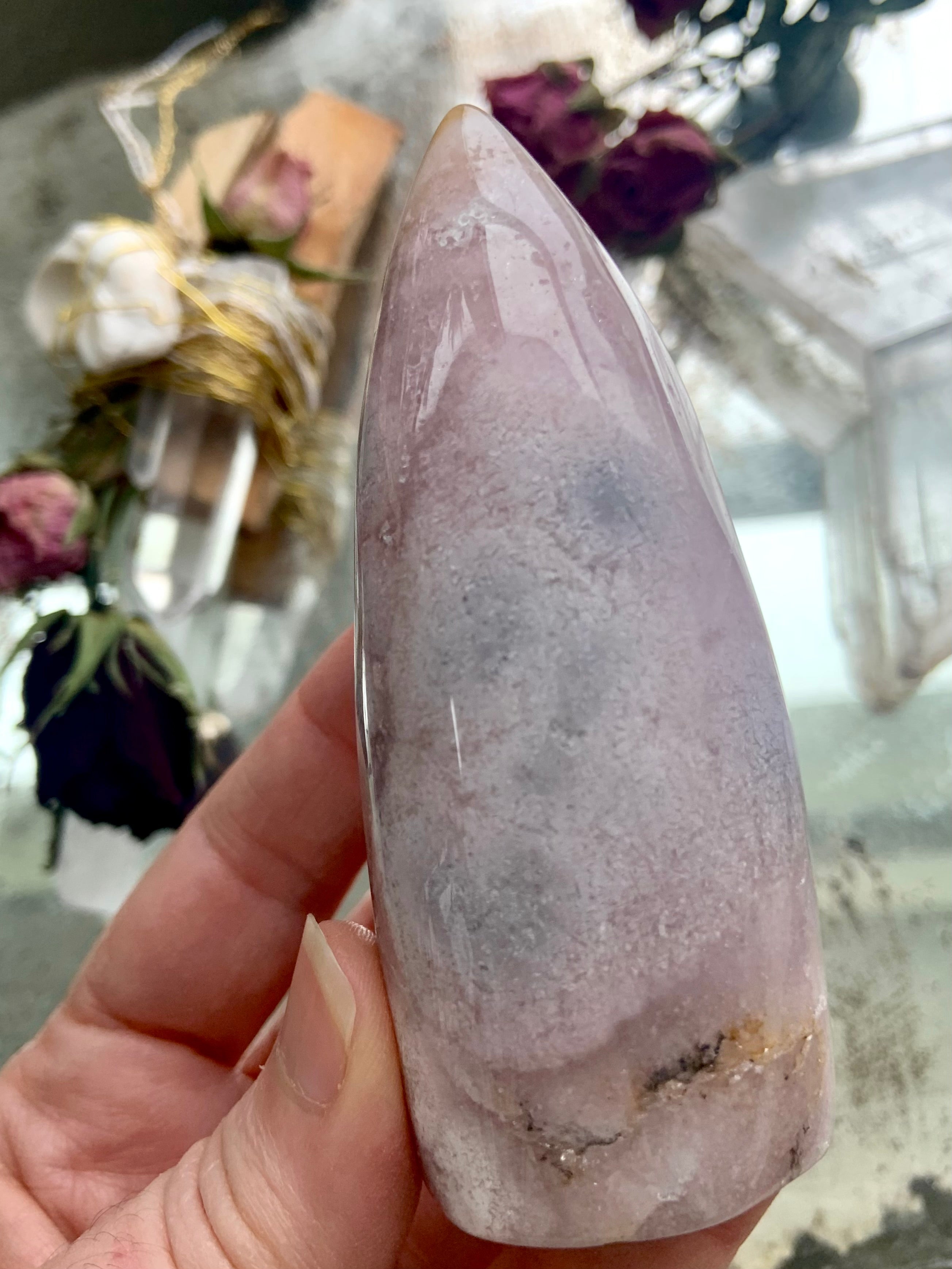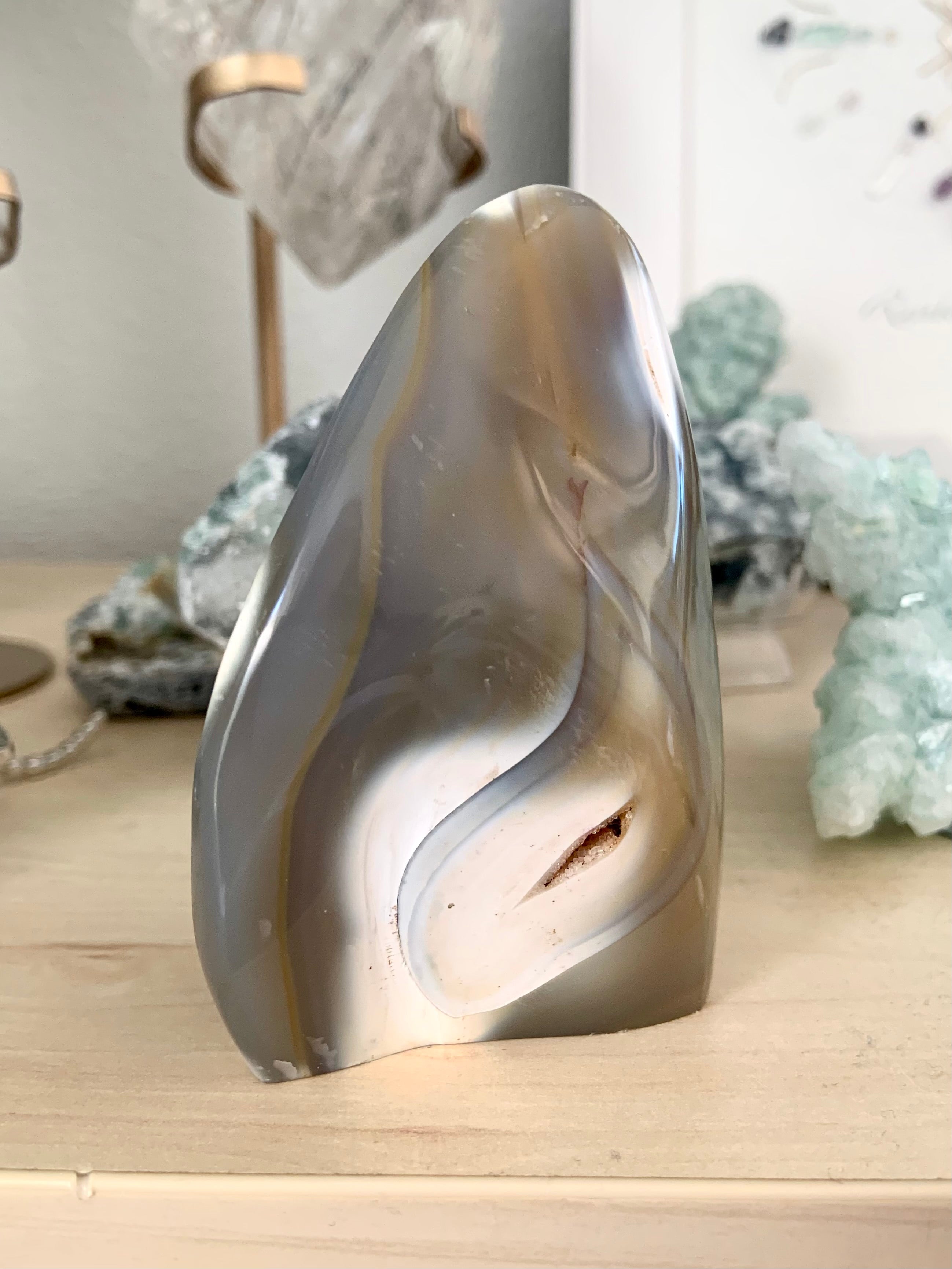 Crafted from high-vibrational crystals like Garden Quartz, Orca Agate, Rose Quartz, Ocean Jasper, Fire Quartz, and Labradorite, these one-of-a-kind, hand shaped pieces bring powerful presence and energy to any space. Freeforms capture the raw elegance of the Earth, while flame carvings symbolize transformation, passion, and the spark of inner power.