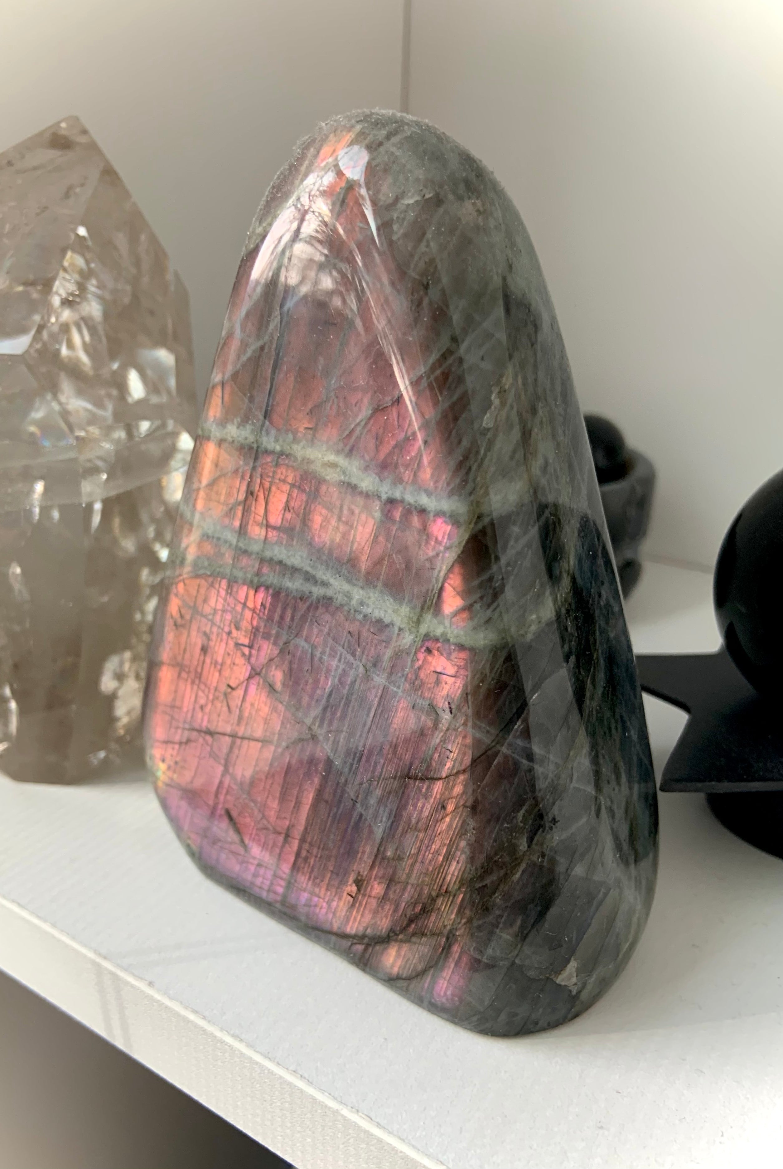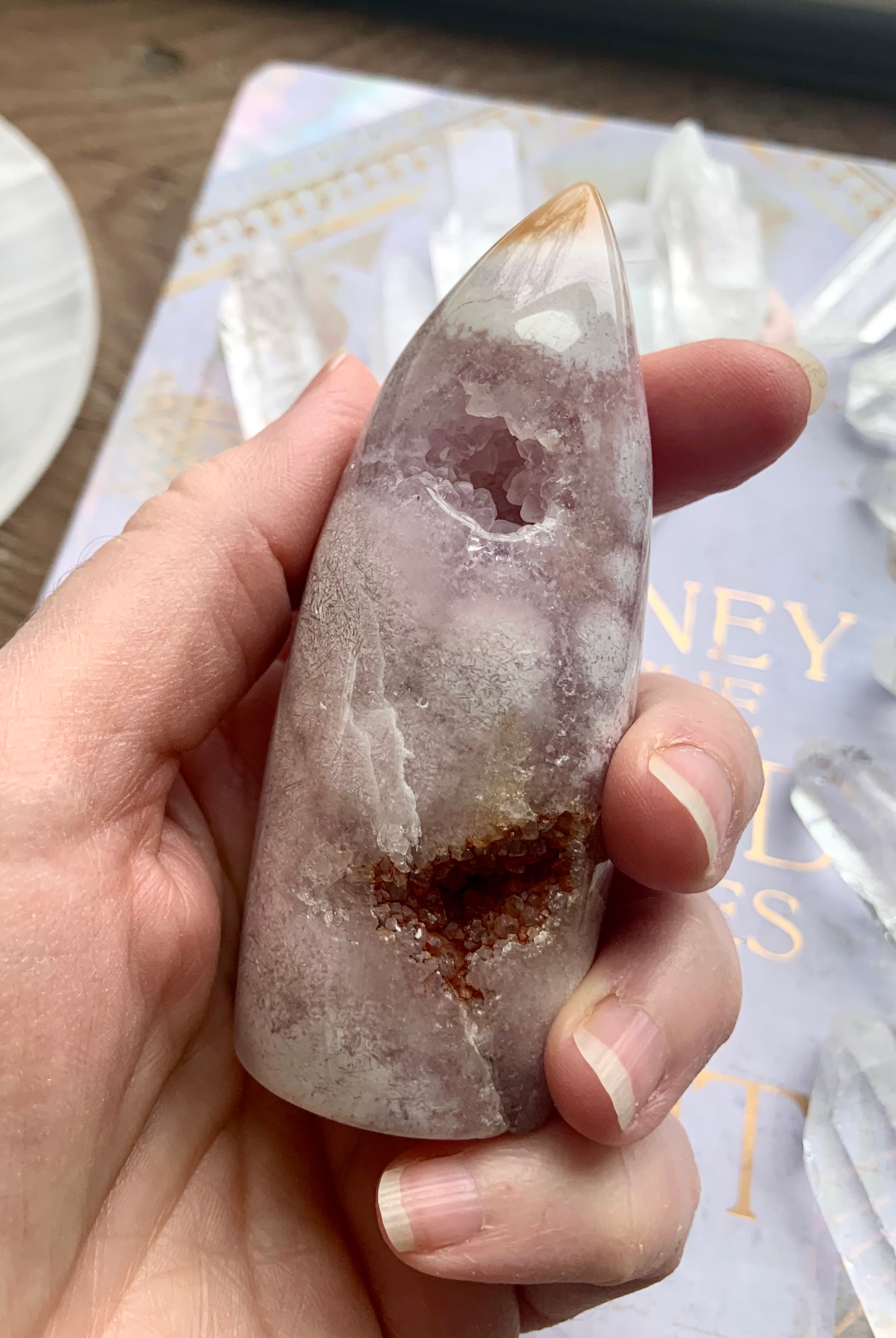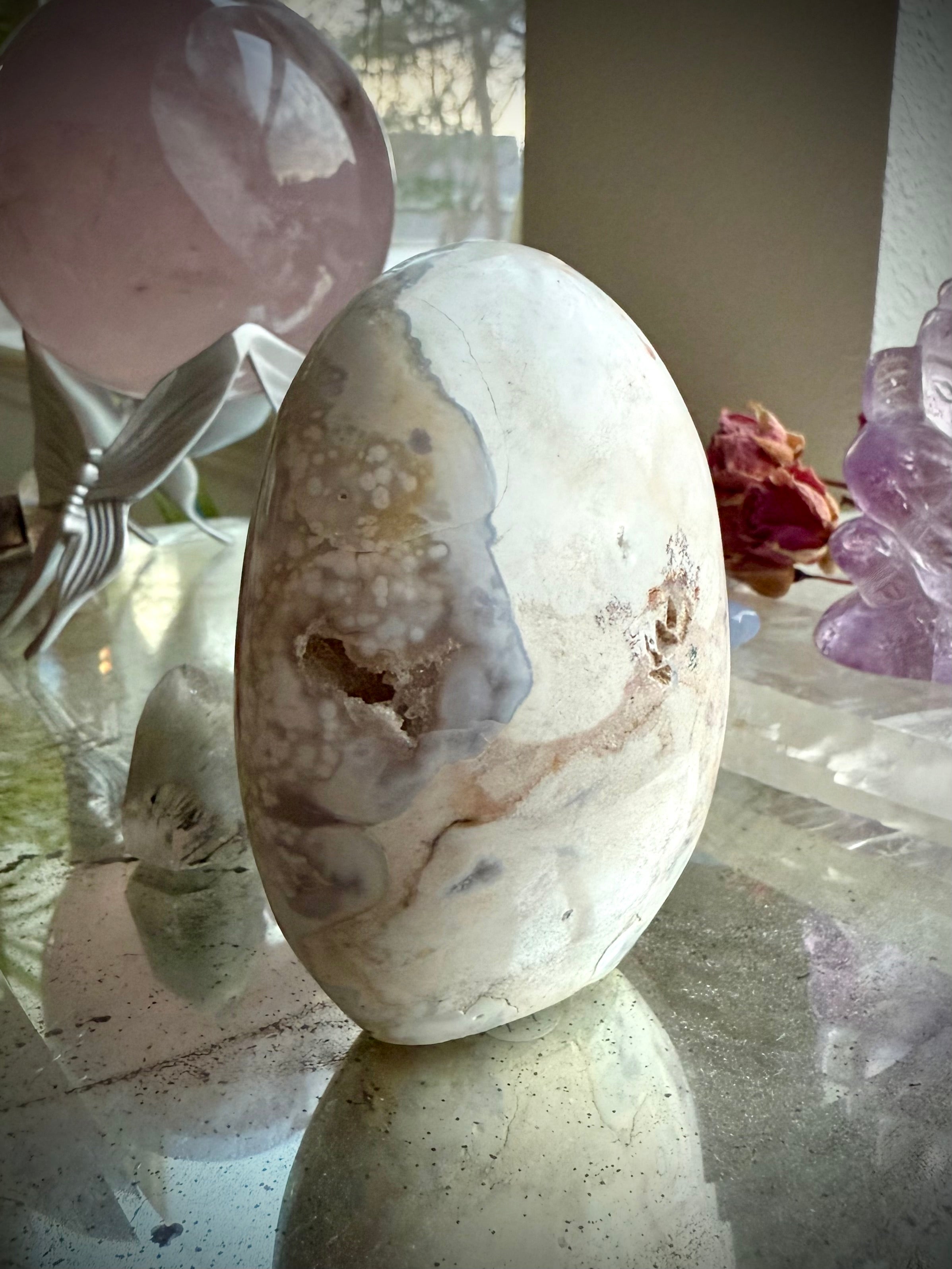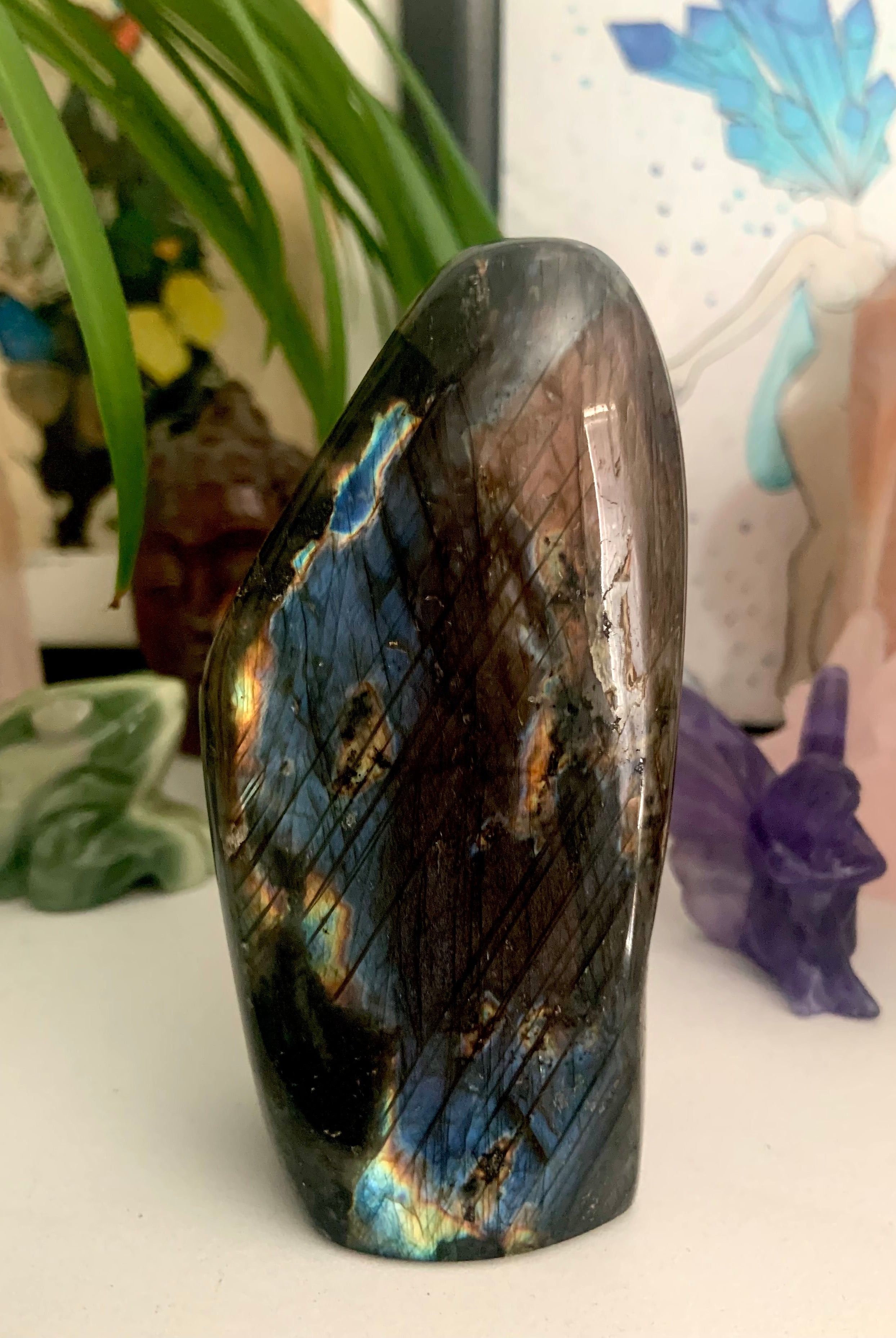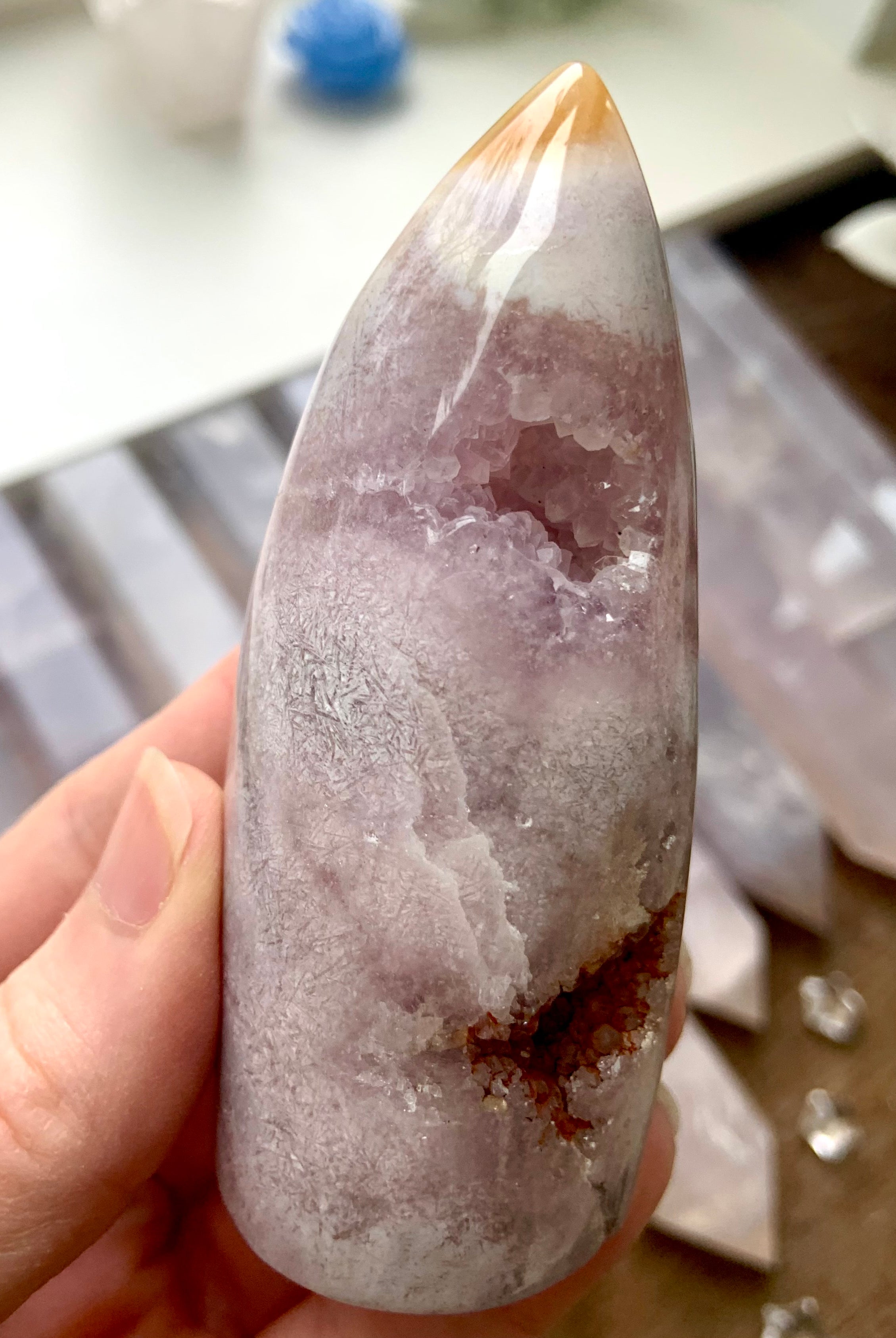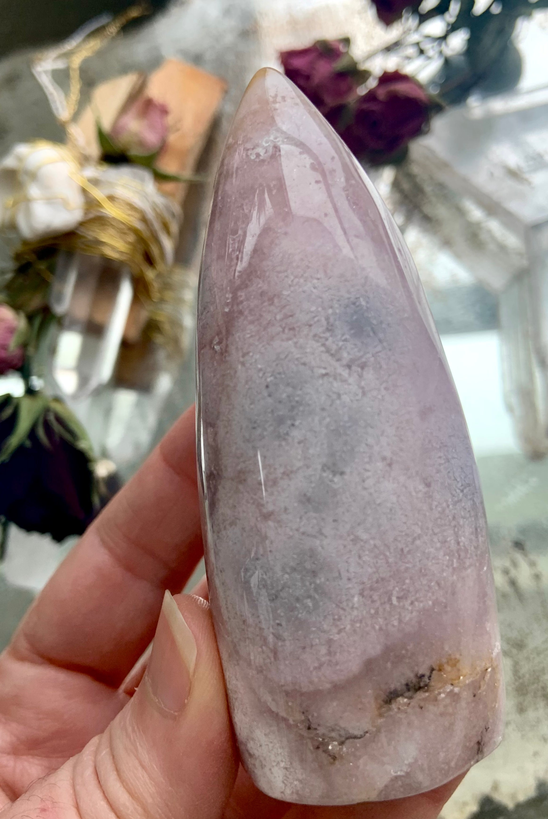 Crafted from high-vibrational crystals like Garden Quartz, Orca Agate, Rose Quartz, Ocean Jasper, Fire Quartz, and Labradorite, these one-of-a-kind, hand shaped pieces bring powerful presence and energy to any space. Freeforms capture the raw elegance of the Earth, while flame carvings symbolize transformation, passion, and the spark of inner power.