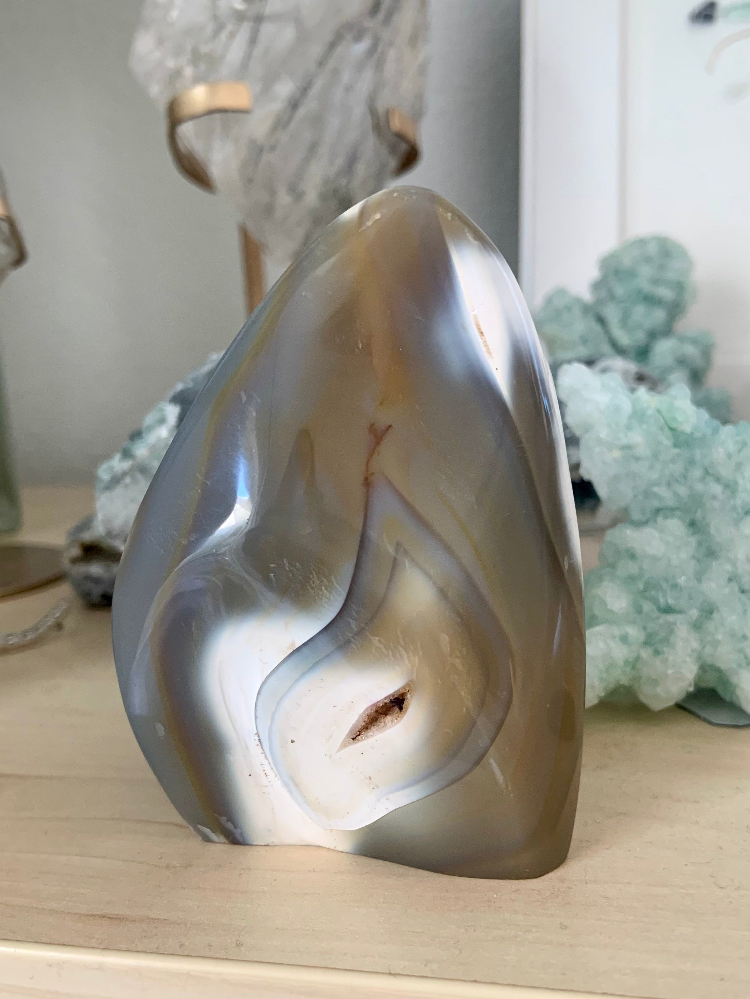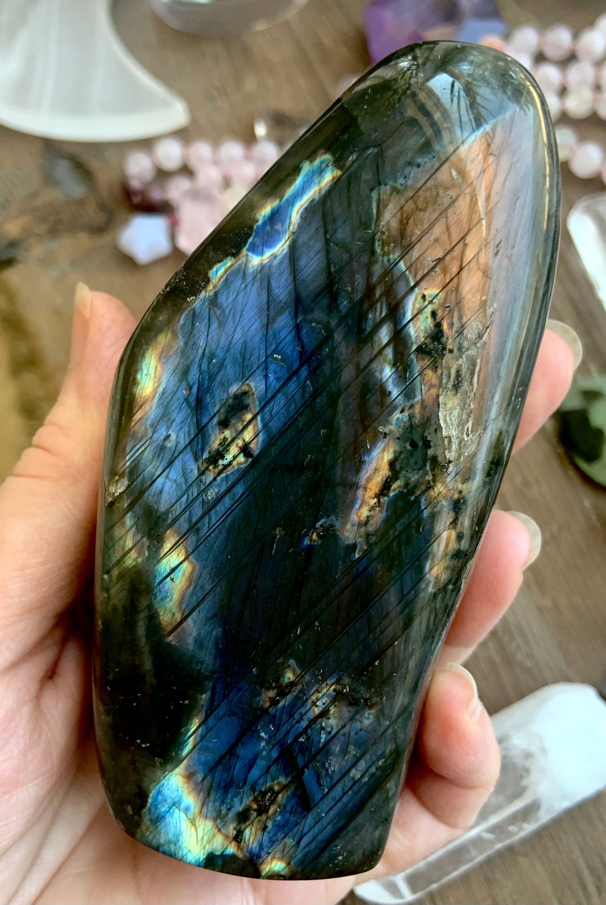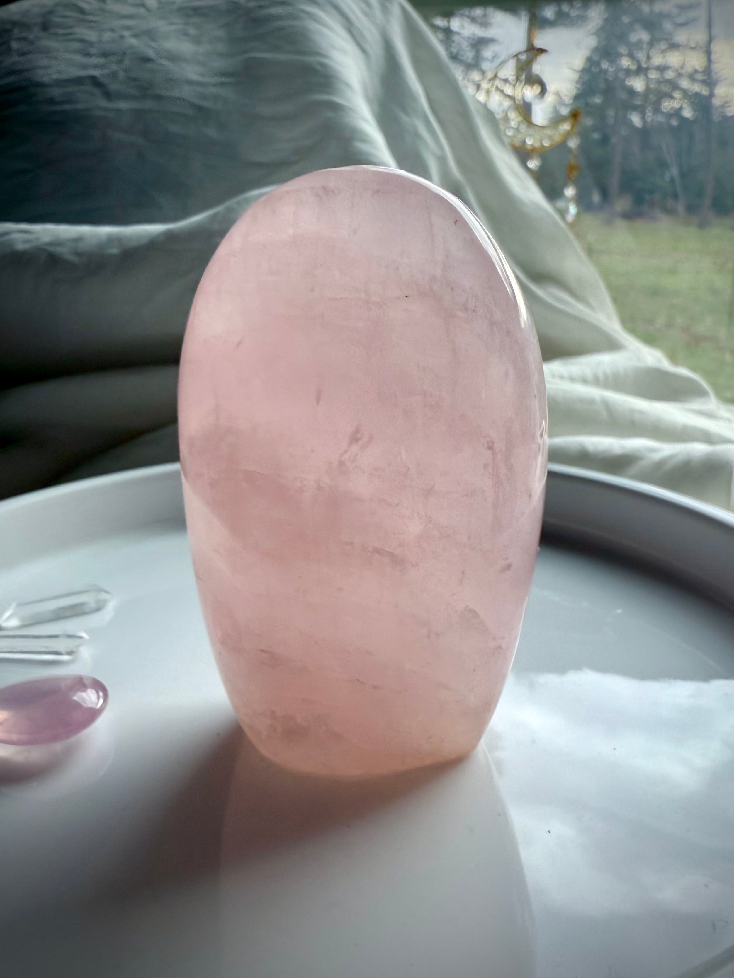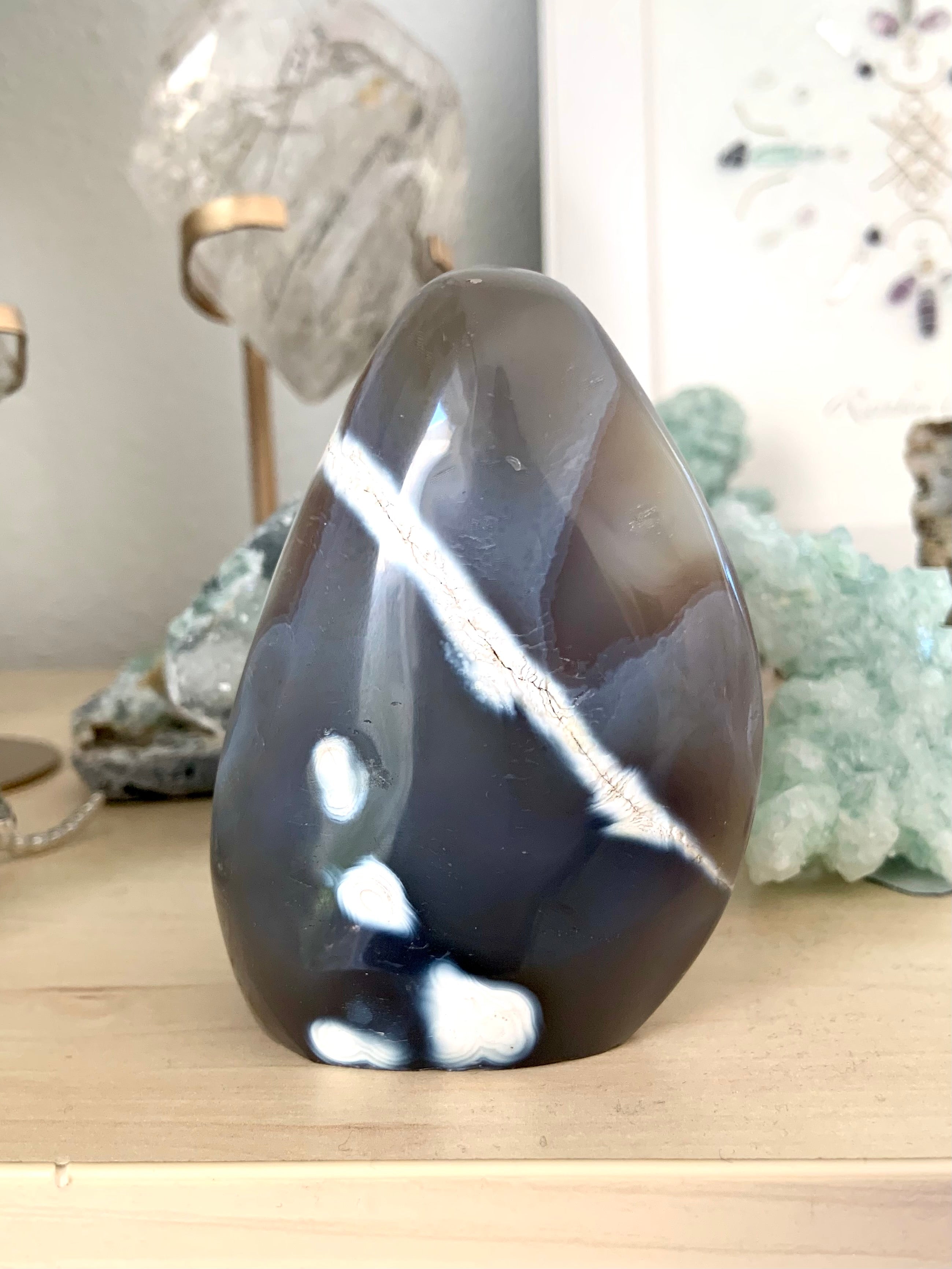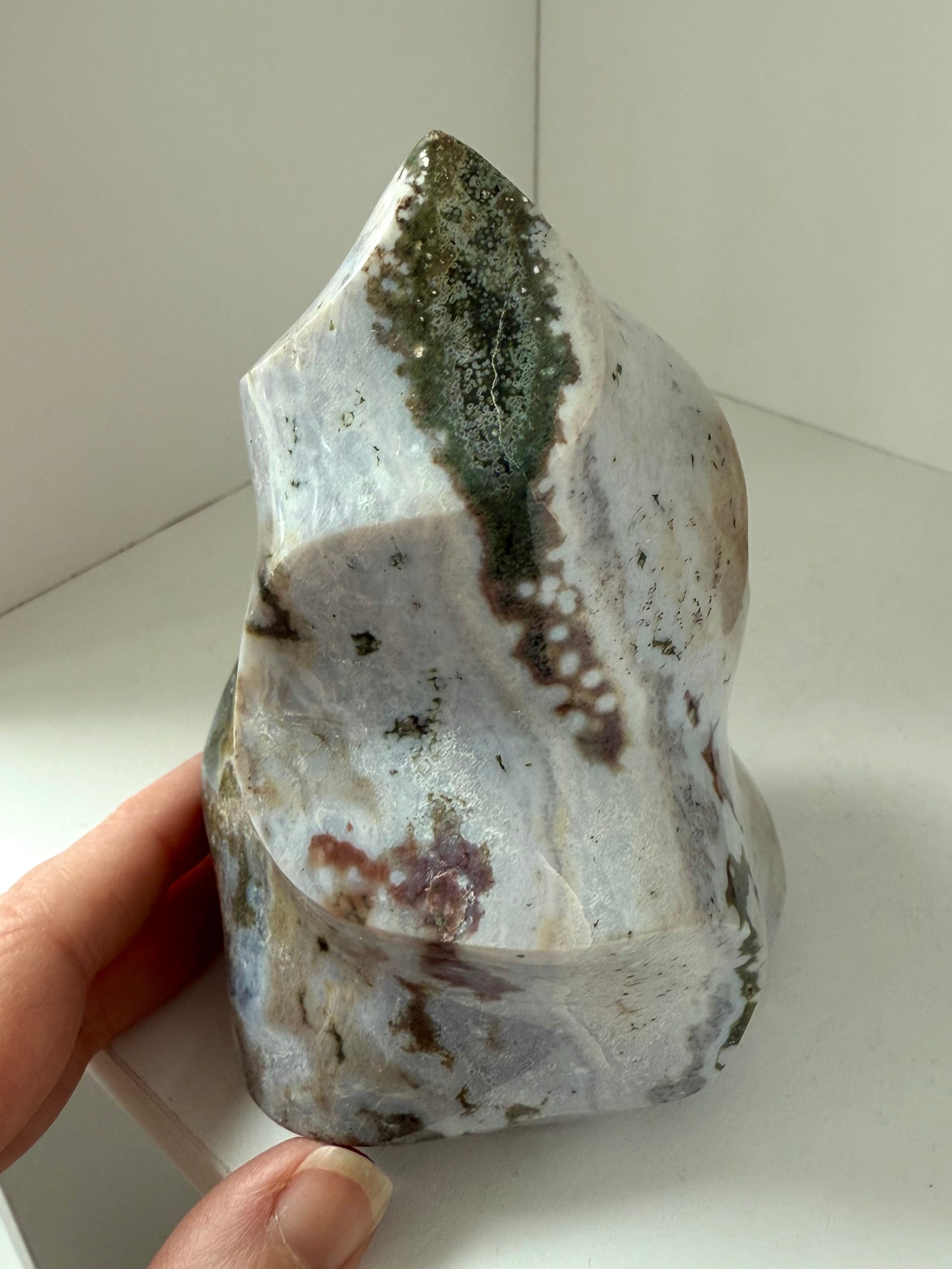 Crafted from high-vibrational crystals like Garden Quartz, Orca Agate, Rose Quartz, Ocean Jasper, Fire Quartz, and Labradorite, these one-of-a-kind, hand shaped pieces bring powerful presence and energy to any space. Freeforms capture the raw elegance of the Earth, while flame carvings symbolize transformation, passion, and the spark of inner power.