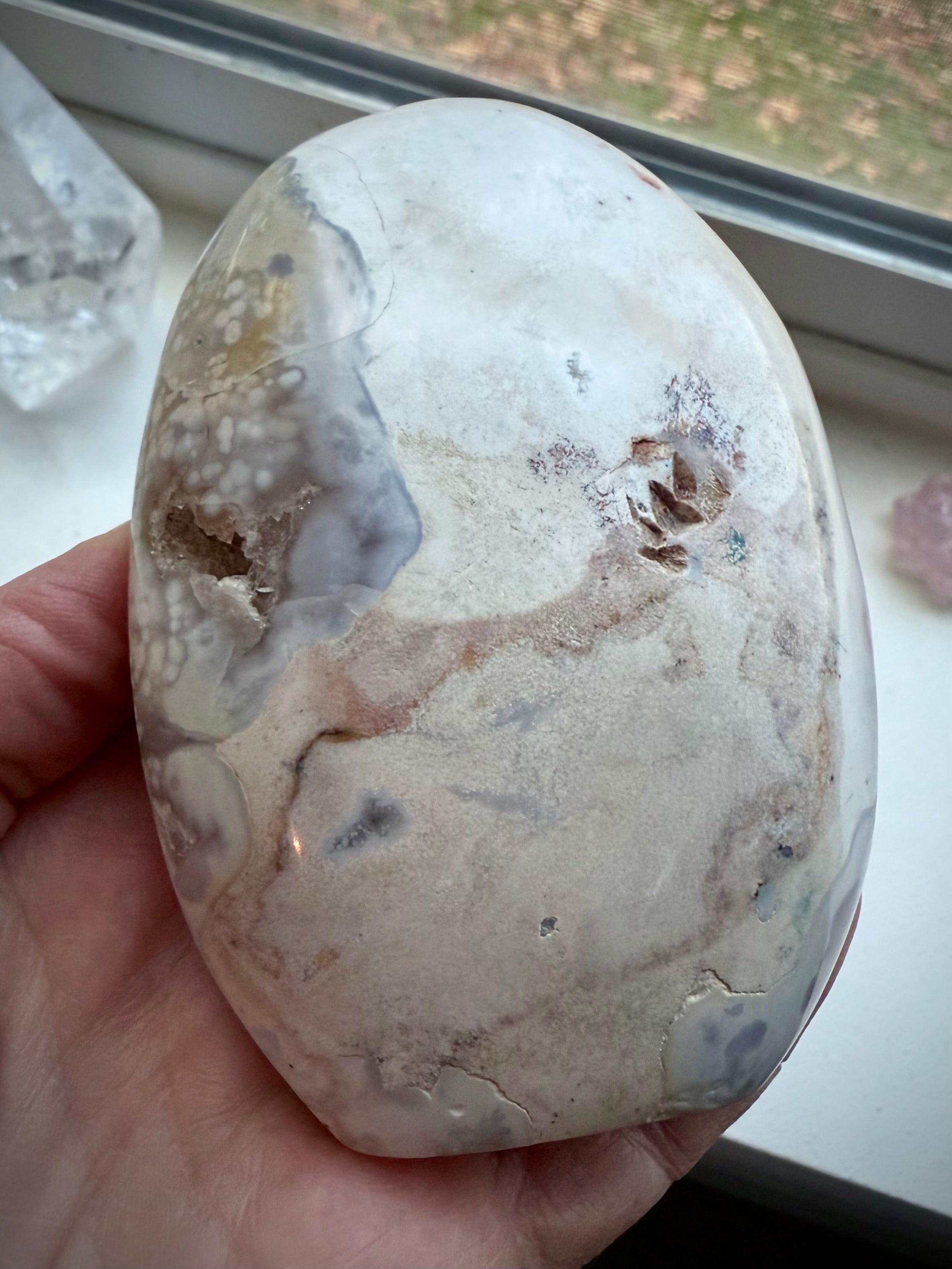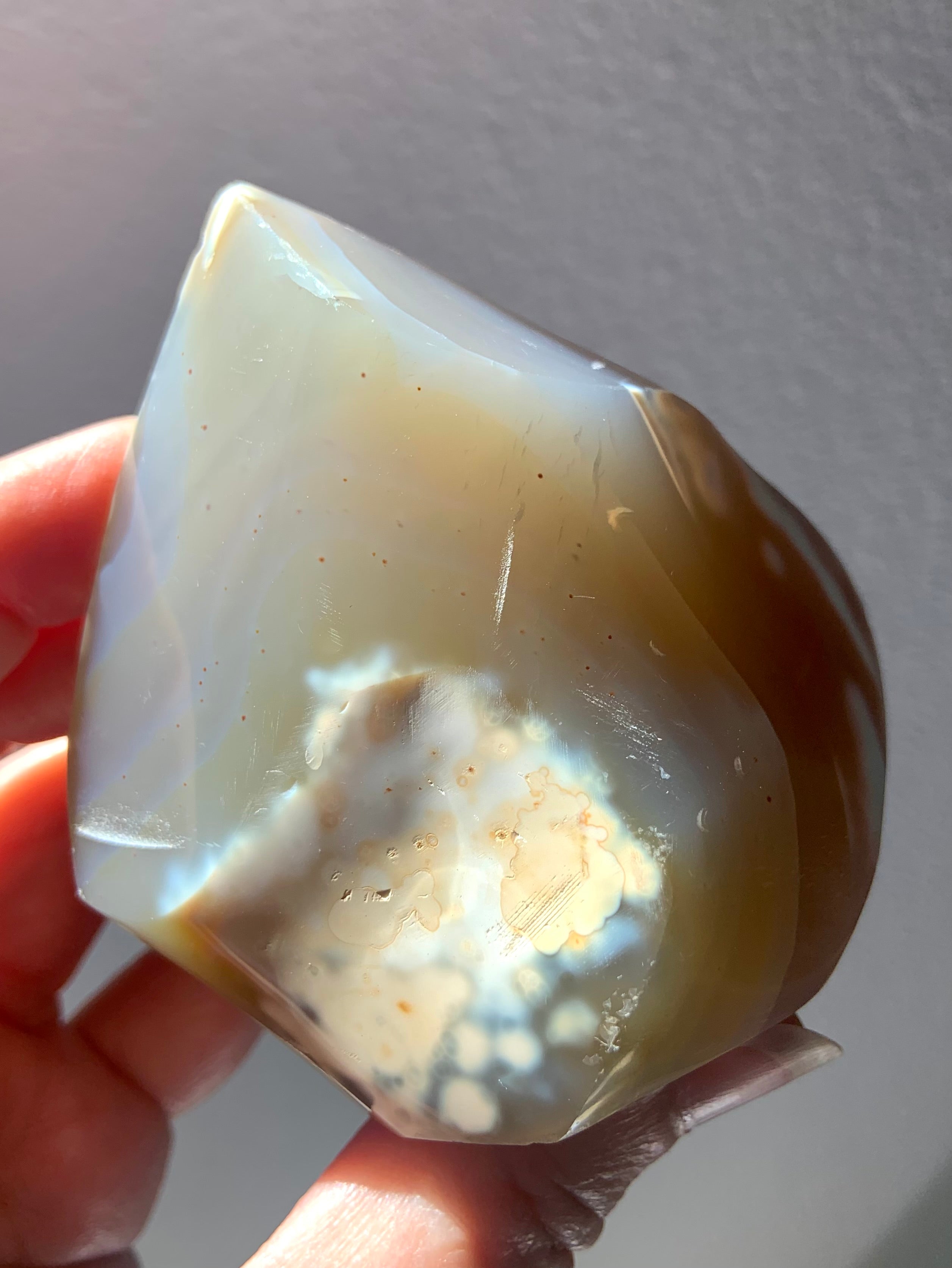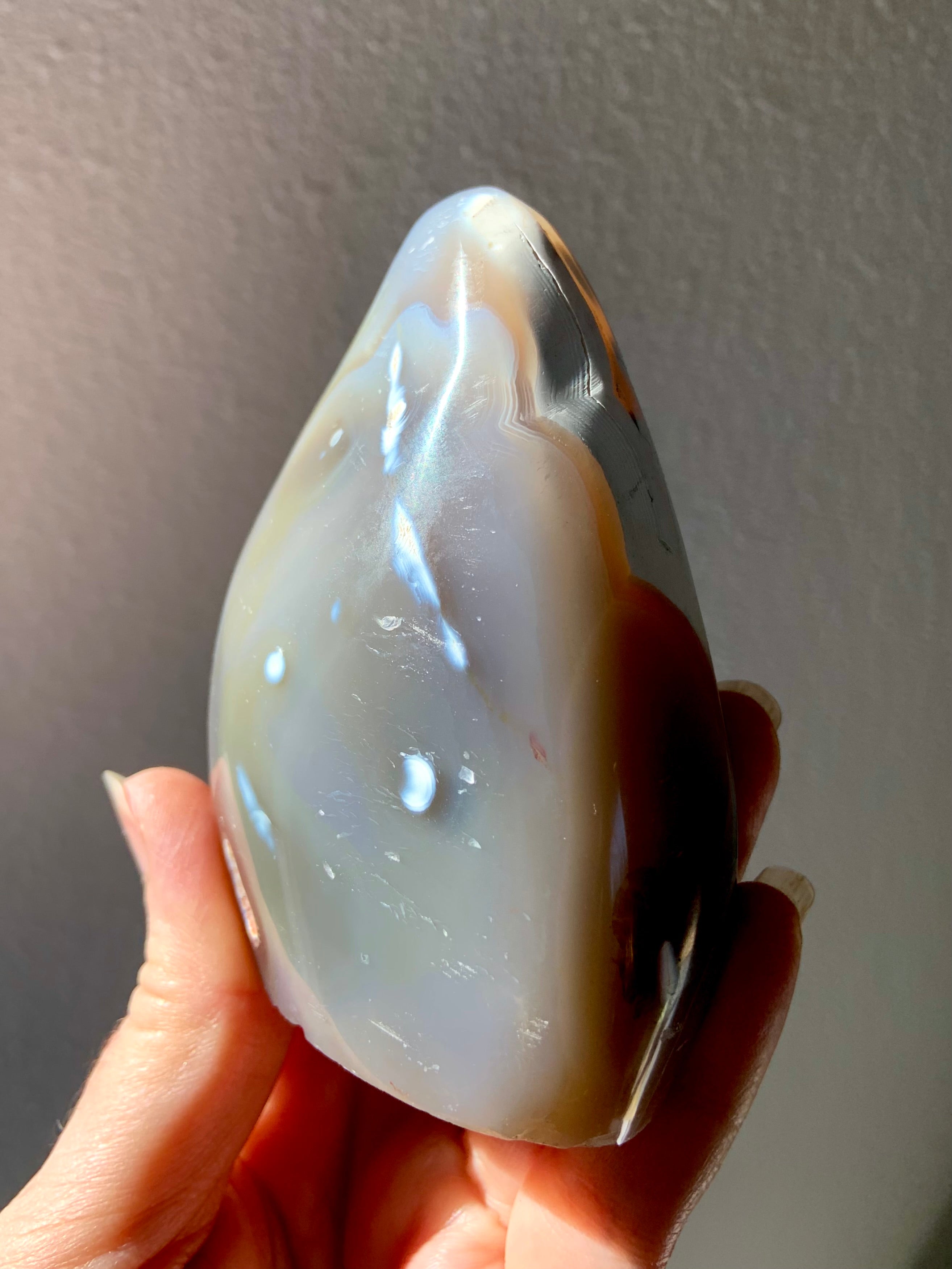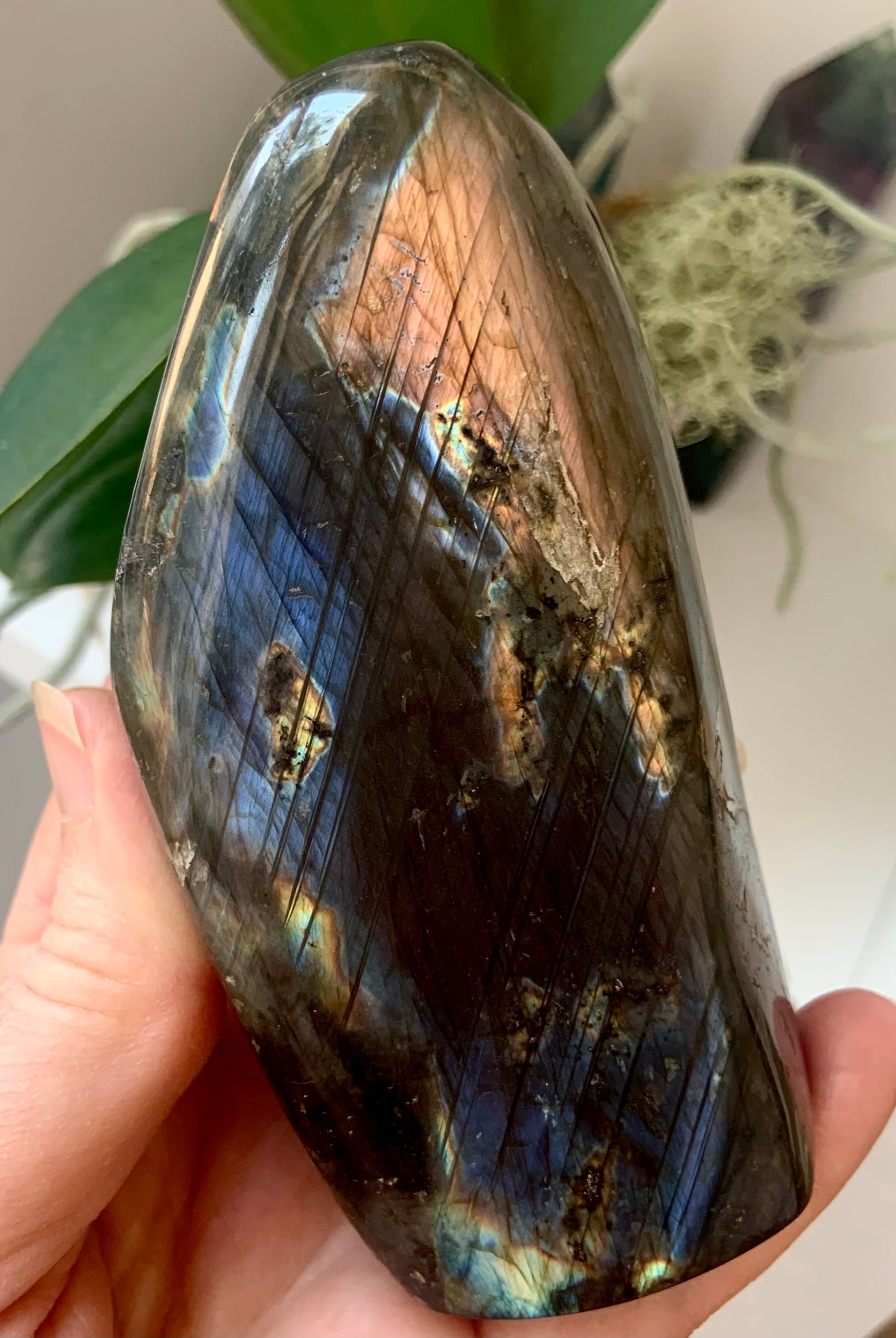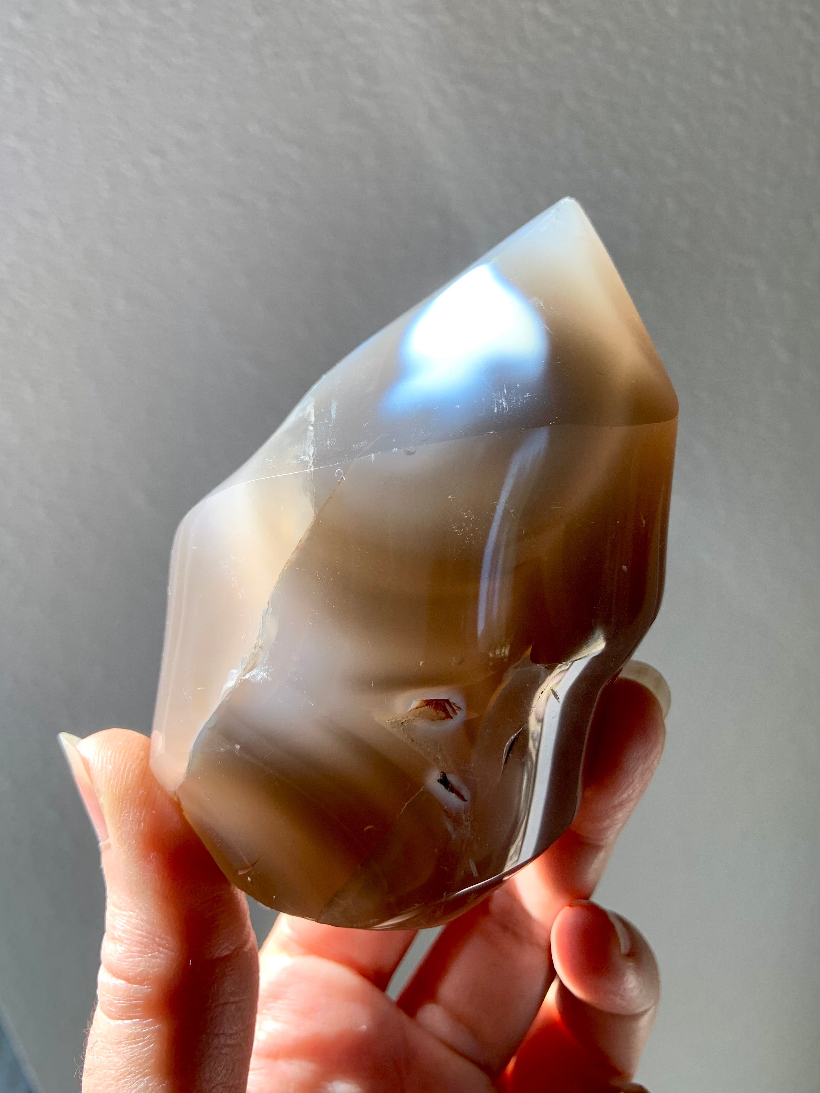 Crafted from high-vibrational crystals like Garden Quartz, Orca Agate, Rose Quartz, Ocean Jasper, Fire Quartz, and Labradorite, these one-of-a-kind, hand shaped pieces bring powerful presence and energy to any space. Freeforms capture the raw elegance of the Earth, while flame carvings symbolize transformation, passion, and the spark of inner power.