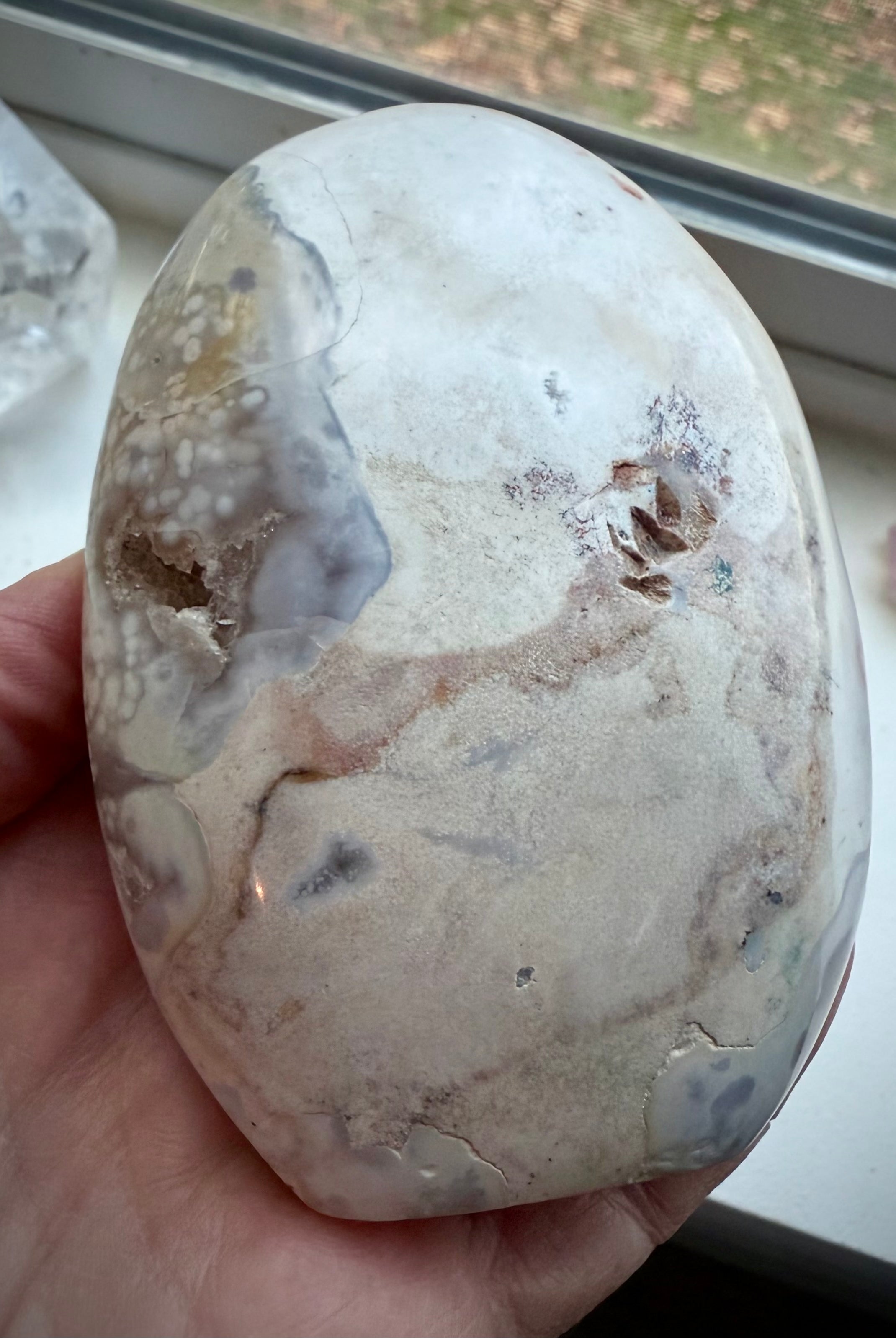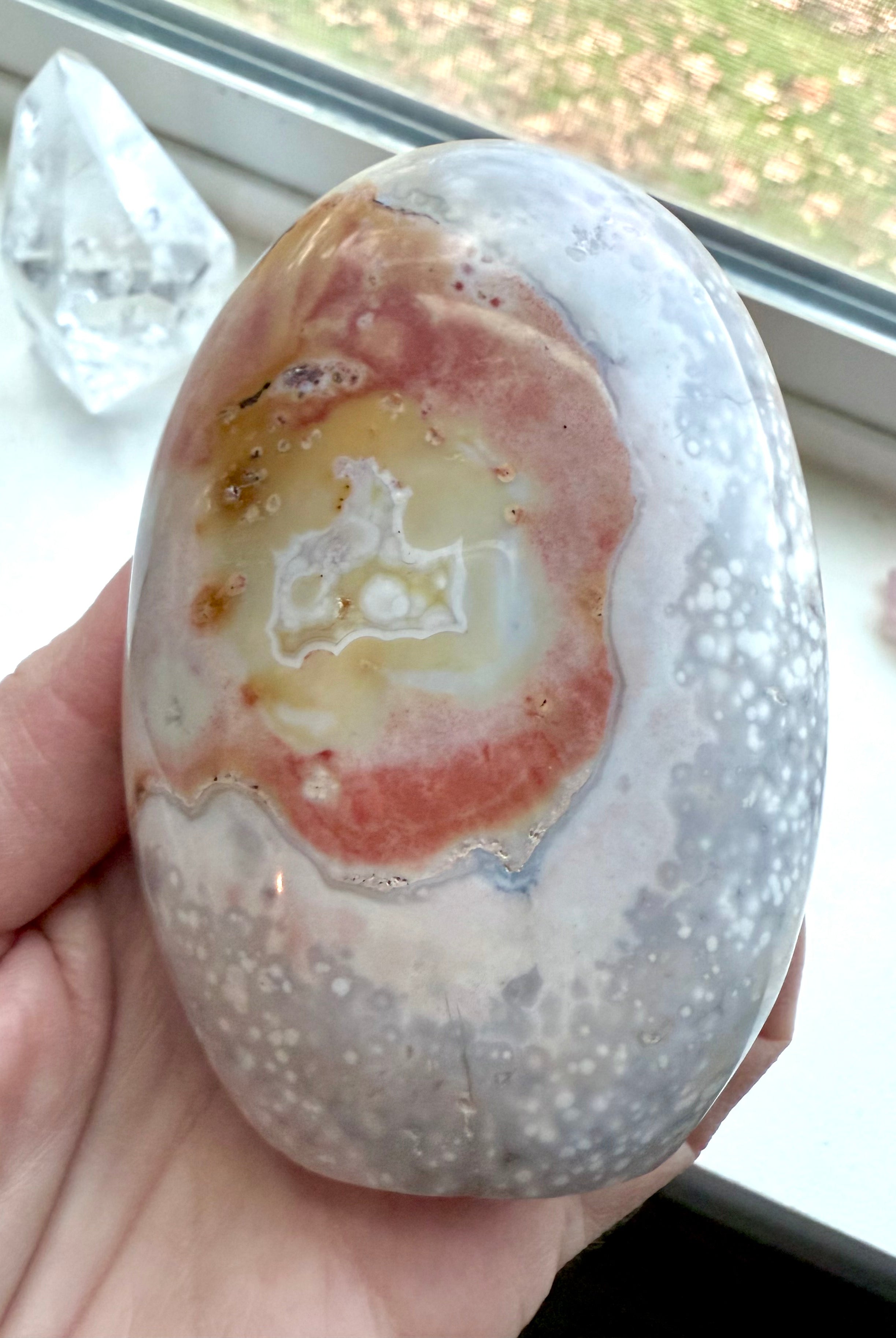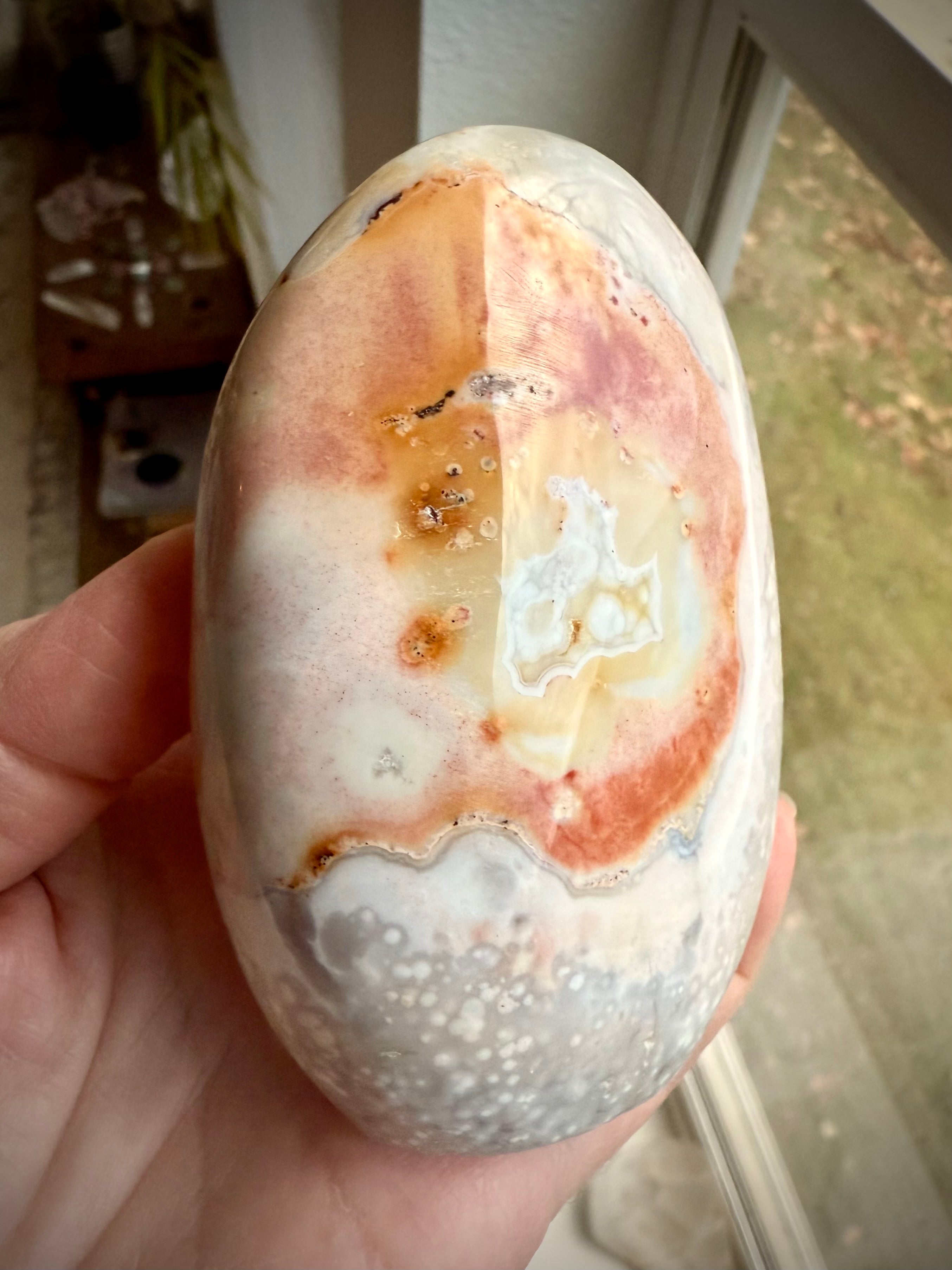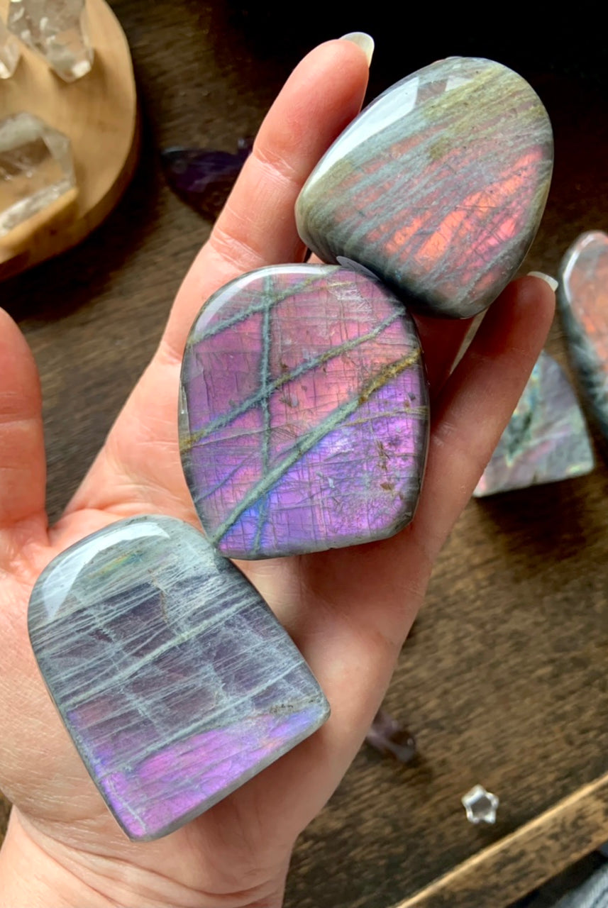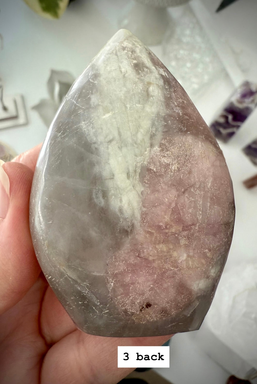 Crafted from high-vibrational crystals like Garden Quartz, Orca Agate, Rose Quartz, Ocean Jasper, Fire Quartz, and Labradorite, these one-of-a-kind, hand shaped pieces bring powerful presence and energy to any space. Freeforms capture the raw elegance of the Earth, while flame carvings symbolize transformation, passion, and the spark of inner power.