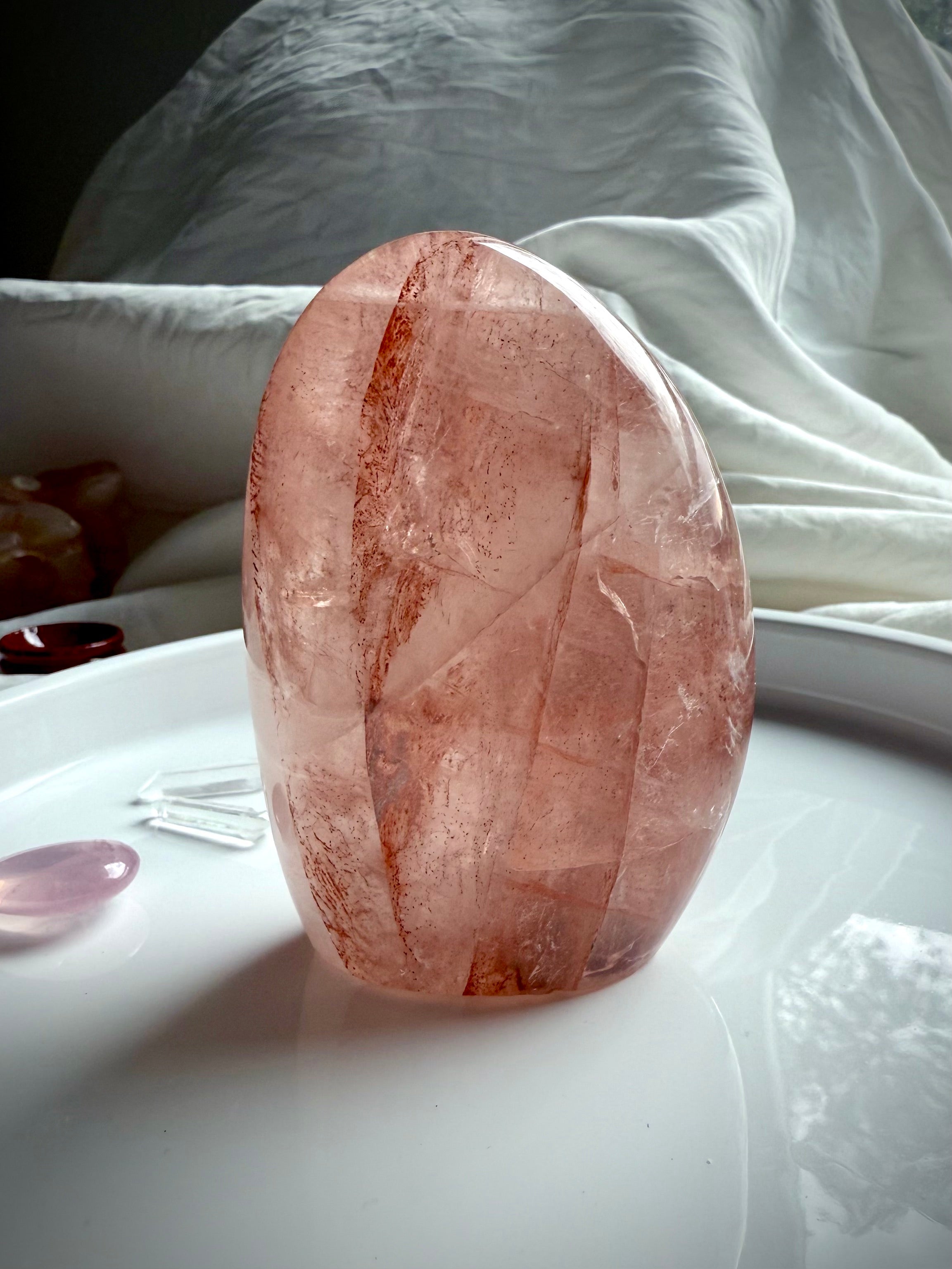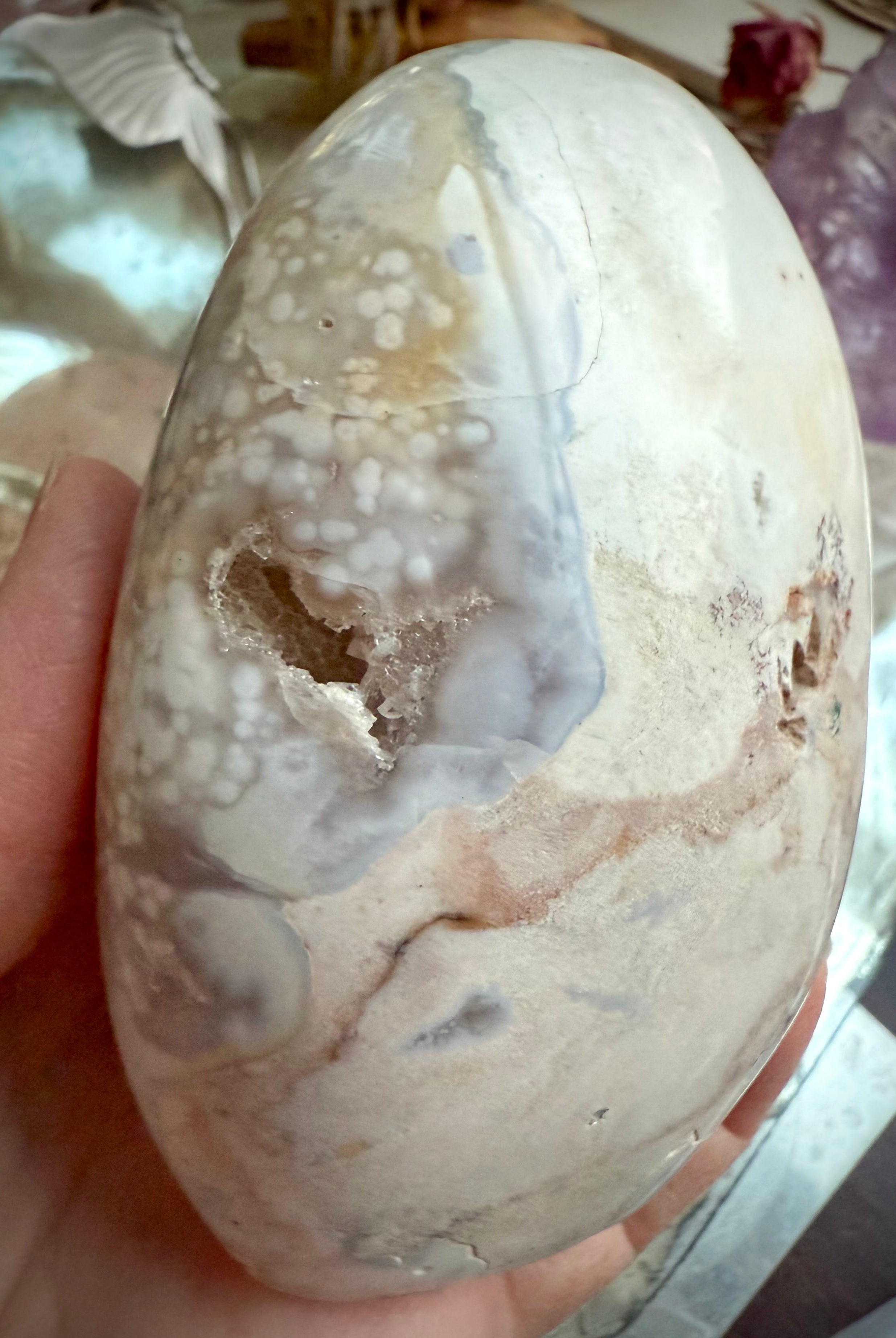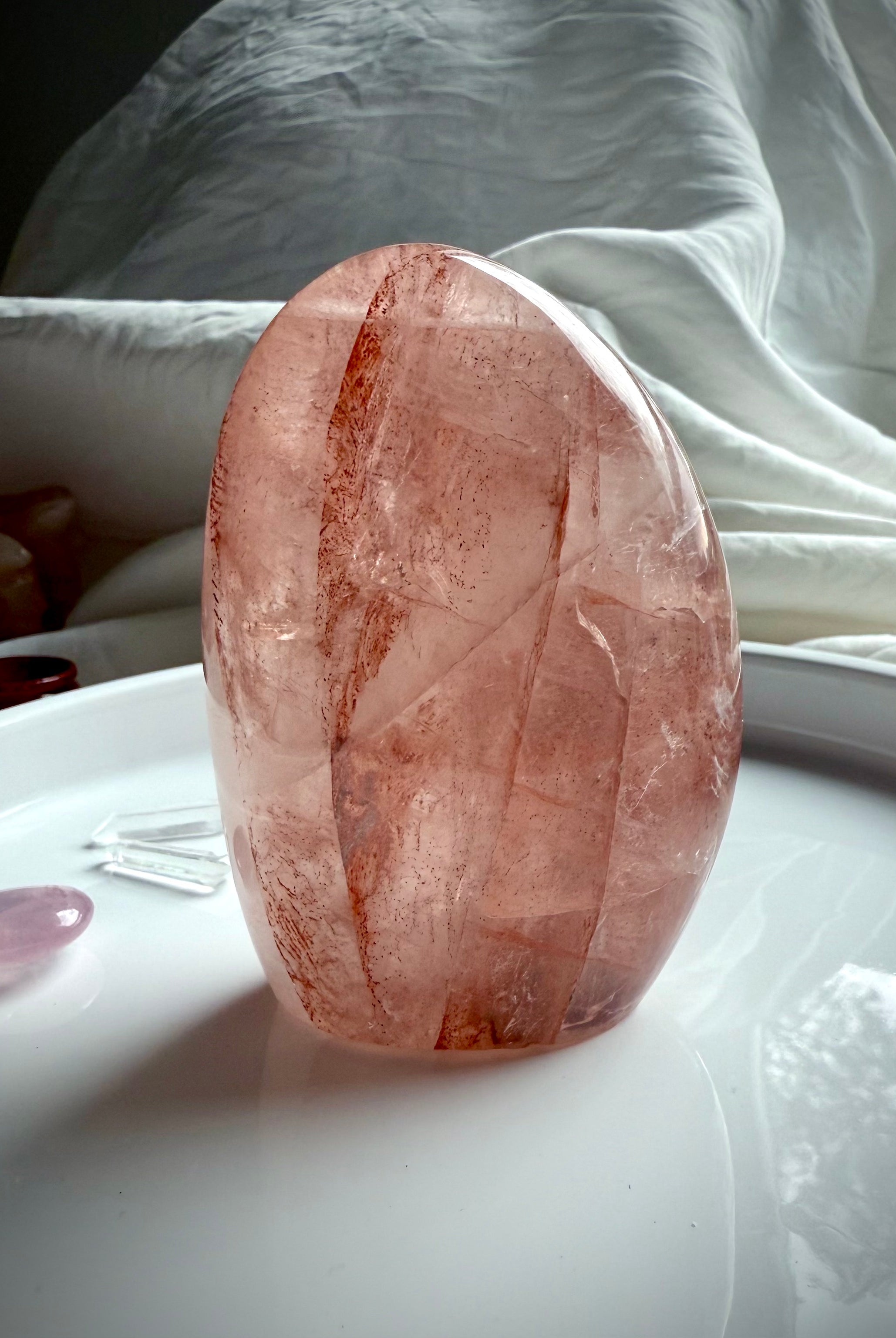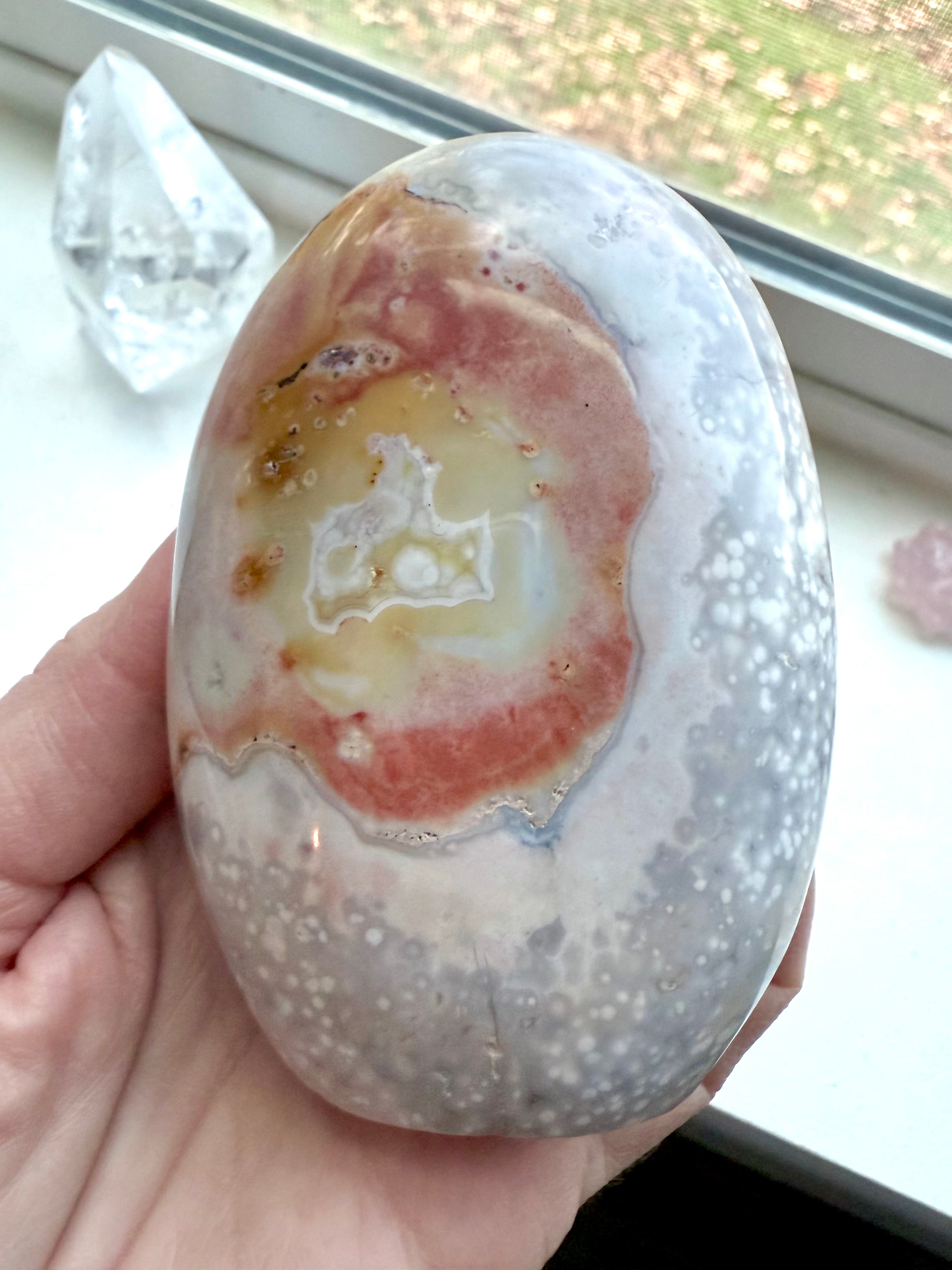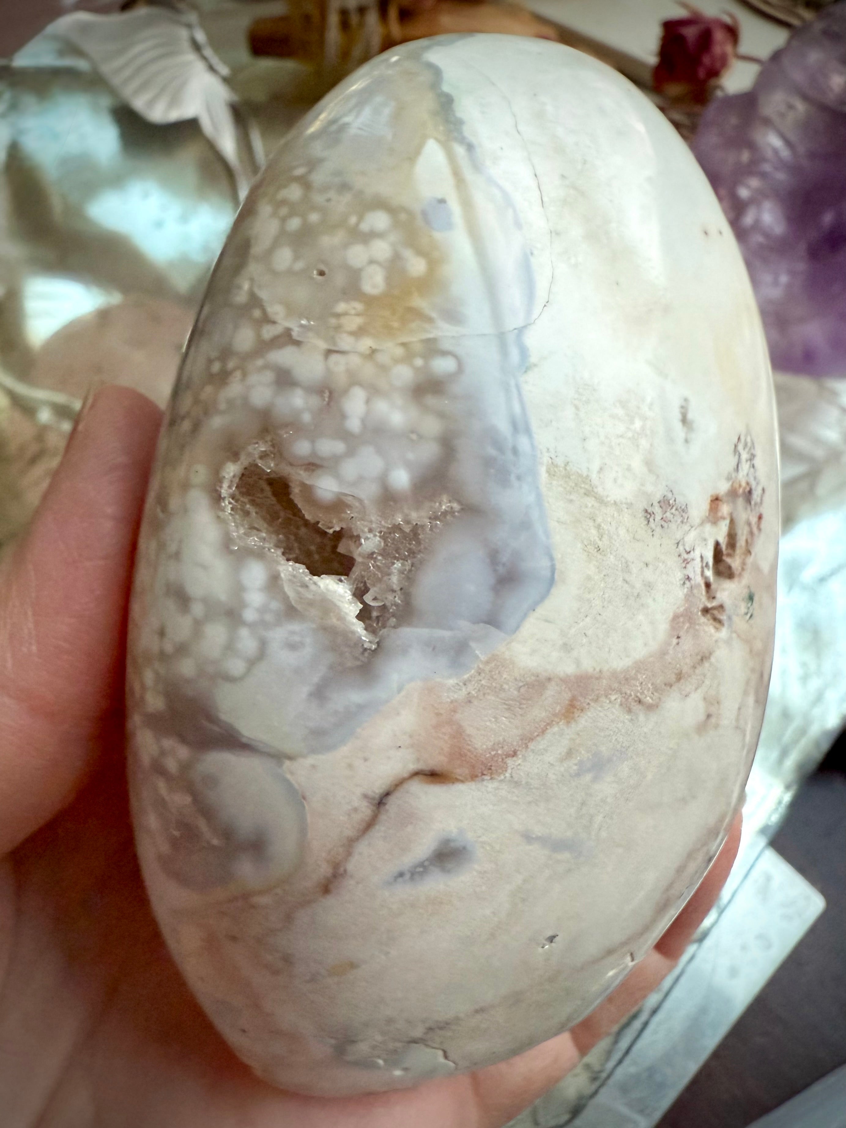 Crafted from high-vibrational crystals like Garden Quartz, Orca Agate, Rose Quartz, Ocean Jasper, Fire Quartz, and Labradorite, these one-of-a-kind, hand shaped pieces bring powerful presence and energy to any space. Freeforms capture the raw elegance of the Earth, while flame carvings symbolize transformation, passion, and the spark of inner power.