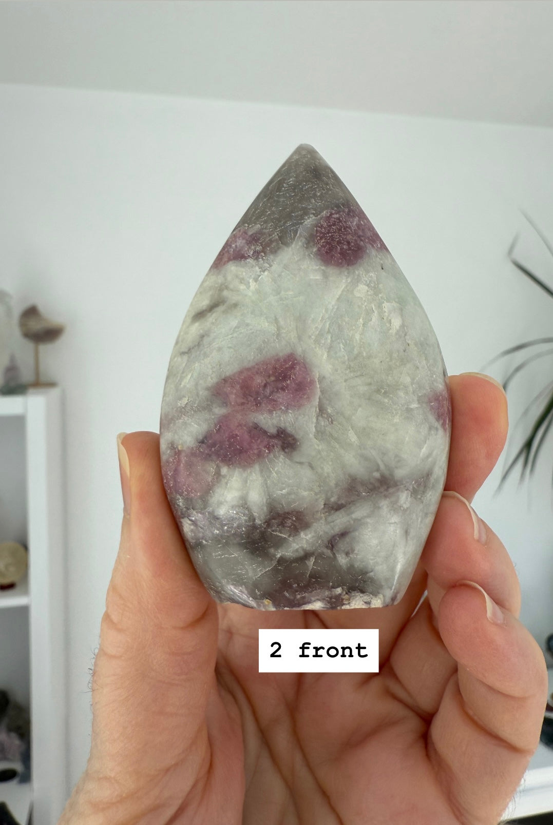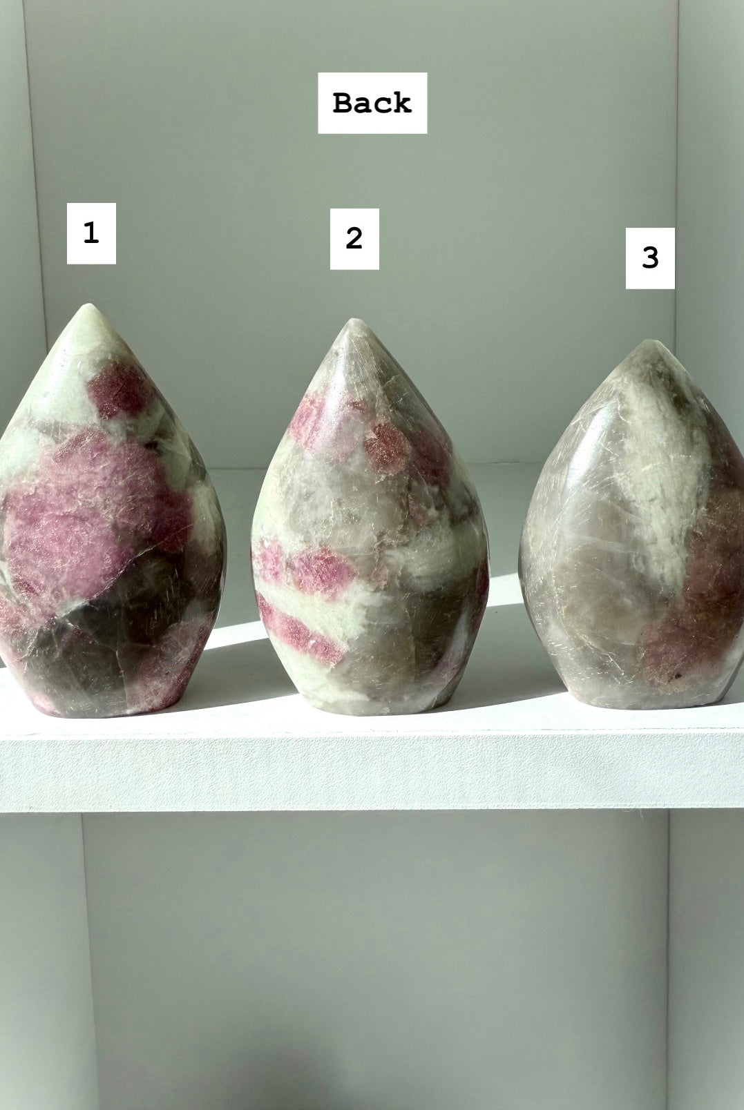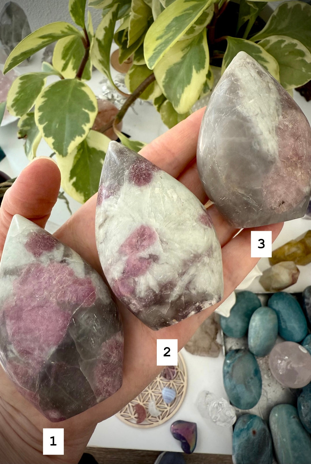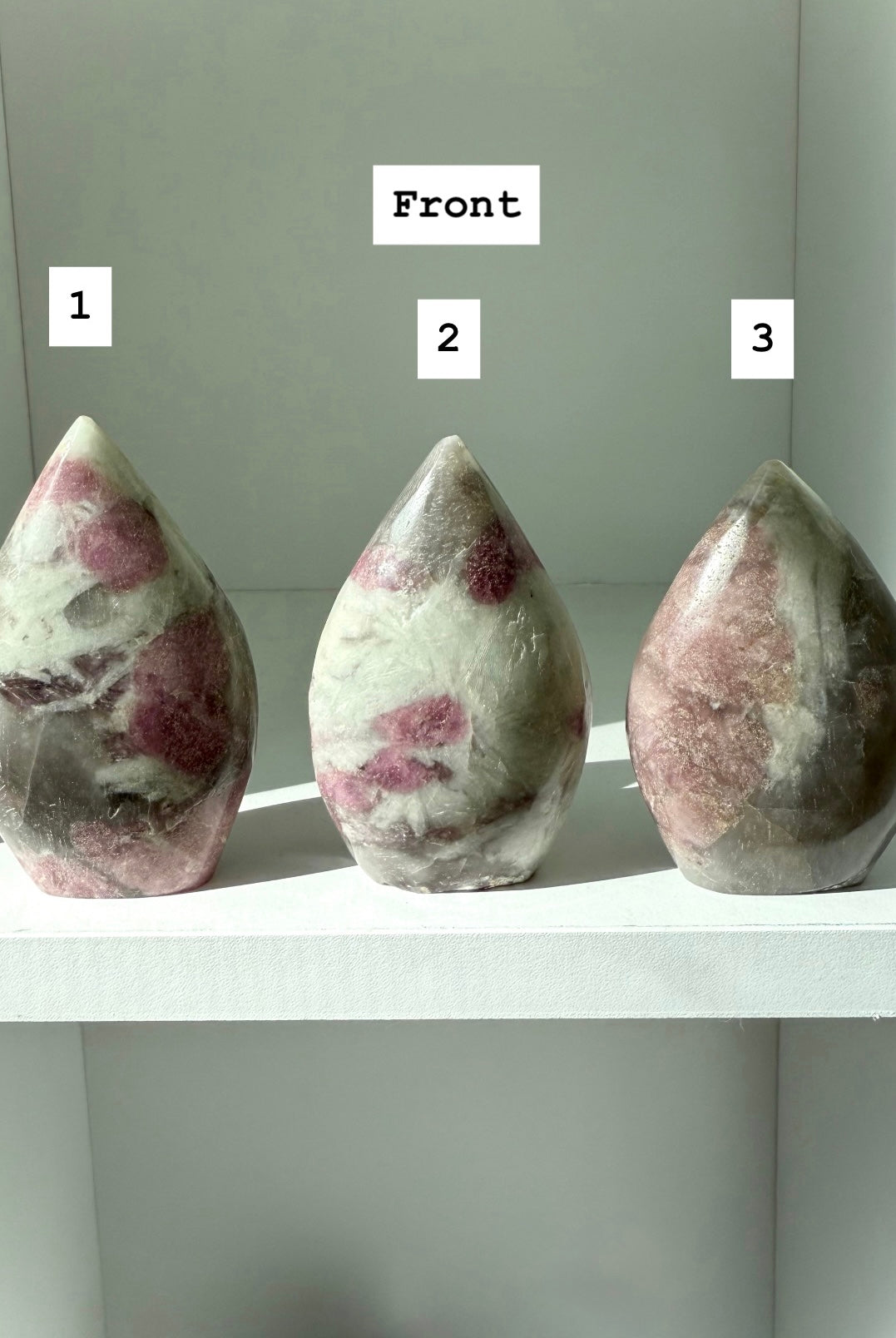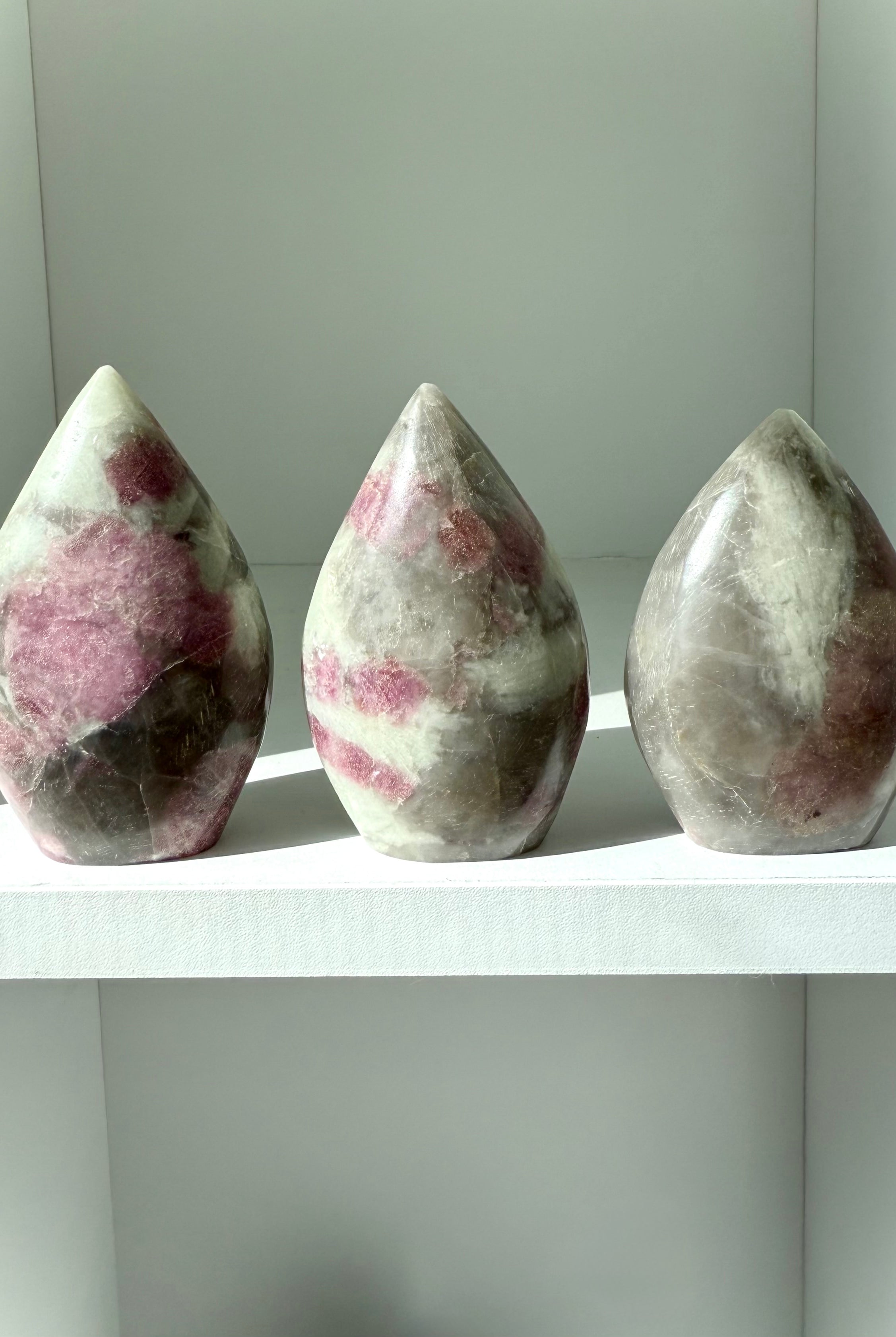 Illuminate your sacred space with the radiant beauty of Crystal Freeforms and Flame Carvings. These unique specimens are shaped to highlight the natural magic of each stone — from flame-like points that seem to dance with light to angular faceted freeforms and rounded, organic shapes with flat bases for elegant display.