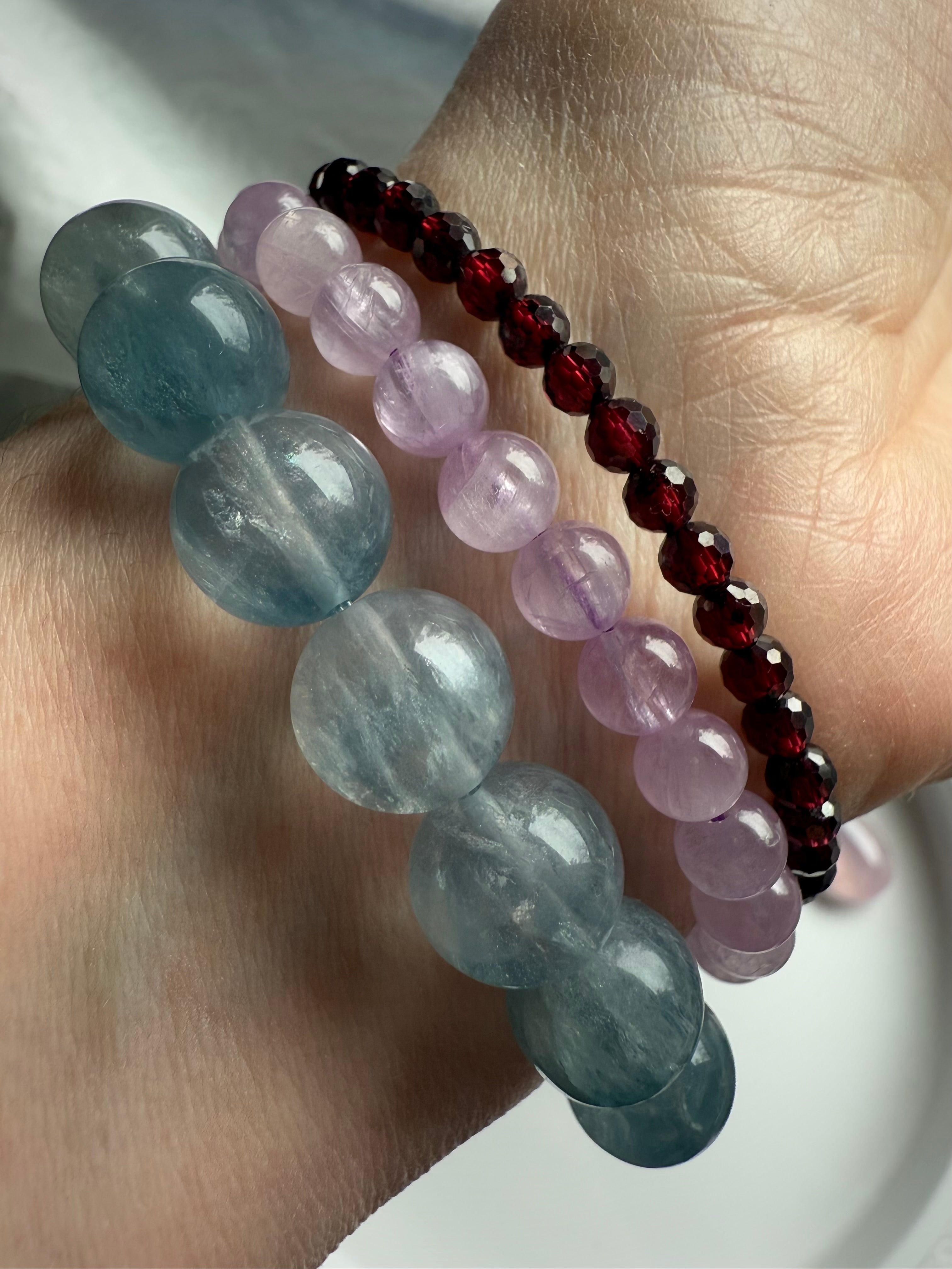 Wear your Lilac Purple Kunzite Bracelet when you need a dose of joyful, loving energy. These Kunzite Bracelets are made with high quality transparent pink-purple hued beads have a gemmy shimmery translucence + a soft, heart-centered energy.