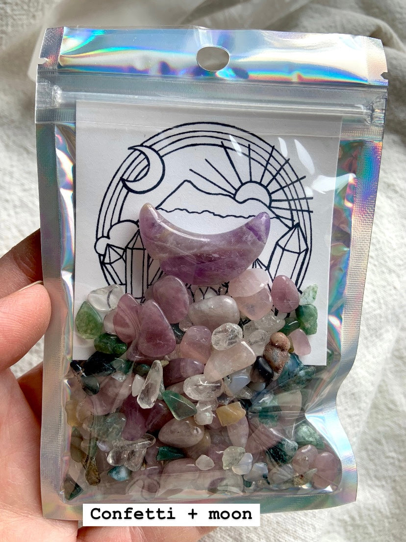 Bring the magic of the cosmos into your sacred space with our Moon + Stars Collection — featuring mini Rose Quartz moons, star carvings, and over 30 crystal varieties shaped into celestial forms. From pocket-sized minis and moon-shaped palm stones to one-of-a-kind statement pieces, these celestial crystals support spiritual rituals, altar décor, meditation, tarot spreads, and oracle card readings for love, healing, and energy alignment.