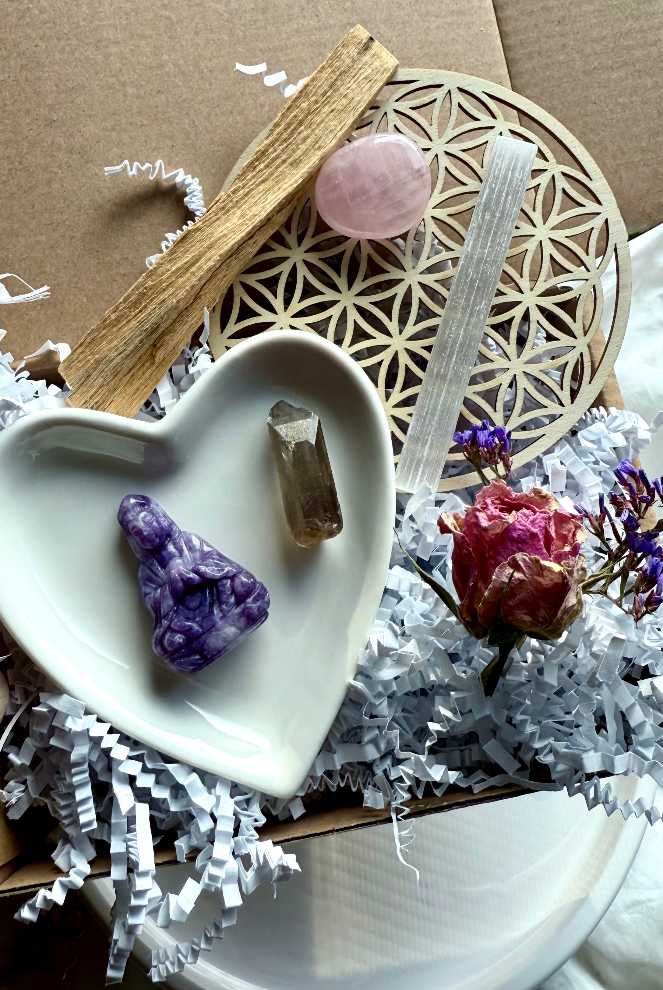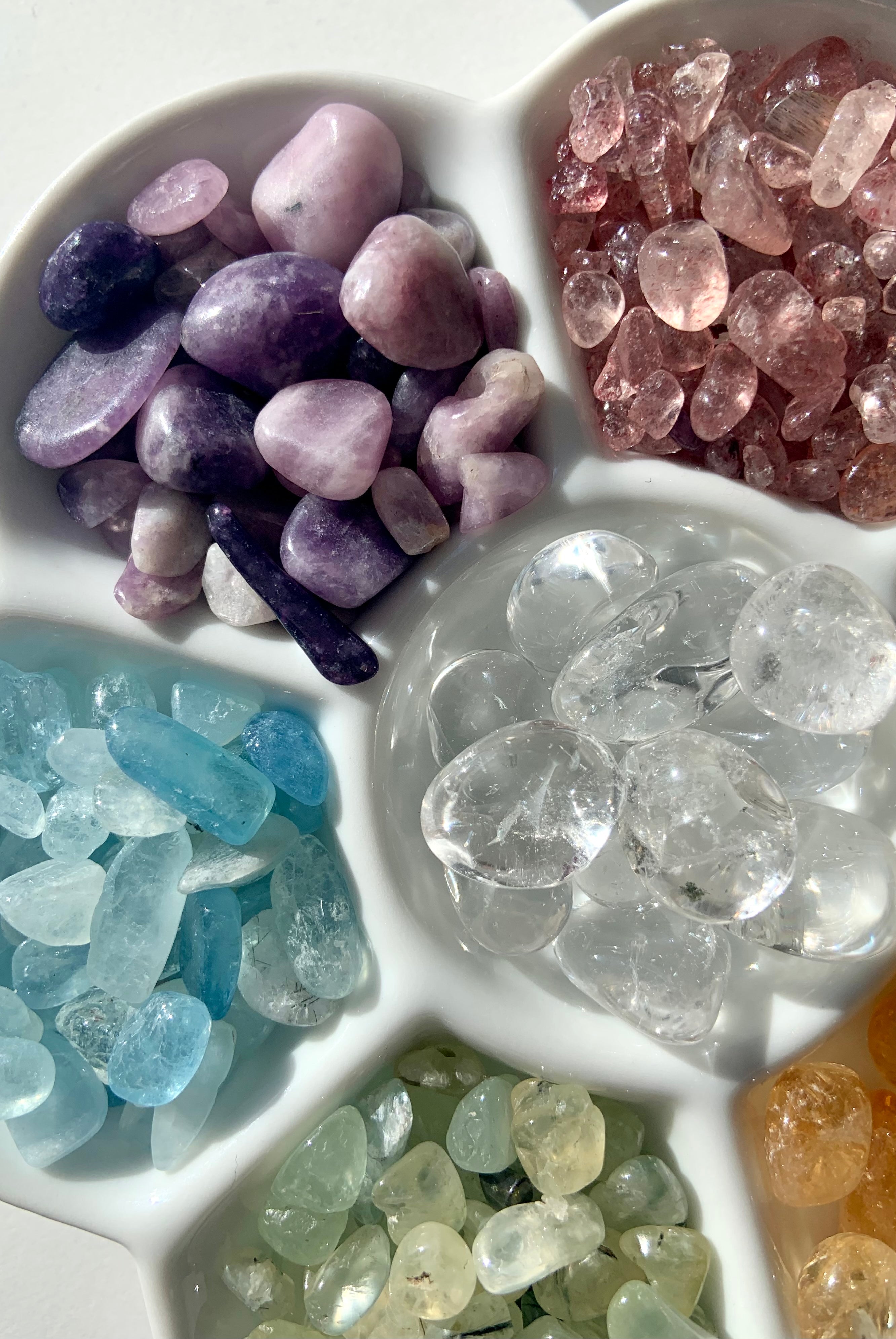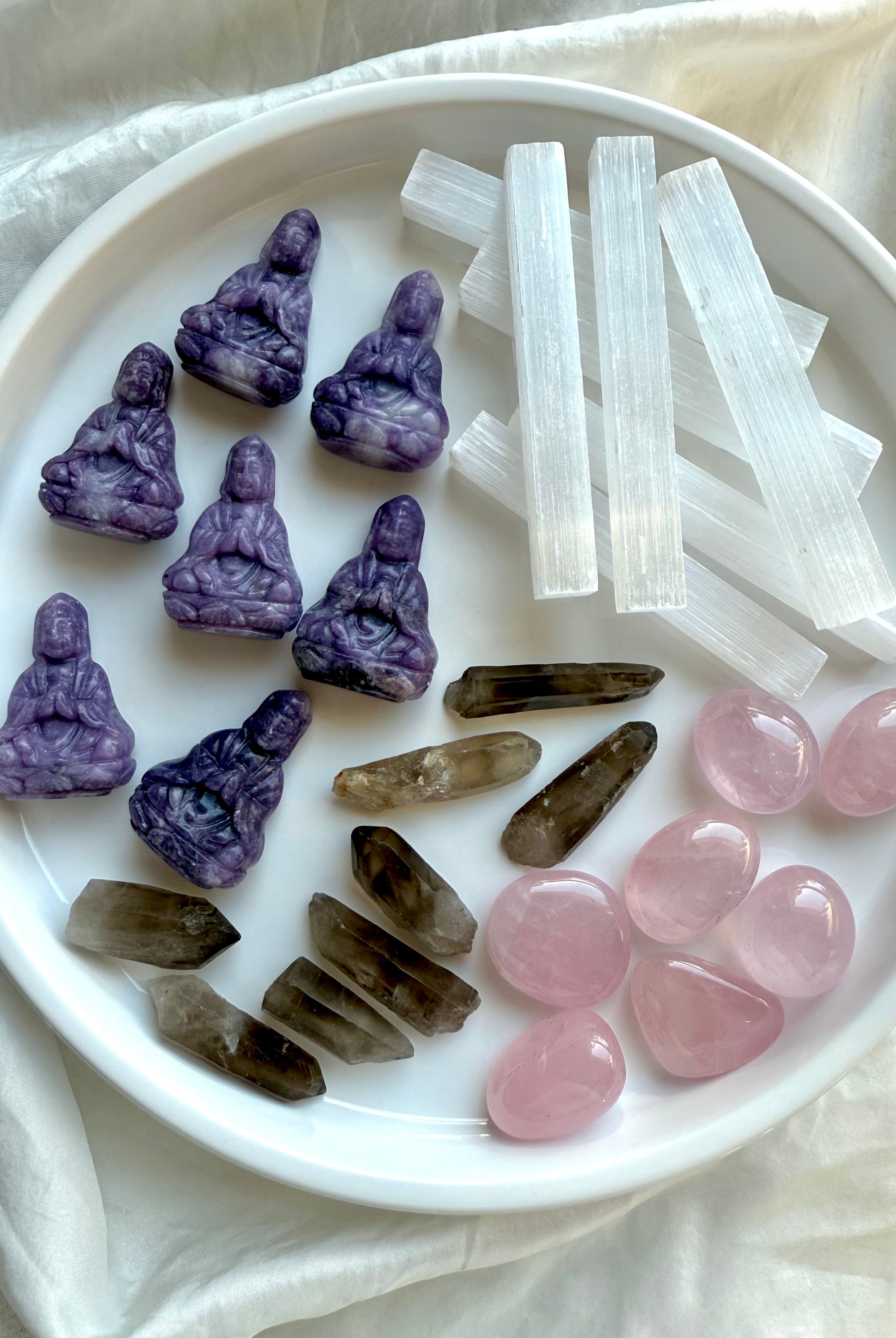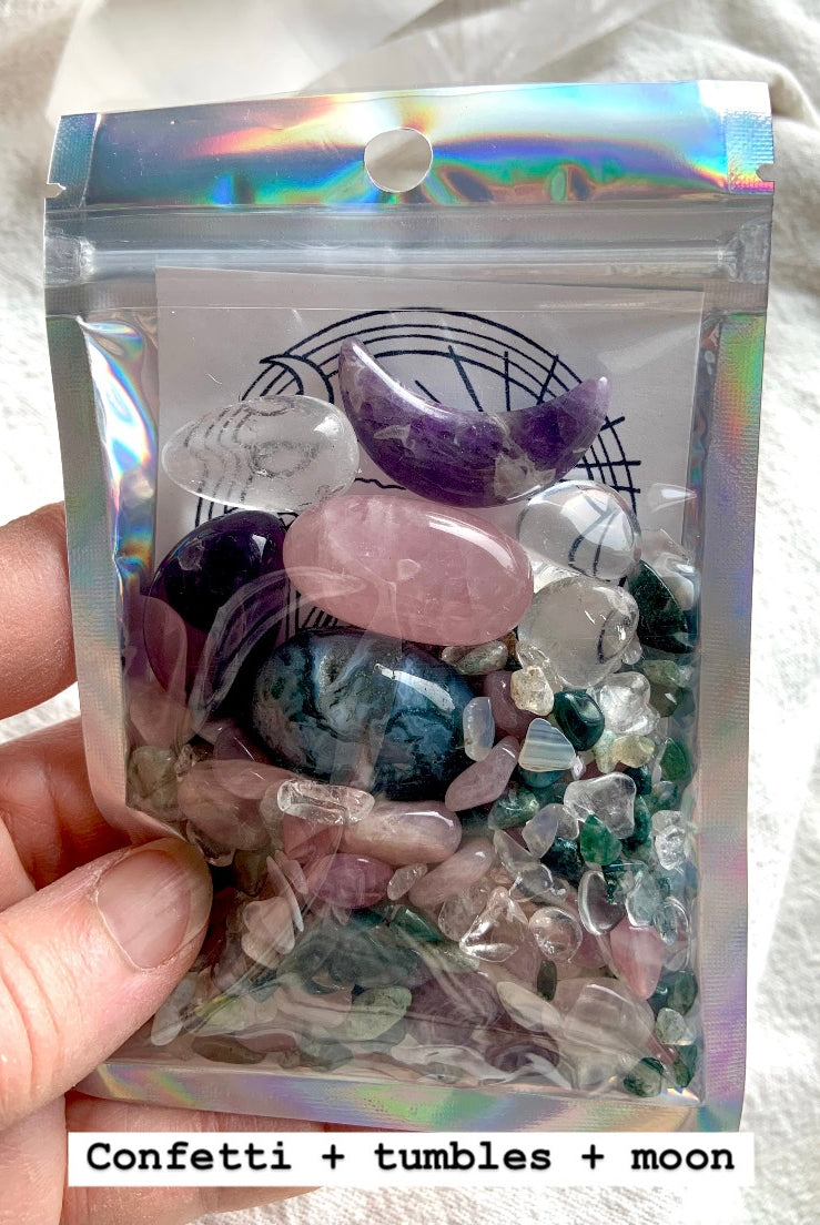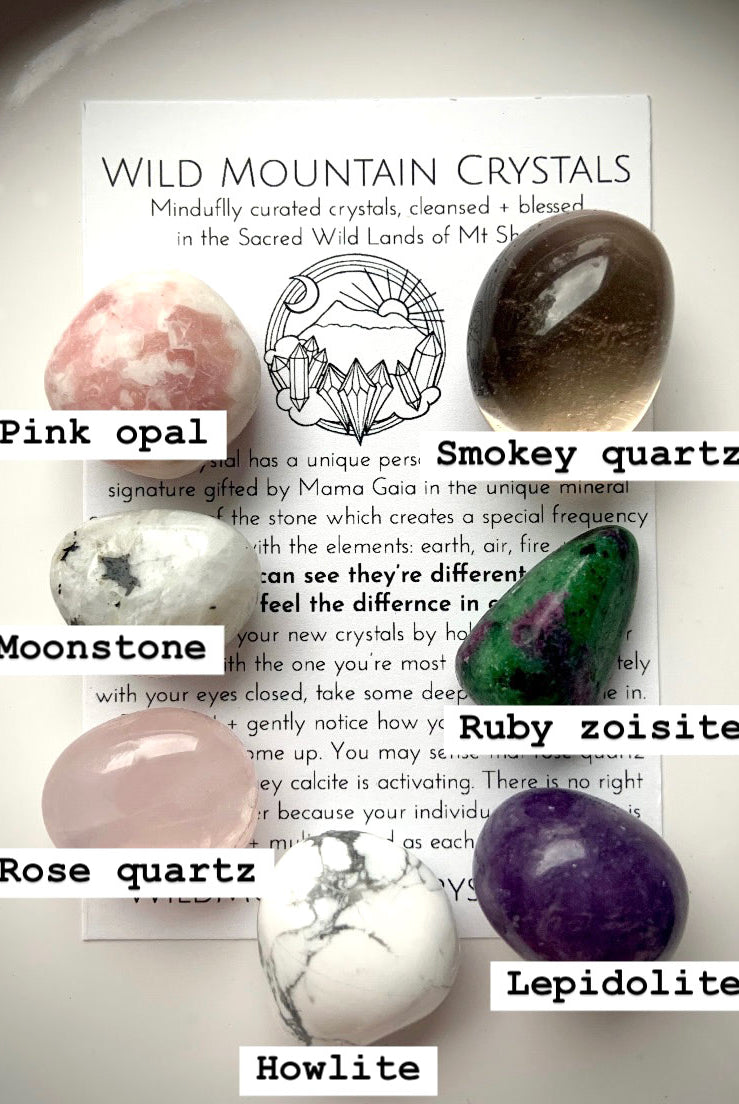 Thoughtfully curated crystal gift sets help you expand your crystal collection within a theme or make a beautiful + meaningful gift. Our crystal gift sets come beautifully presented with an info card on the crystal healing properties + an easy "get to know your crystal" method showing you how you can connect with your new crystals + work with their unique healing energy.