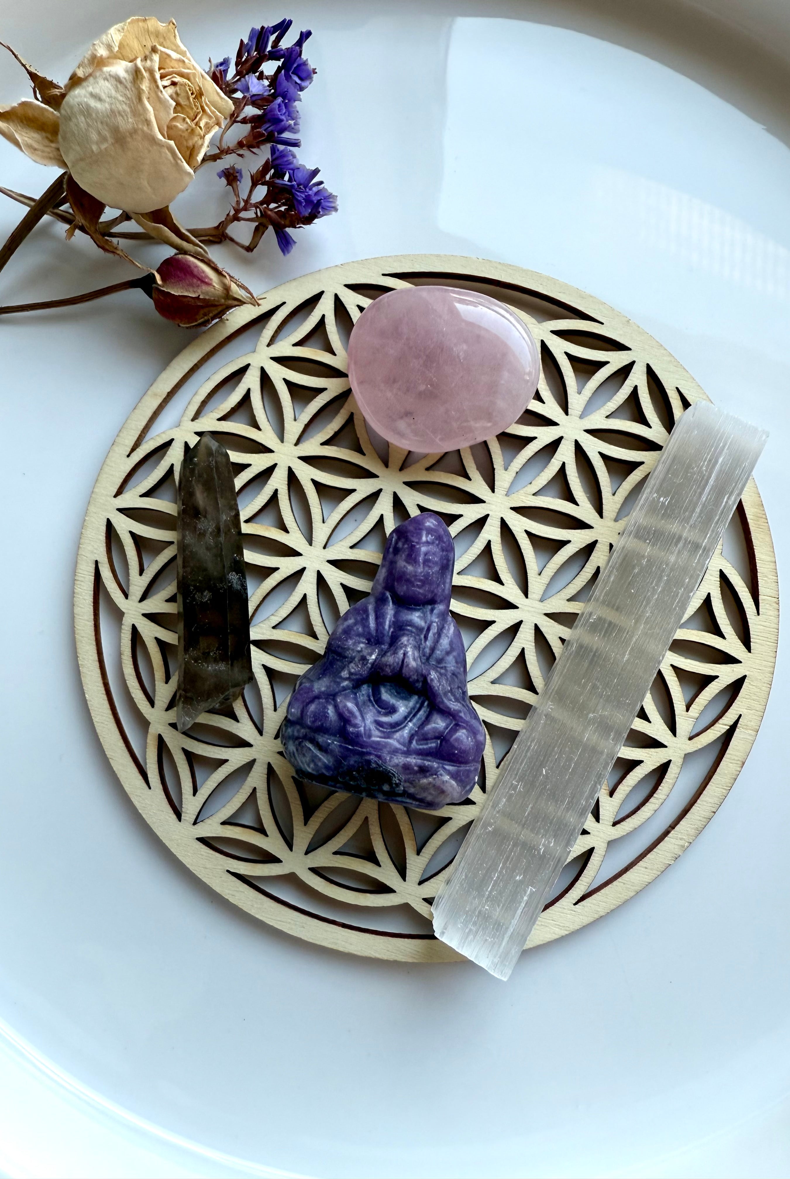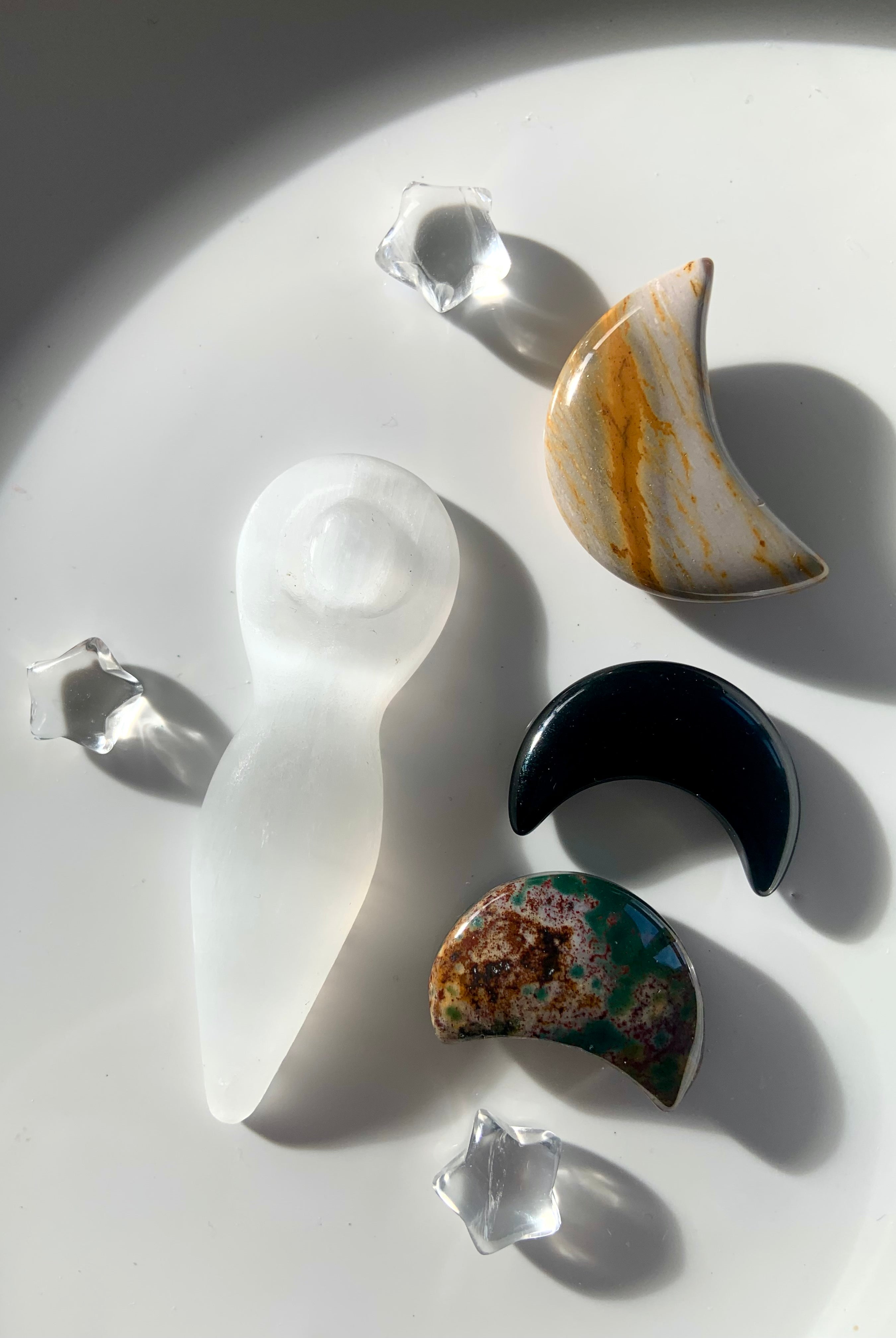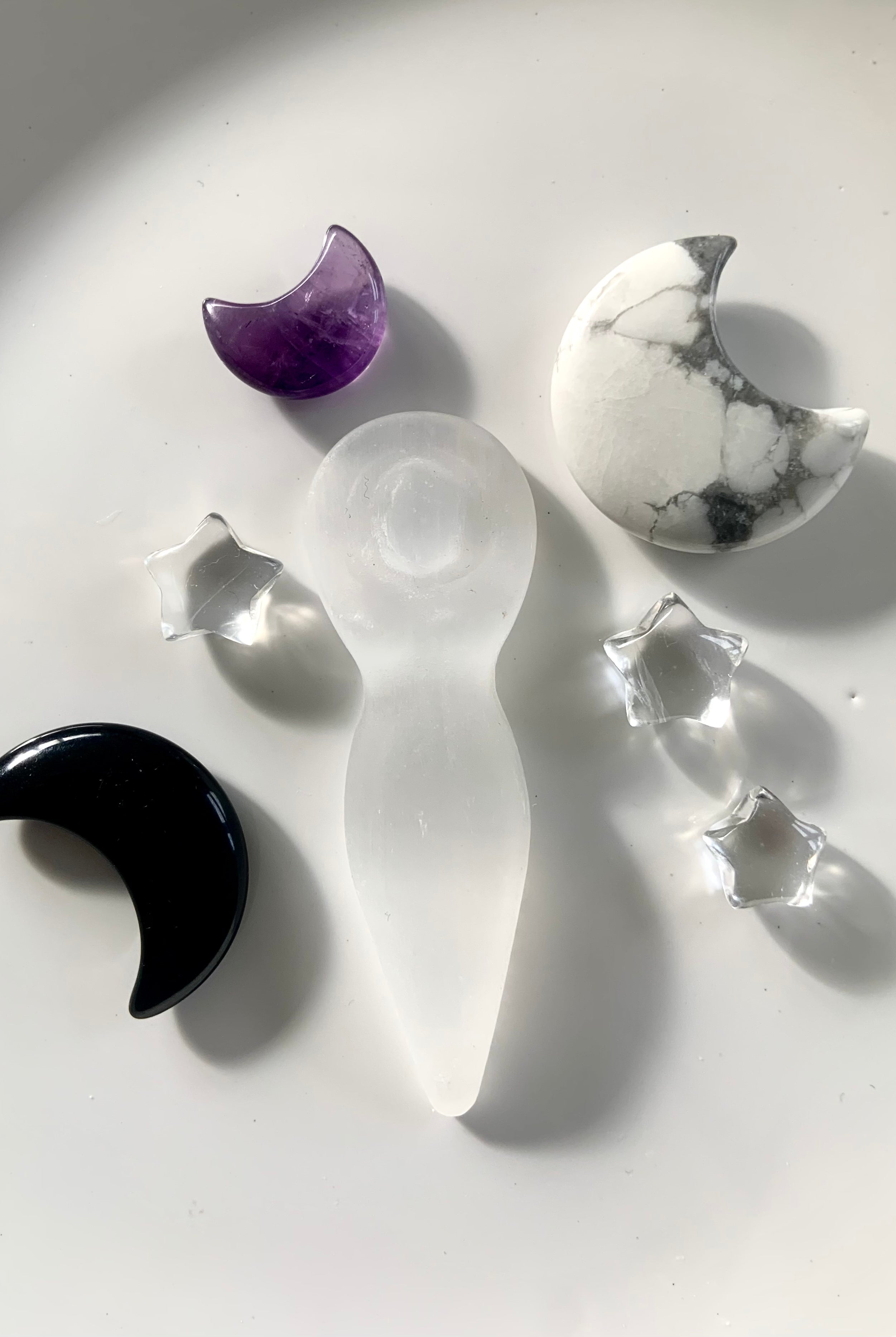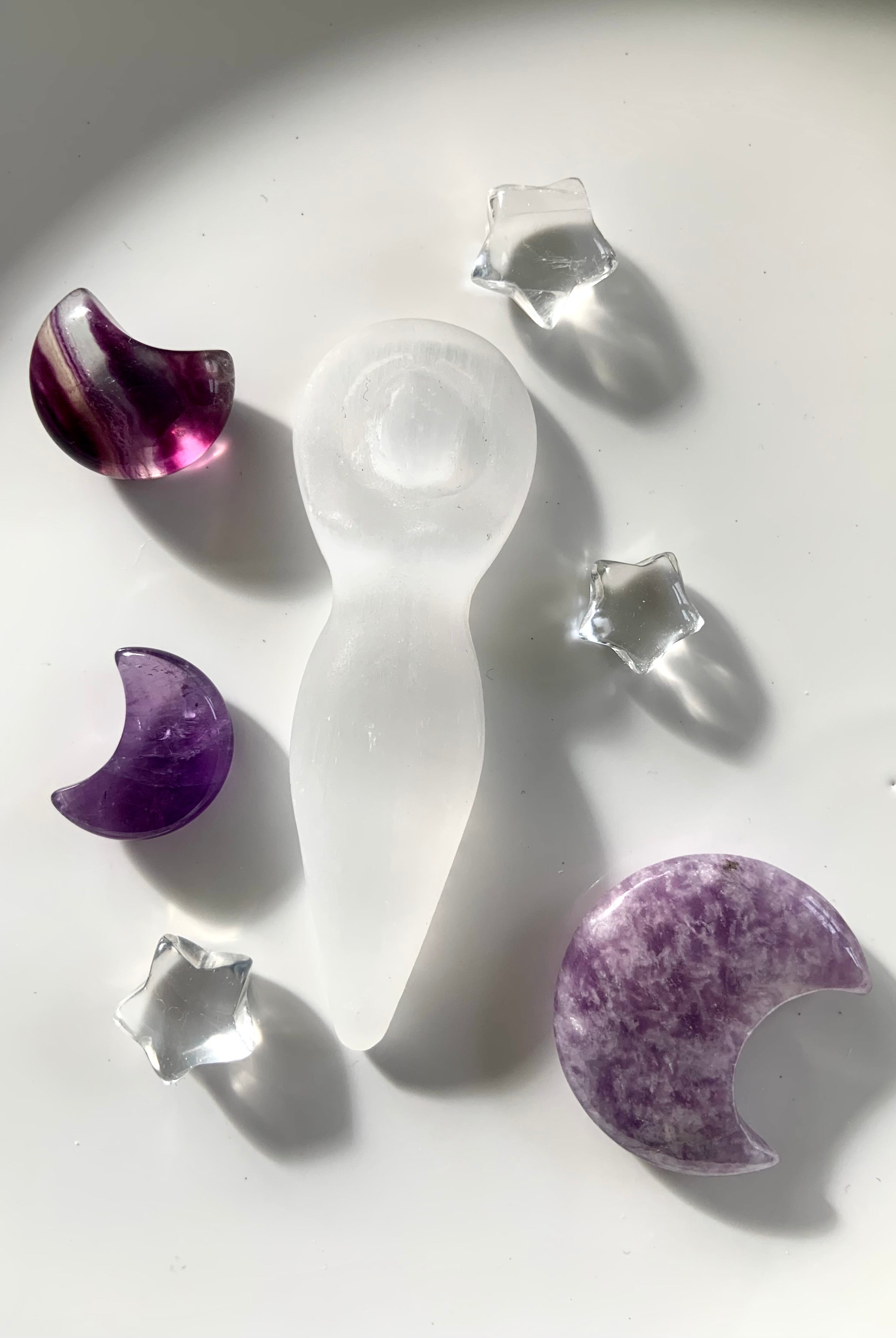 Thoughtfully curated crystal gift sets help you expand your crystal collection within a theme or make a beautiful + meaningful gift. Our crystal gift sets come beautifully presented with an info card on the crystal healing properties + an easy "get to know your crystal" method showing you how you can connect with your new crystals + work with their unique healing energy.
