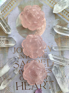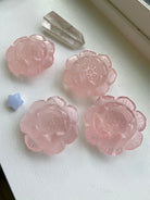 Luminous Rose Quartz Lotus carvings have arrived! These crystal lotus flowers are carved from translucent rose quartz crystal + they capture the light beautifully. These crystal flower carvings have pretty details + the flower petals are shaped so they can hold a mini sphere too.
