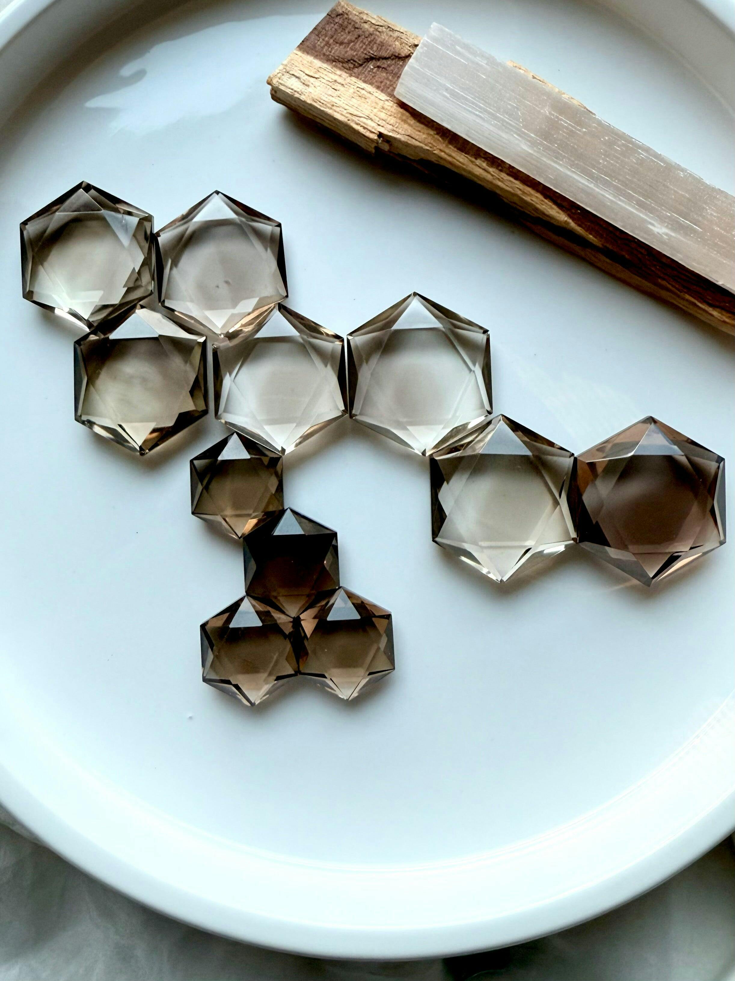 Smoky Quartz Hexagons – Faceted Crystals for Root Chakra Healing