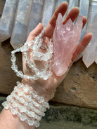 Wrap your wrist in Crystal Flowers + bring out your inner Goddess wearing this high vibrational crystal of clarity + spiritual growth. These pretty Clear Quartz Crystal beads are hand-carved in the shape of cherry blossoms!