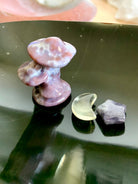 These hand carved mini crystal mushrooms are so magical + special!! Mushrooms are symbols of longevity + good luck in many different cultures. They have a long history in magic, fae + folklore. Mushrooms represent the unseen realms.