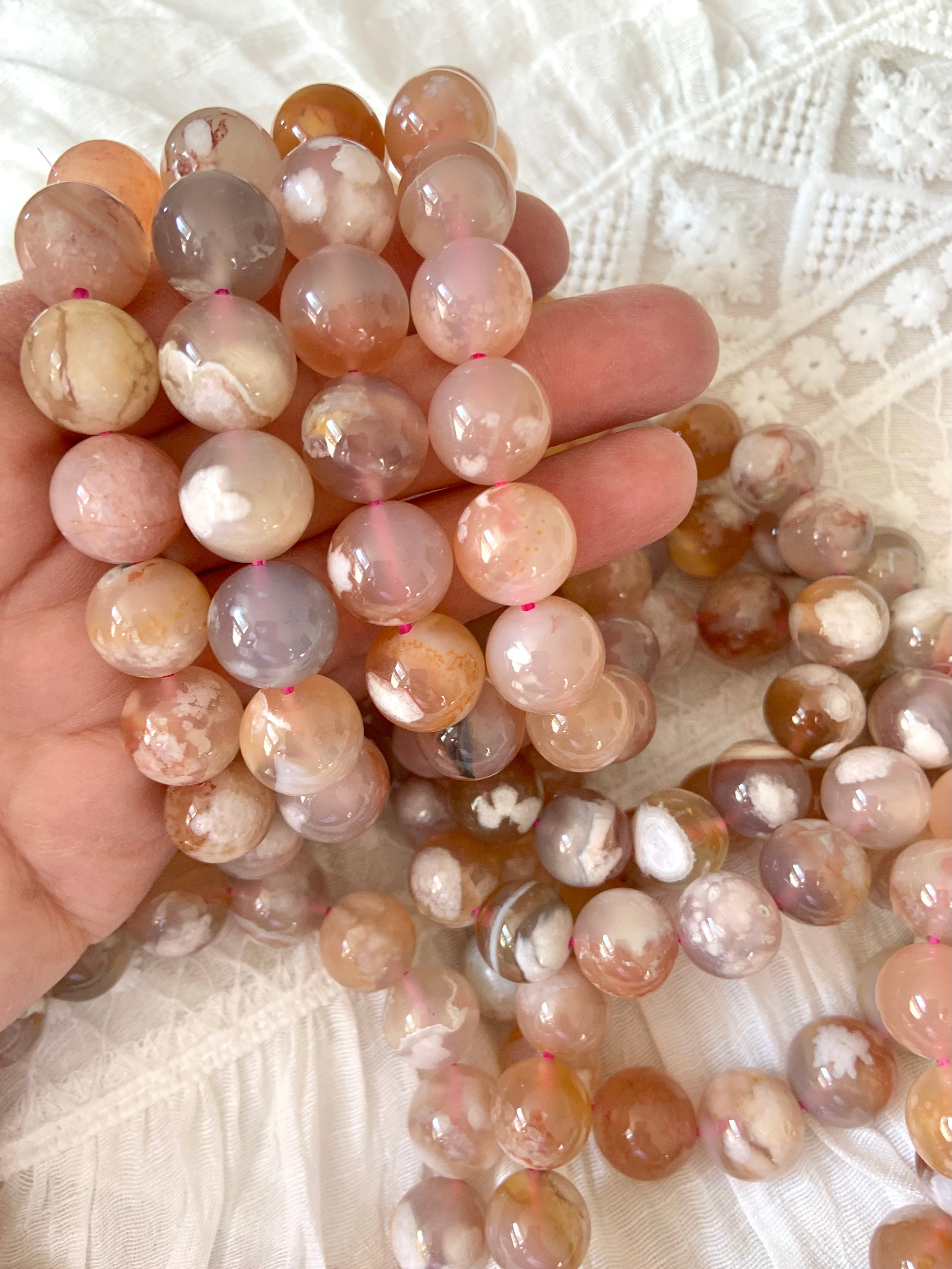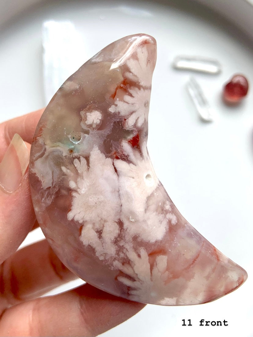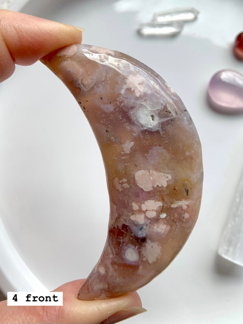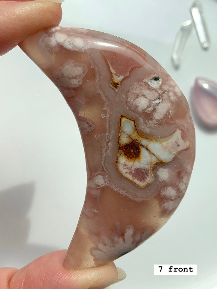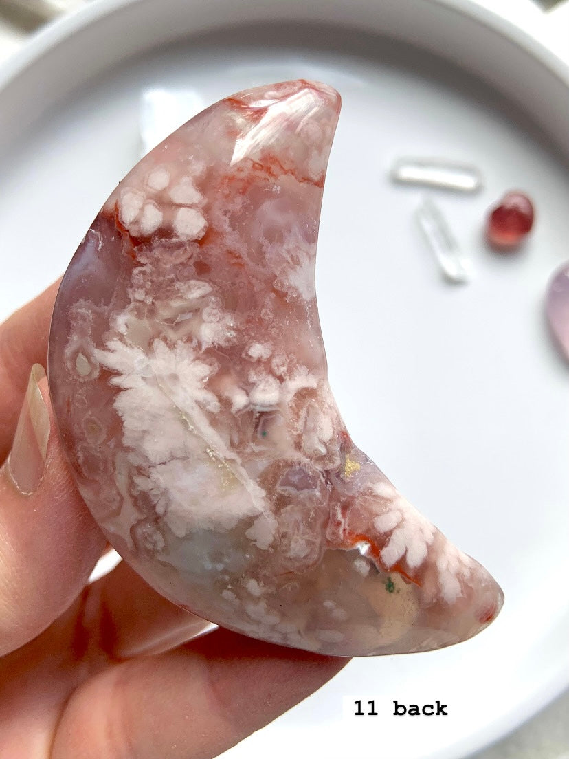 Flower Agate is a gentle yet powerful stone of personal growth, transformation, and blooming potential. With dreamy floral inclusions that resemble cherry blossoms, this heart-centered crystal connects to the Root and Heart Chakras—grounding your dreams while helping them take flight.