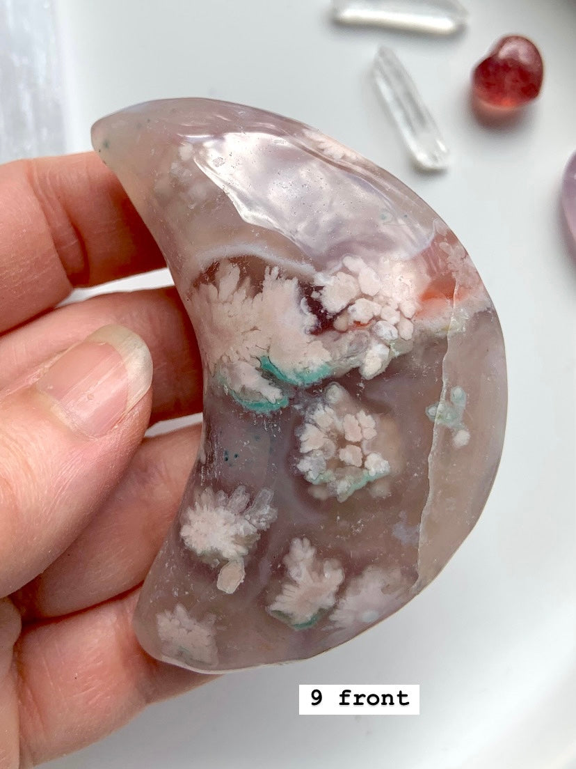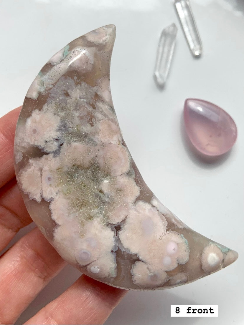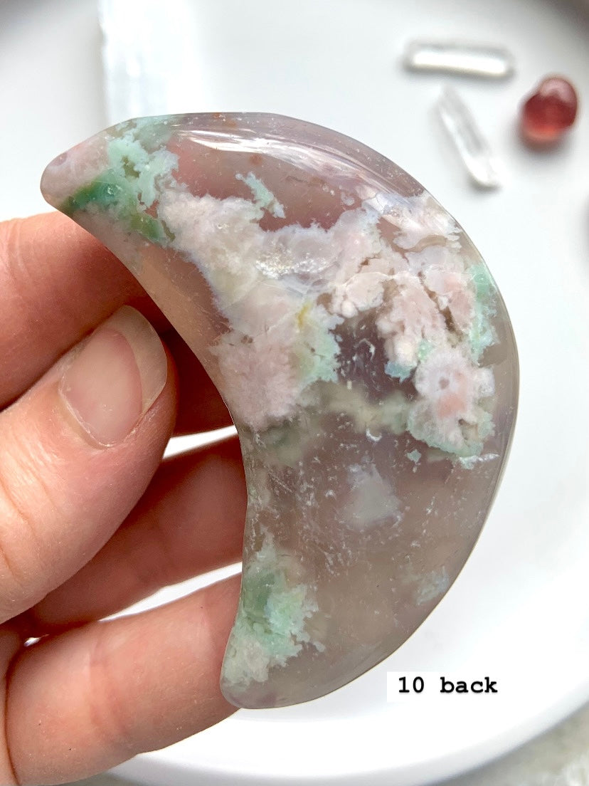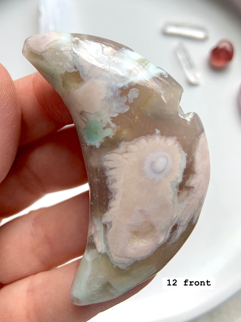 Flower Agate is a gentle yet powerful stone of personal growth, transformation, and blooming potential. With dreamy floral inclusions that resemble cherry blossoms, this heart-centered crystal connects to the Root and Heart Chakras—grounding your dreams while helping them take flight.