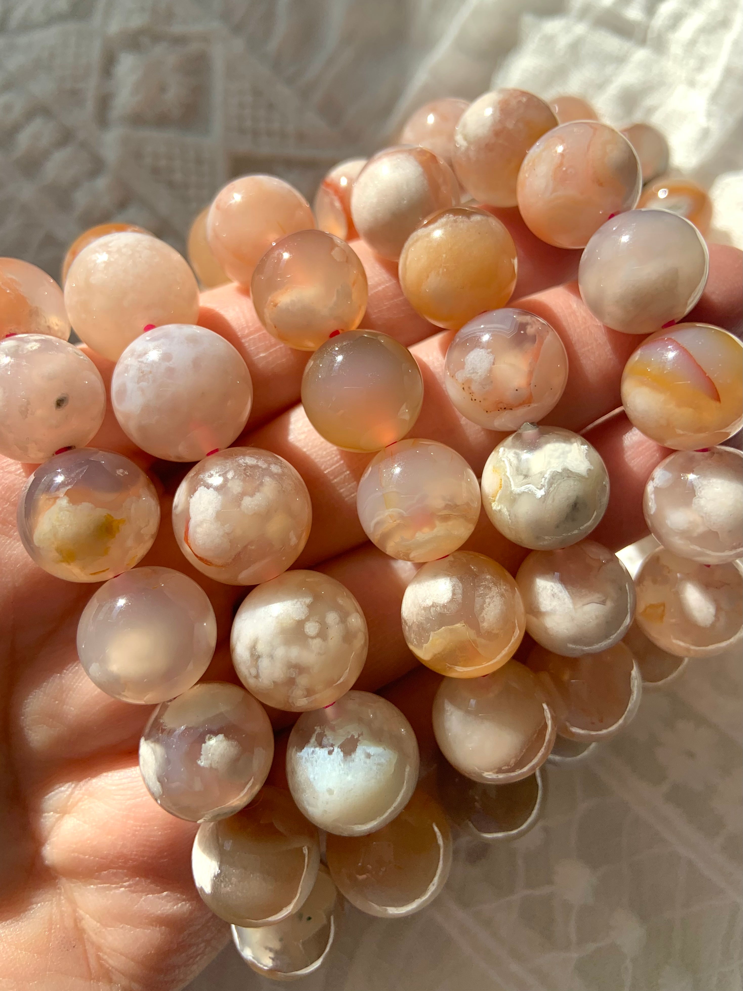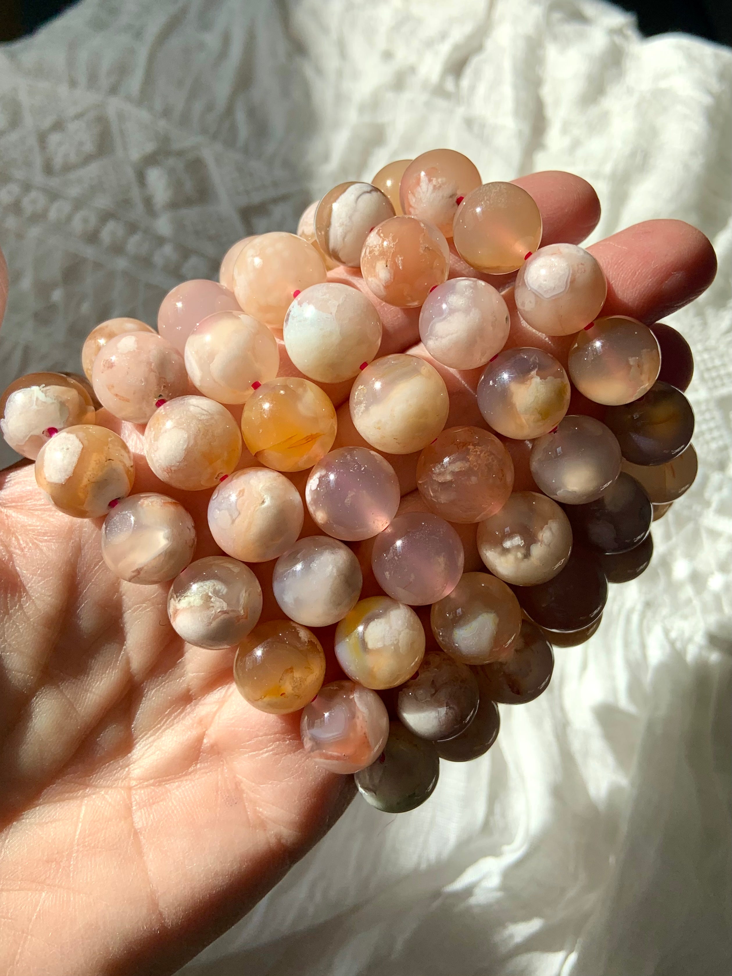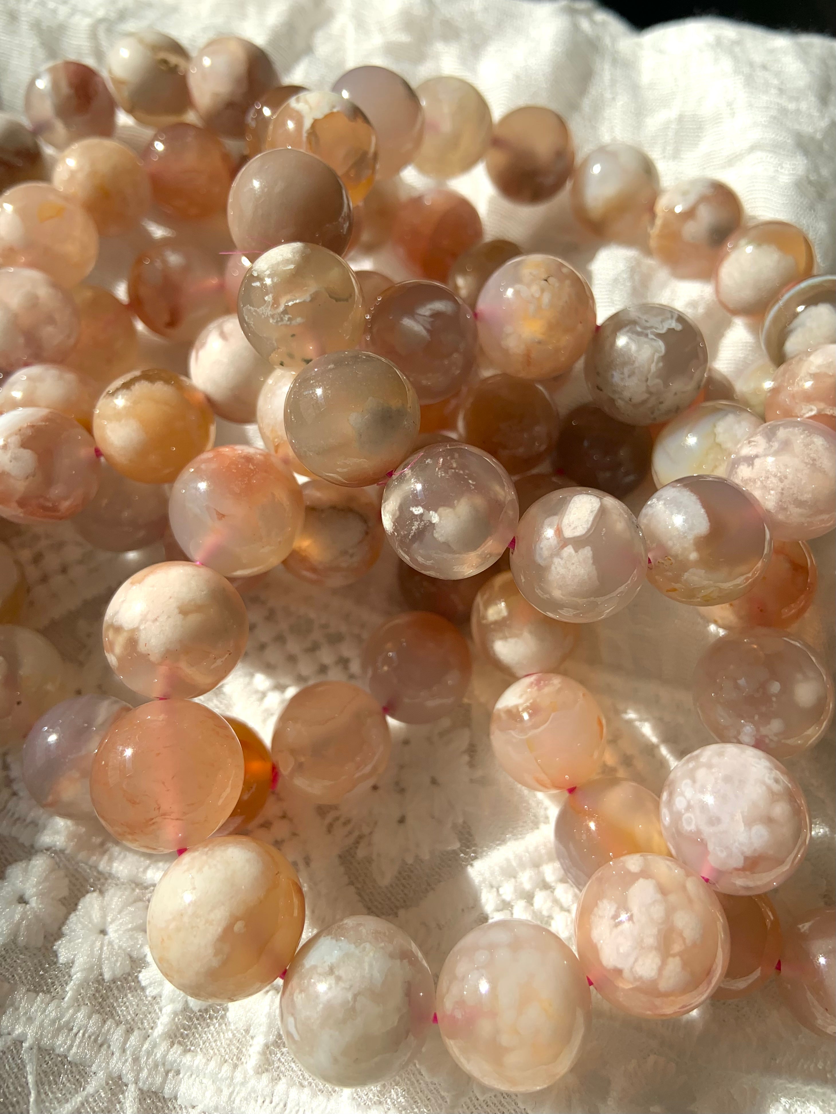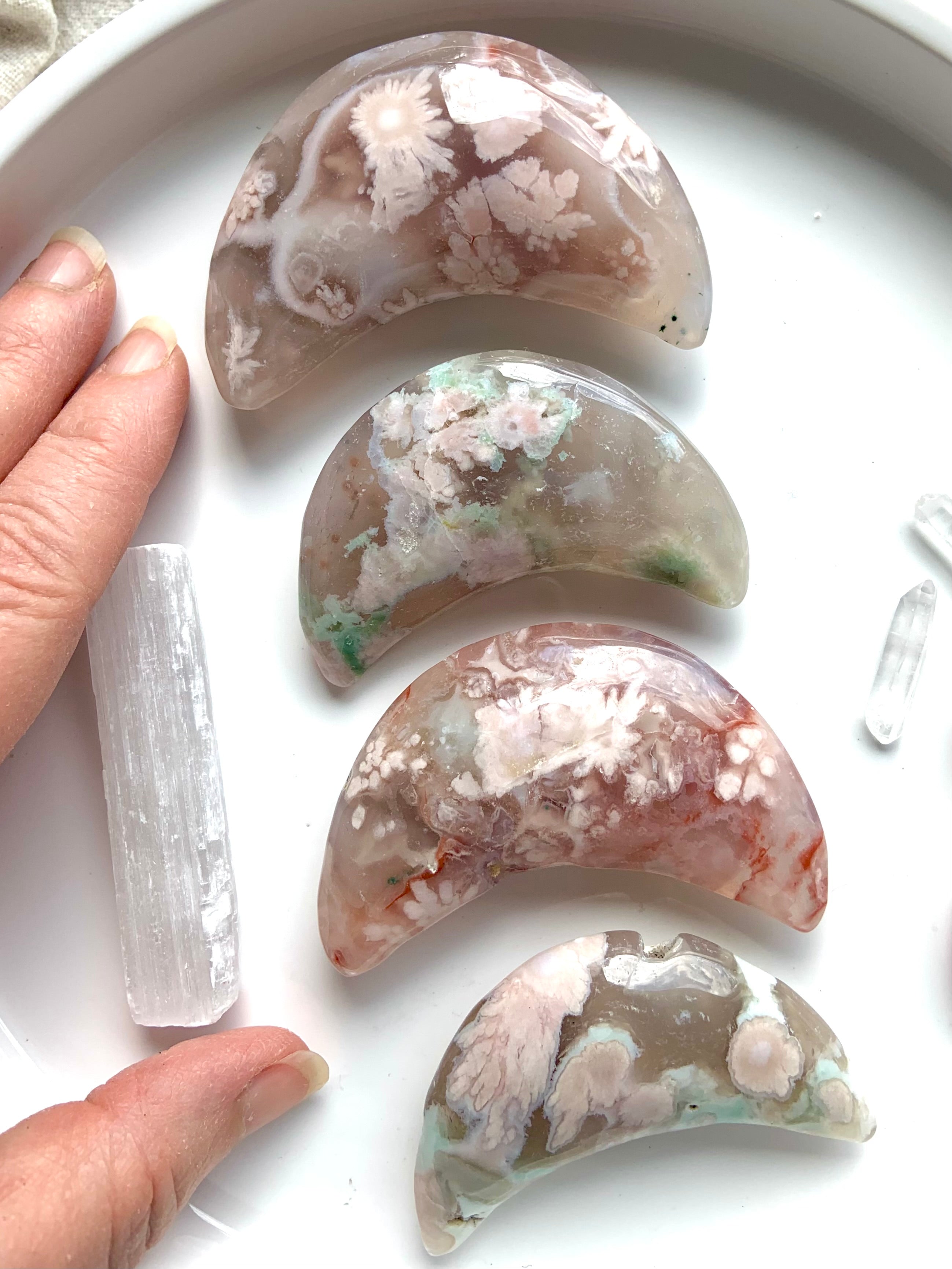 Flower Agate is a gentle yet powerful stone of personal growth, transformation, and blooming potential. With dreamy floral inclusions that resemble cherry blossoms, this heart-centered crystal connects to the Root and Heart Chakras—grounding your dreams while helping them take flight.