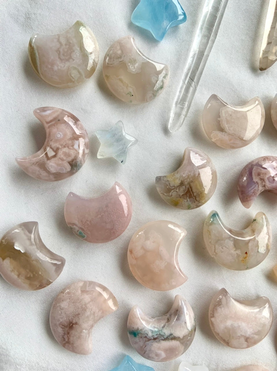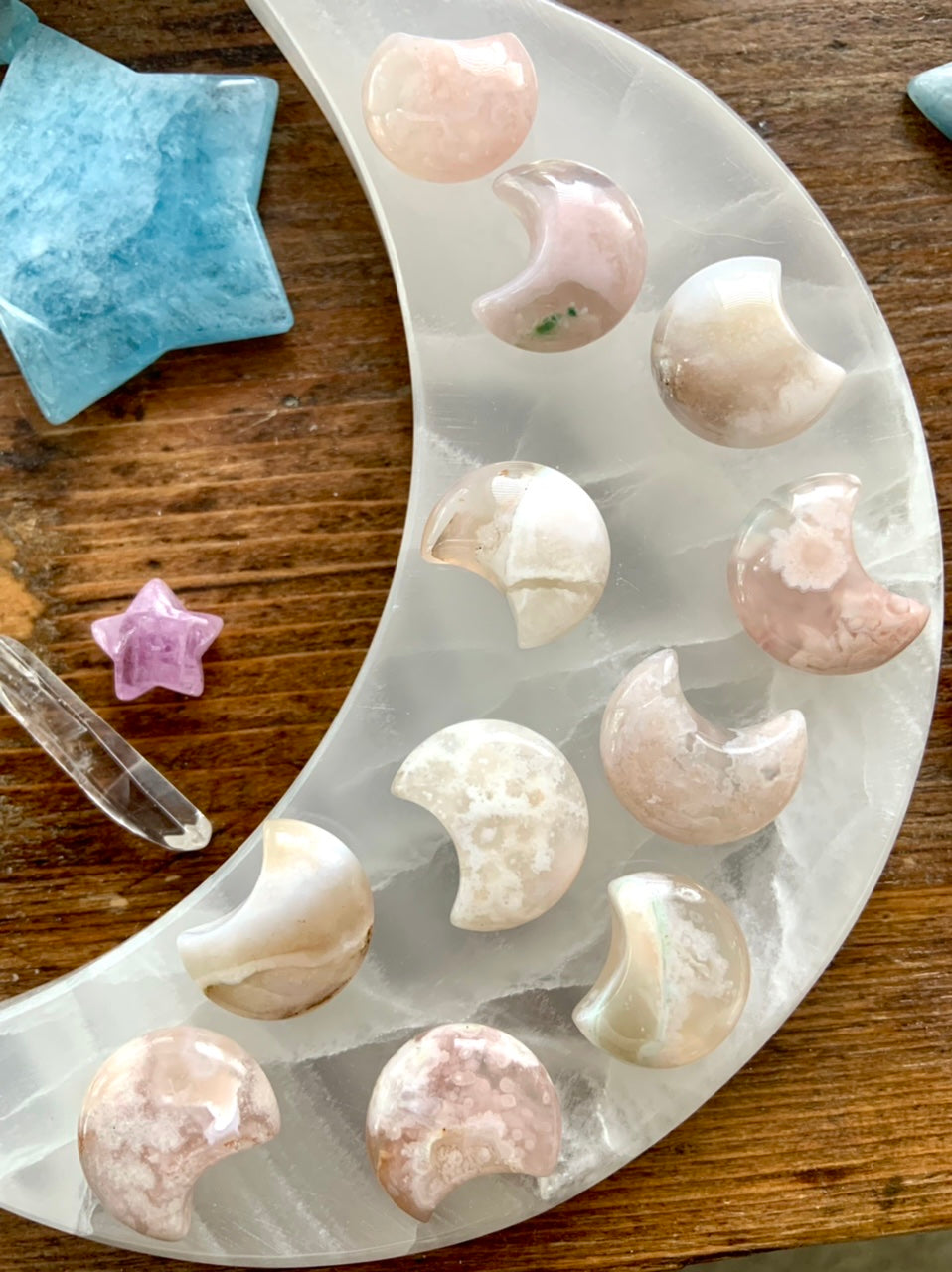 This collection includes moons, stars, hearts, palm stones, mushrooms, dragon carvings, and handmade jewelry designed to support heart healing, inspiration, and new beginnings.