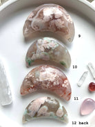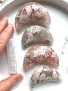 Hand Carved Flower Agate Crescent Moons
