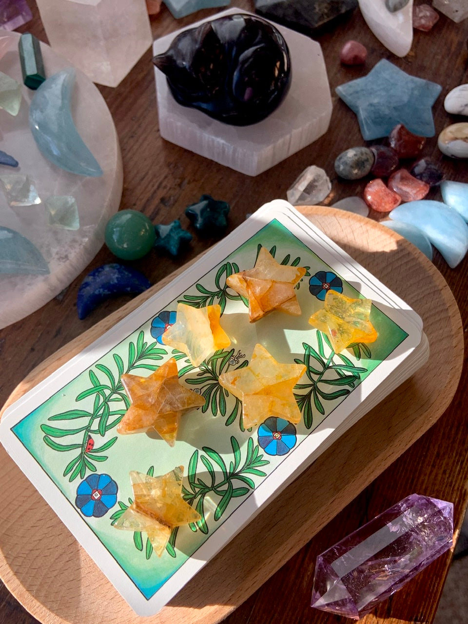 These gorgeous Golden Healer Crystal Stars are Master Healers with the ability to cleanse your auric field, filling it with golden healing light, restoring your body’s natural balance + harmony.