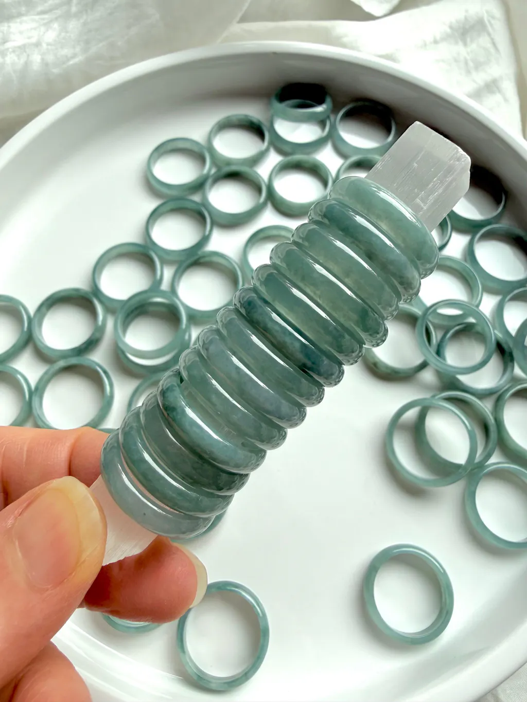Traditionally worn as symbols of protection, prosperity, and harmony, jade rings have been cherished for centuries. Blue Water Jade resonates with the Heart Chakra, encouraging emotional balance, inner peace, and grounded abundance.
