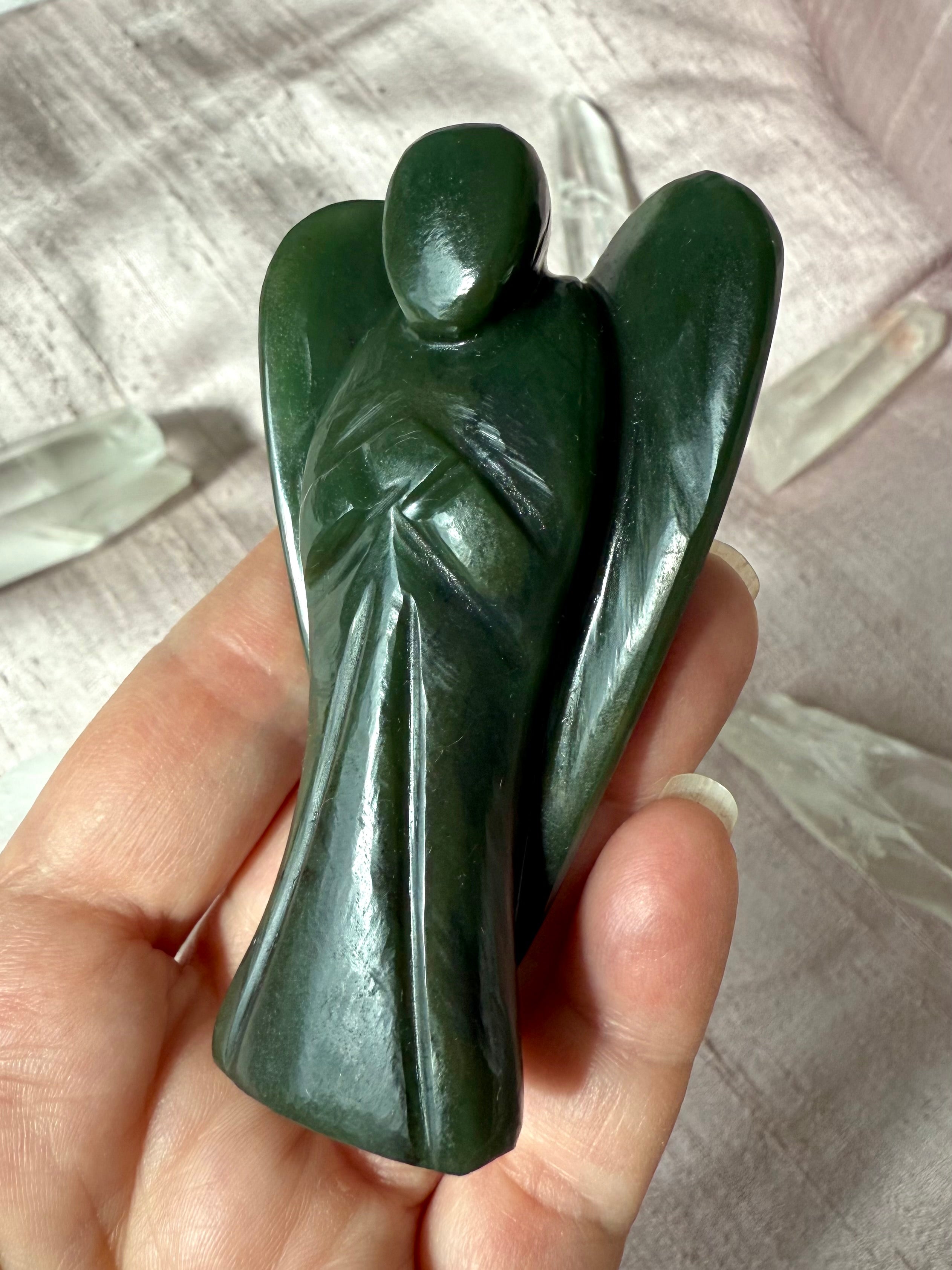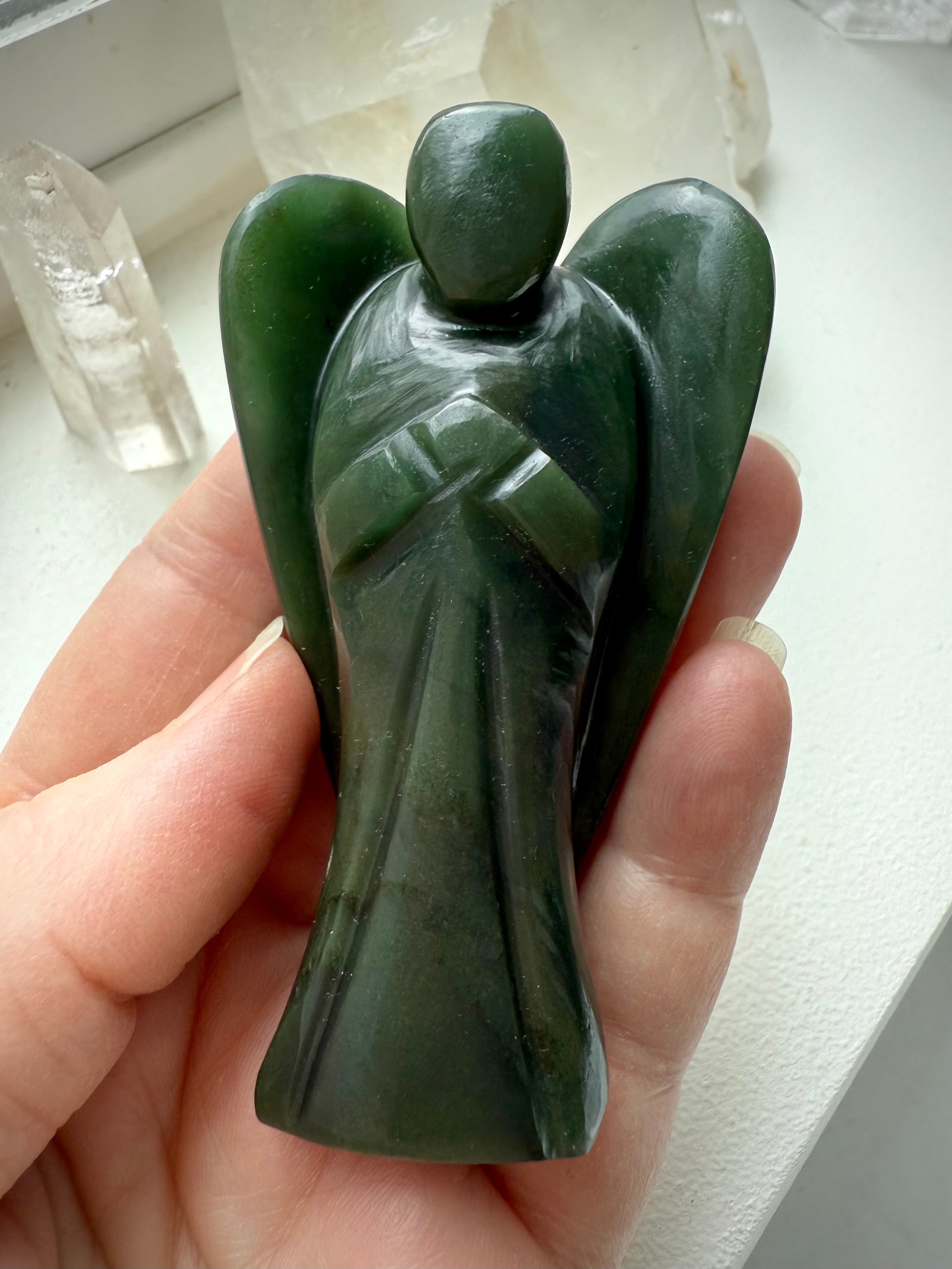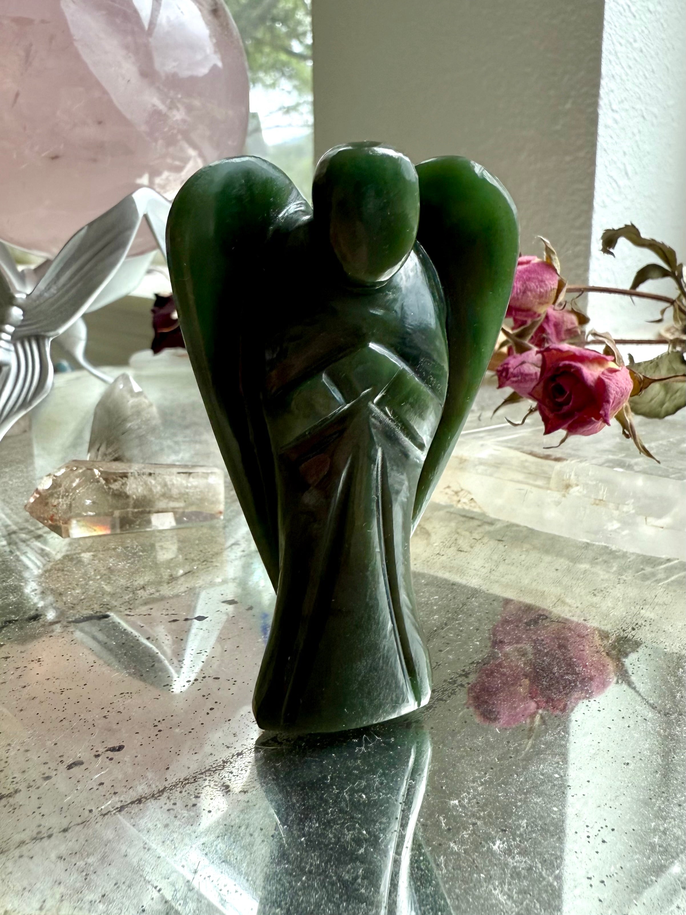 This collection includes one-of-a-kind Jade towers and carvings, white Jade Quan Yin and dragon statues, blue water Jade stars, and a rotating selection of bracelets, necklaces, and Nephrite Jade specimens. Whether you’re drawn to Jade for abundance rituals, heart-centered healing, or sacred decor, these timeless pieces bring grounding beauty to every space.