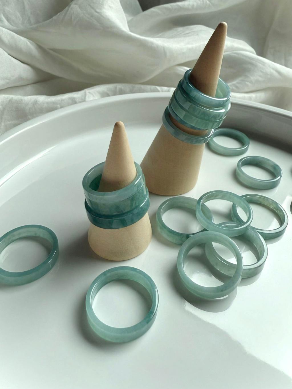 Slip on a Blue Water Jade Ring and connect with the calming energy of peace, protection, and prosperity. Carved from natural jadeite in serene sage and oceanic blue-green tones, each ring showcases subtle translucency and natural marbling — a timeless symbol of harmony and good fortune.