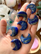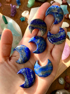 Add a beautiful Lapis Lazuli Crescent Moon to your crystal collection. These crystal moons are made from high quality Lapis Lazuli with gorgeous ribbons of pyrite + white calcite running through deep cobalt blue stone, reminiscent of the night sky + a powerful healing stone for your crystal healing toolkit.
