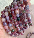 Wear your Green Unicorn Stone Bracelet to support emotional healing, ease heartache, and calm anxious thoughts. This serene crystal โ sometimes called Watermelon Tourmaline in Lepidolite โ is a naturally occurring combination stone made up of Green + Pink Tourmaline, Lepidolite, Smokey Quartz, and Cleavelandite.