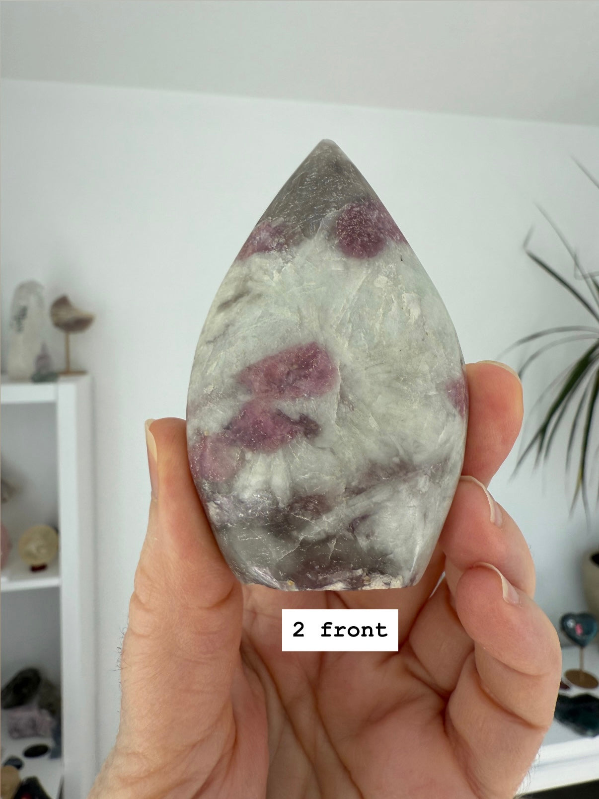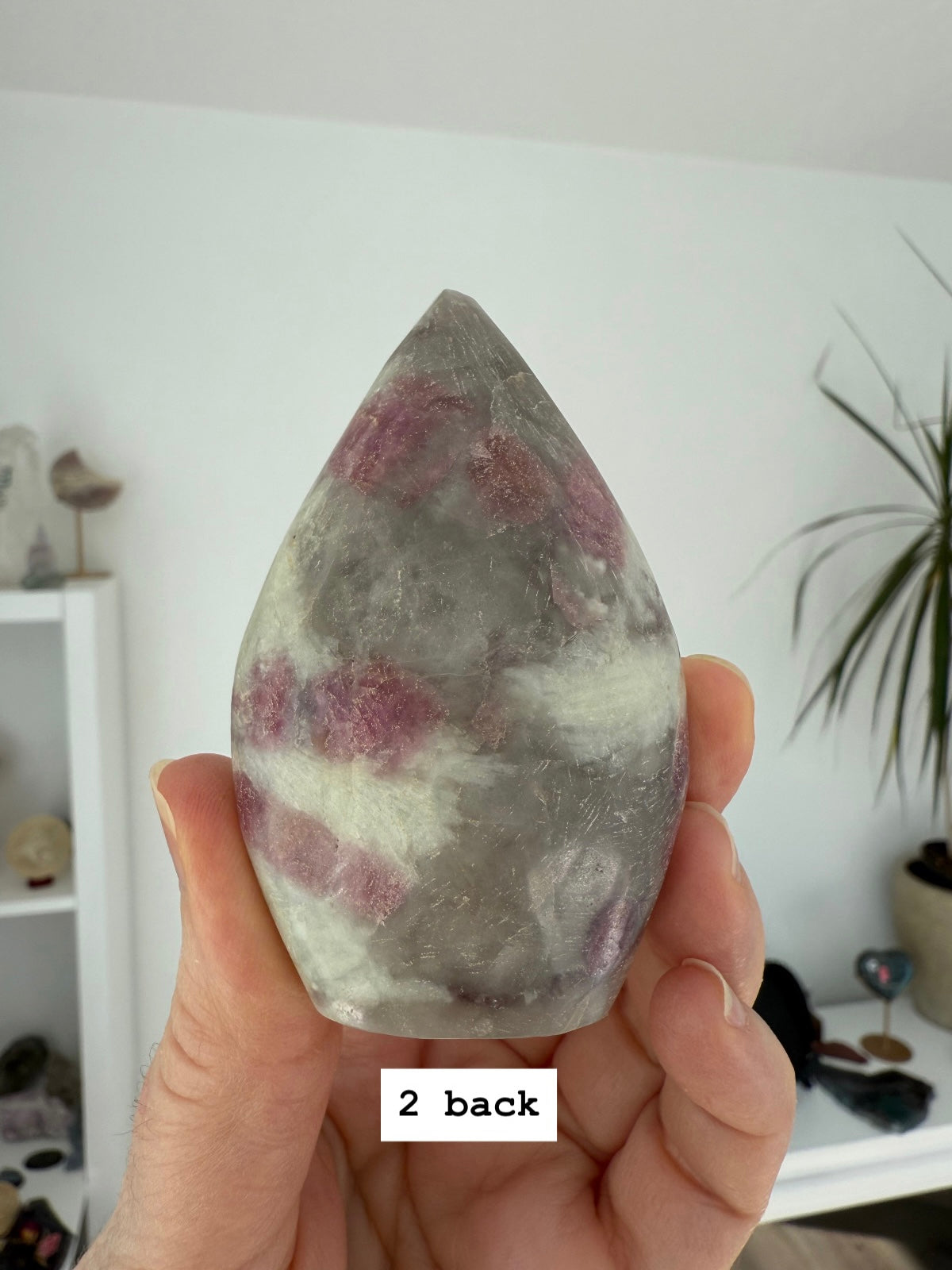 These stones are natural and ethically sourced from Madagascar. Each flame is individually polished and inspected for energy, quality, and beauty. Variations in color, pattern, and form are part of the crystal’s unique nature.