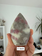 Unicorn Stone is a naturally occurring pegmatite combination crystal, featuring a unique mix of Pink Tourmaline, purple Lepidolite, Smokey Quartz, and white Cleavelandite. Found in limited deposits, each piece displays its own mineral landscape of colors and patterns — no two are ever alike.