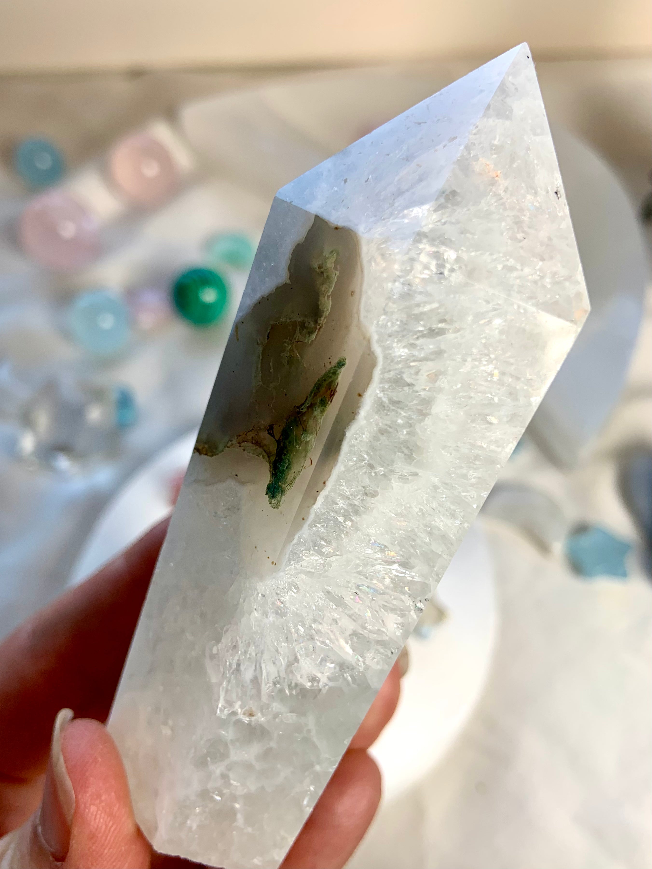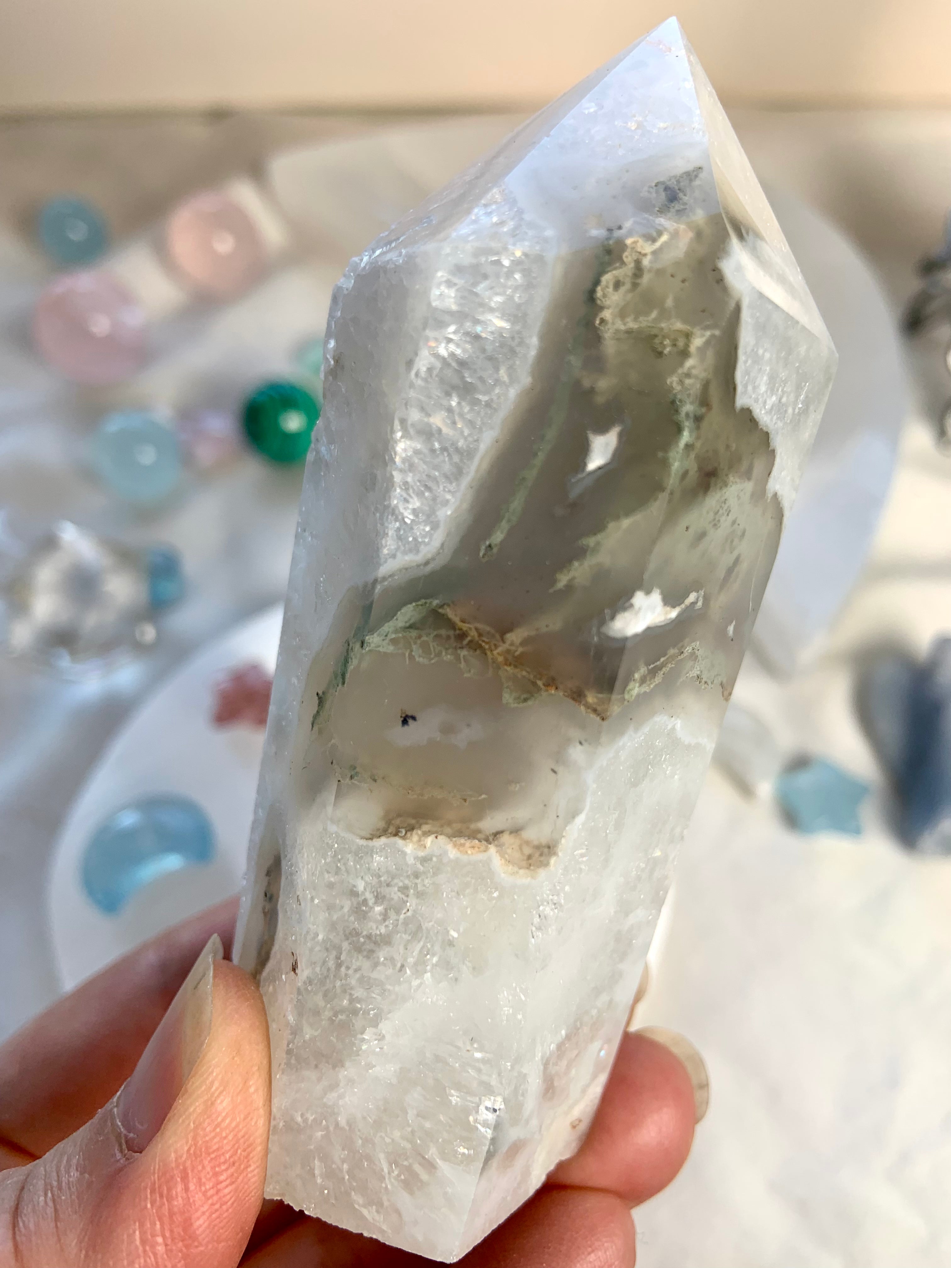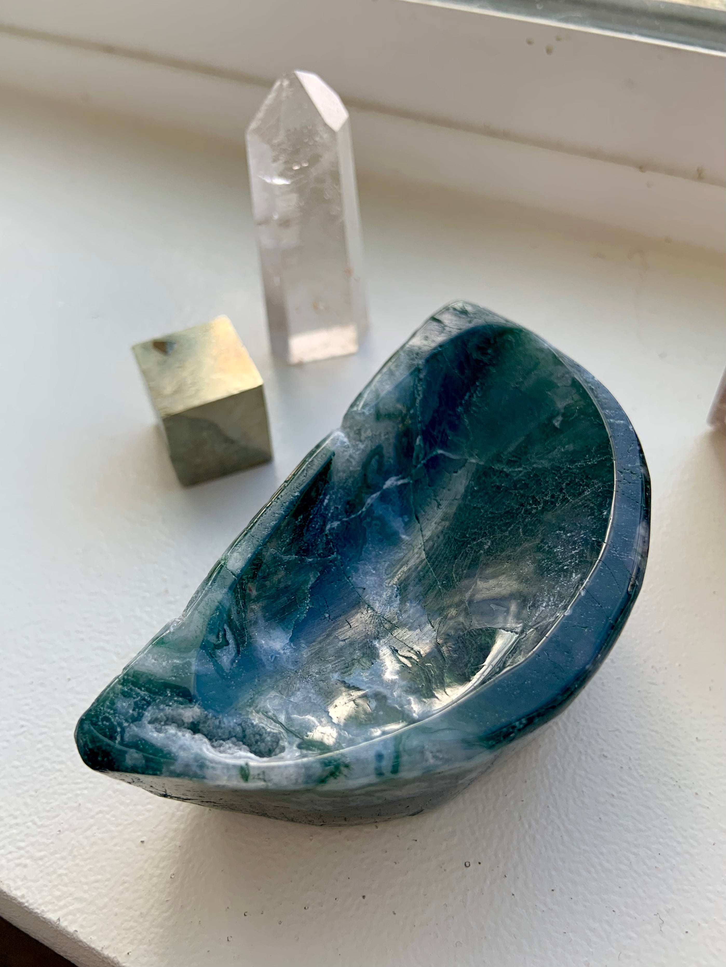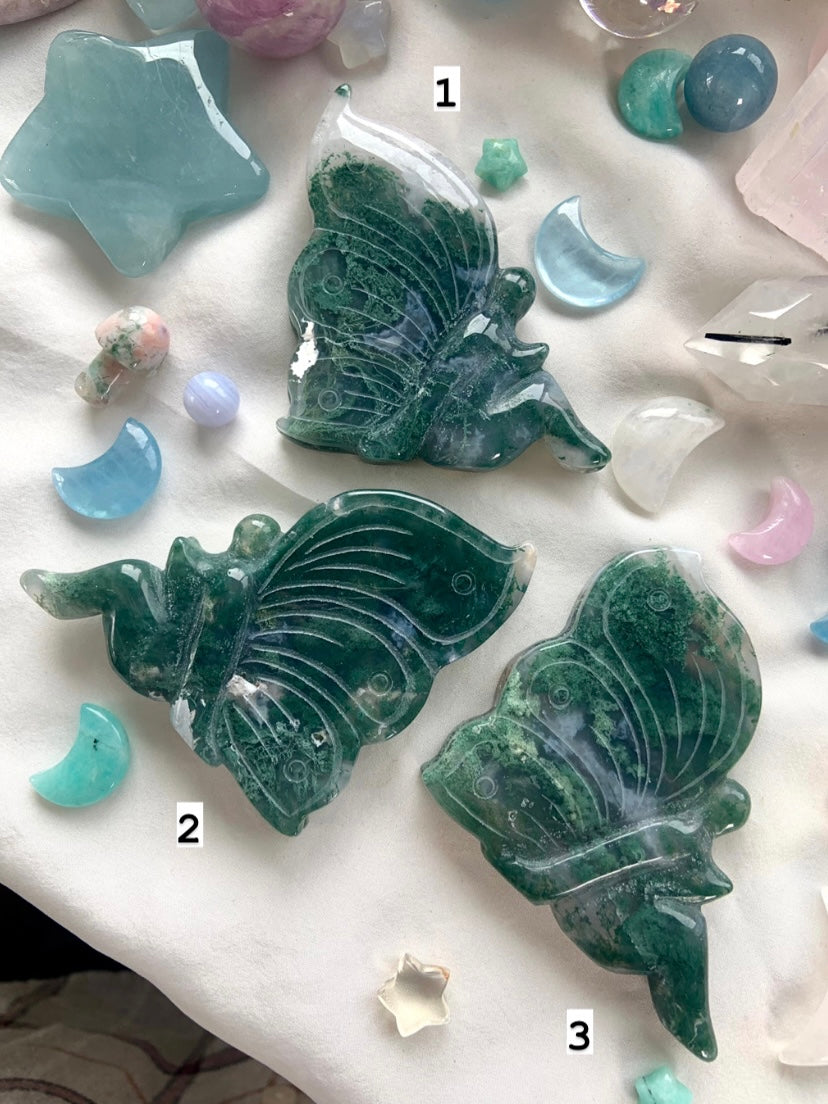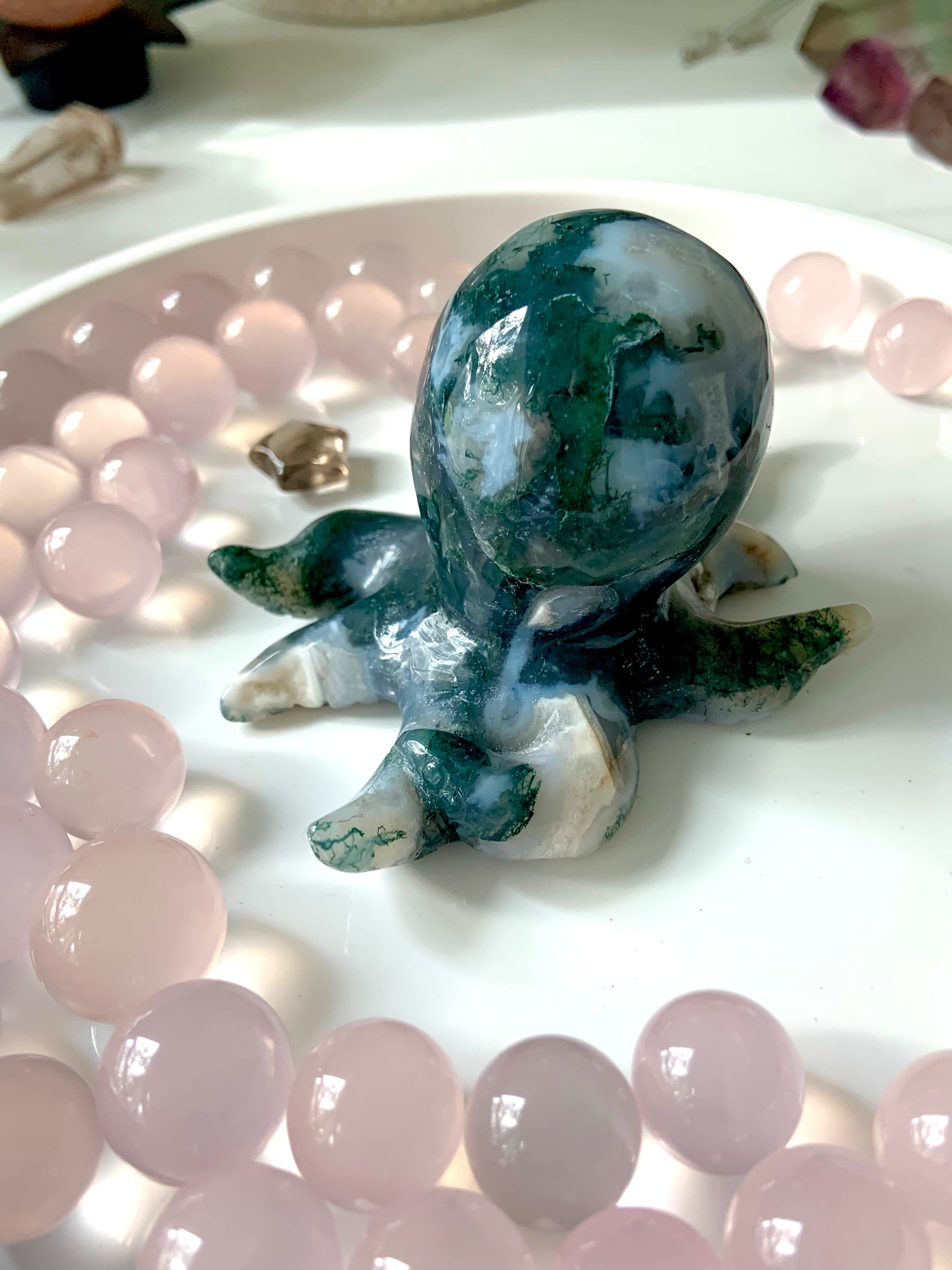 This collection includes moss agate moons, gemstone bowls, bracelets, healing sets, and polished spheres, along with a rotating selection of towers, carved dragons, and one-of-a-kind nature-inspired treasures. Whether you’re seeking spiritual growth, emotional balance, or a deeper relationship with Earth energy, these tranquil green stones support grounding rituals and heart-centered healing.