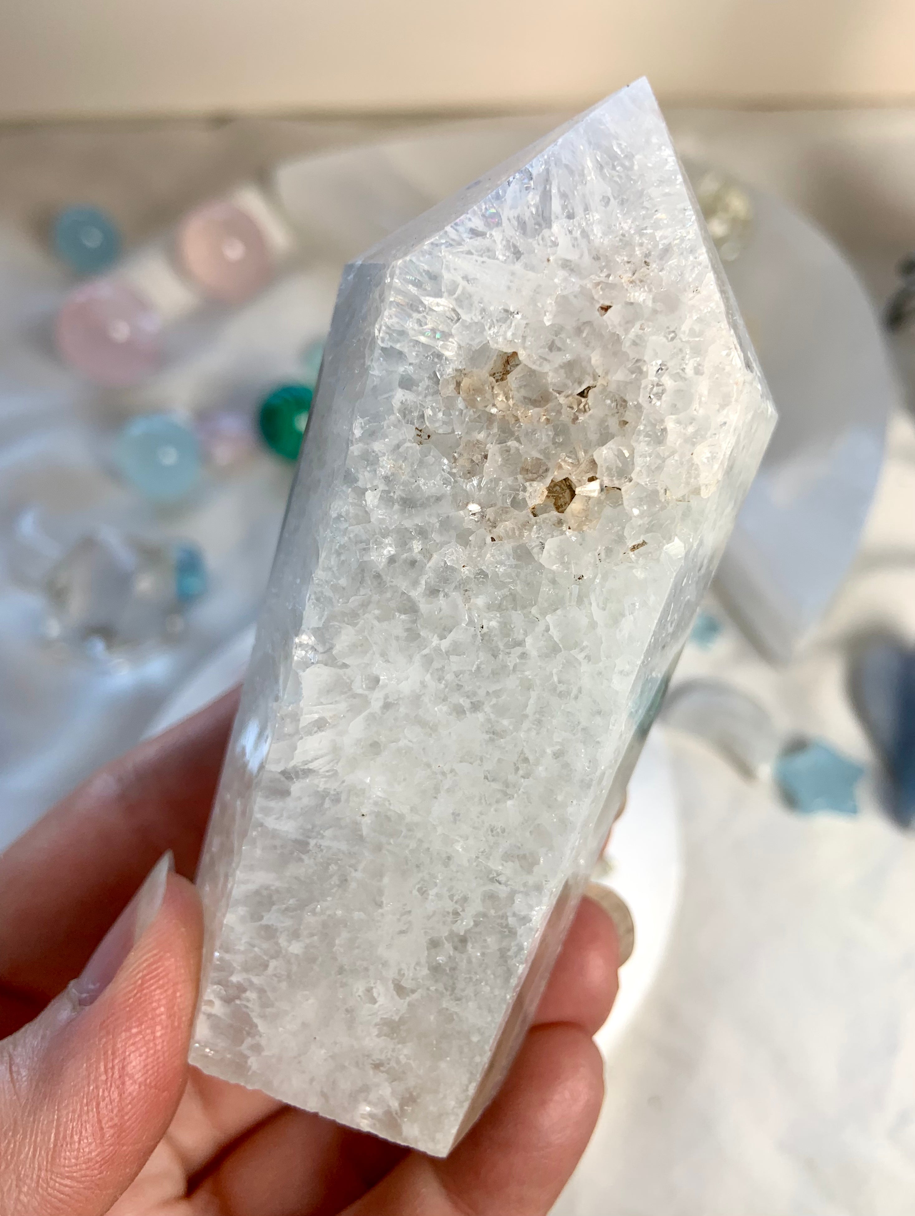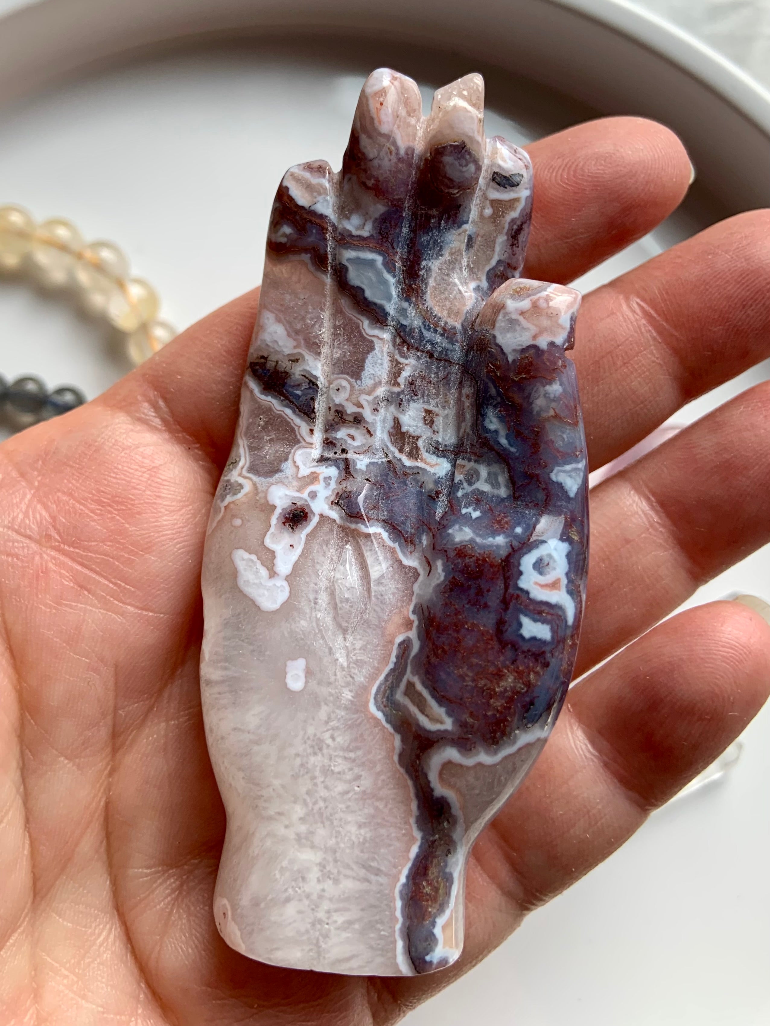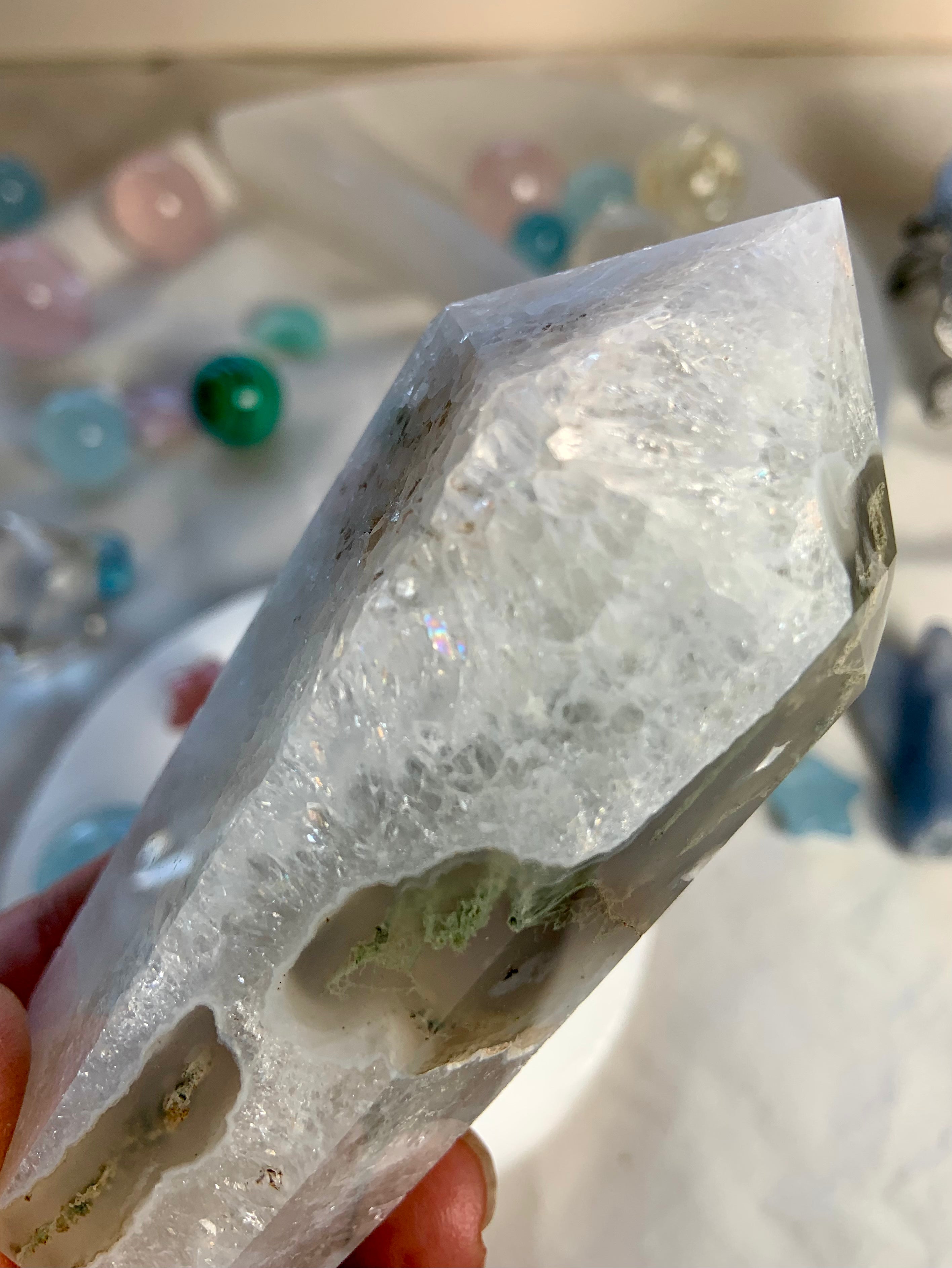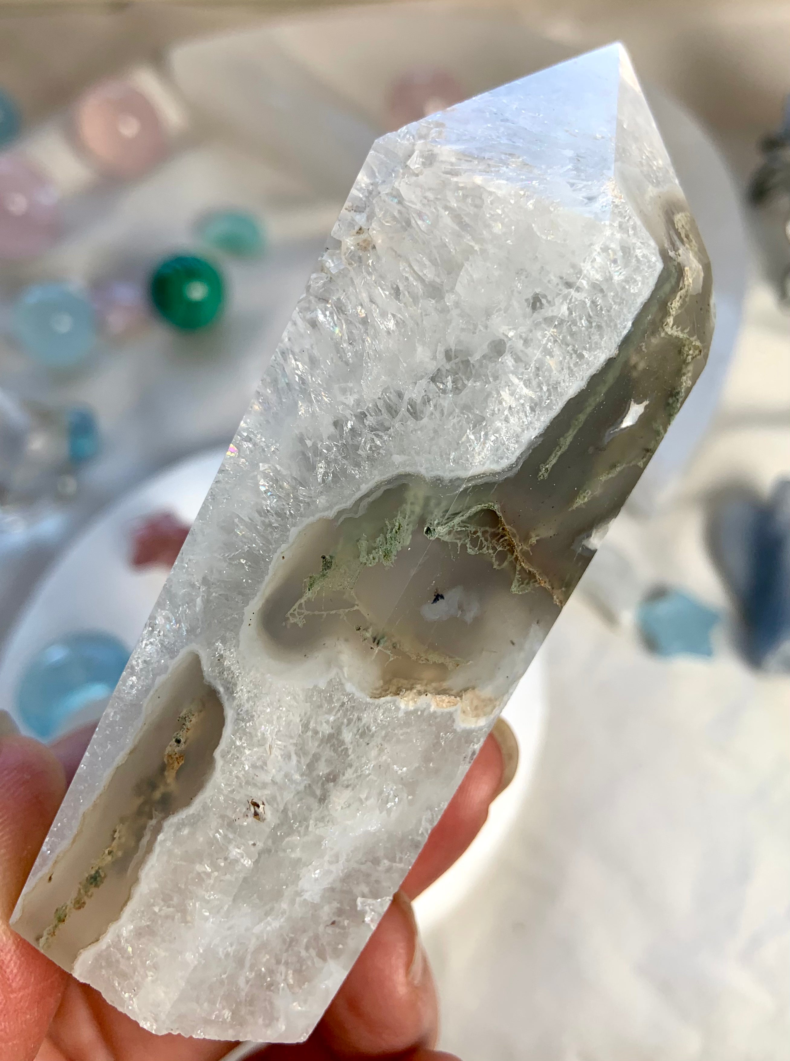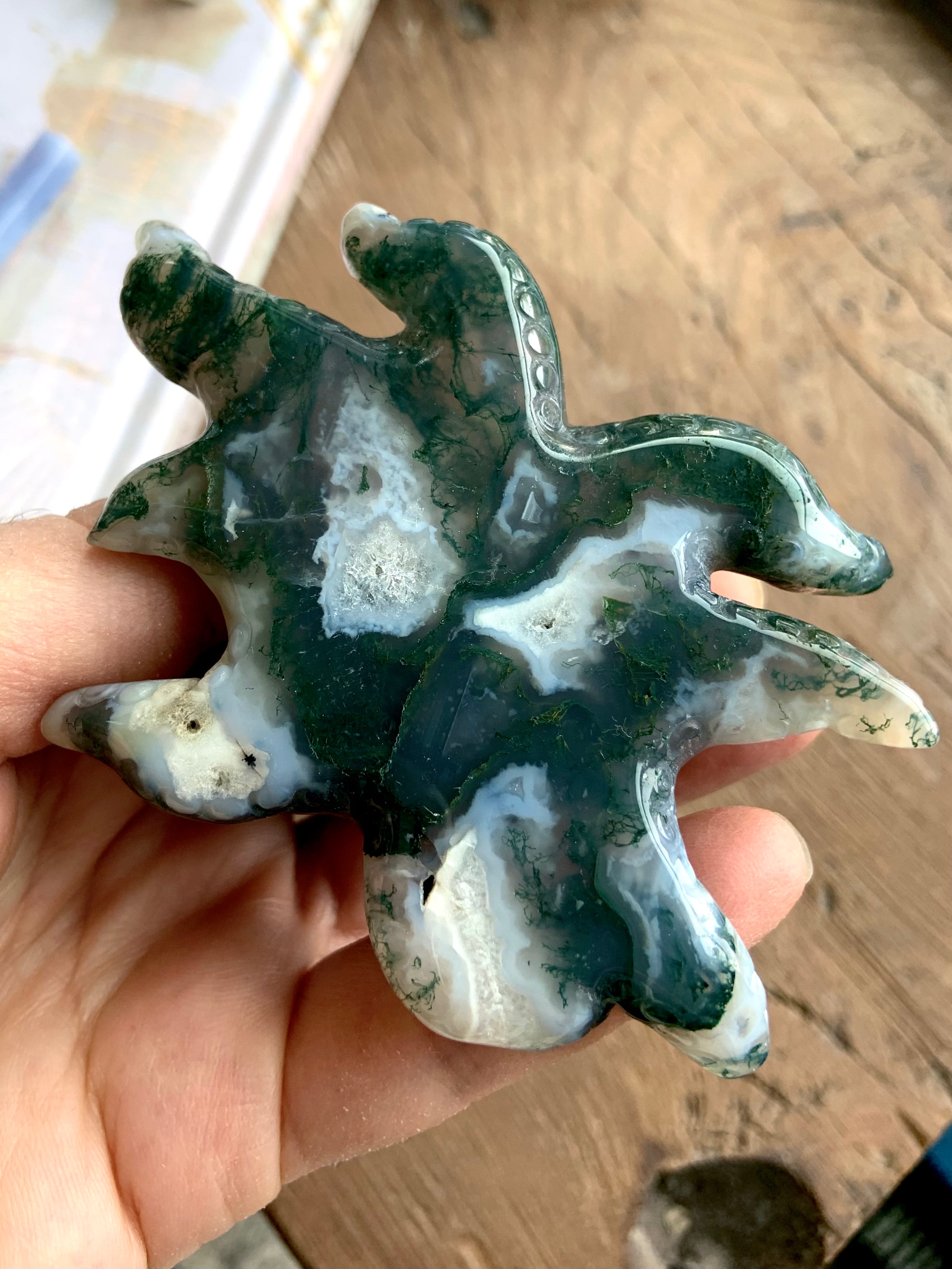 This collection includes moss agate moons, gemstone bowls, bracelets, healing sets, and polished spheres, along with a rotating selection of towers, carved dragons, and one-of-a-kind nature-inspired treasures. Whether you’re seeking spiritual growth, emotional balance, or a deeper relationship with Earth energy, these tranquil green stones support grounding rituals and heart-centered healing.