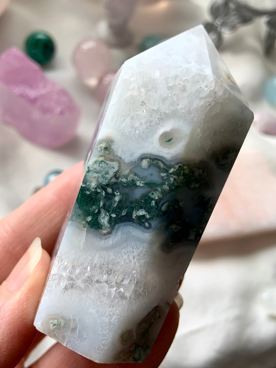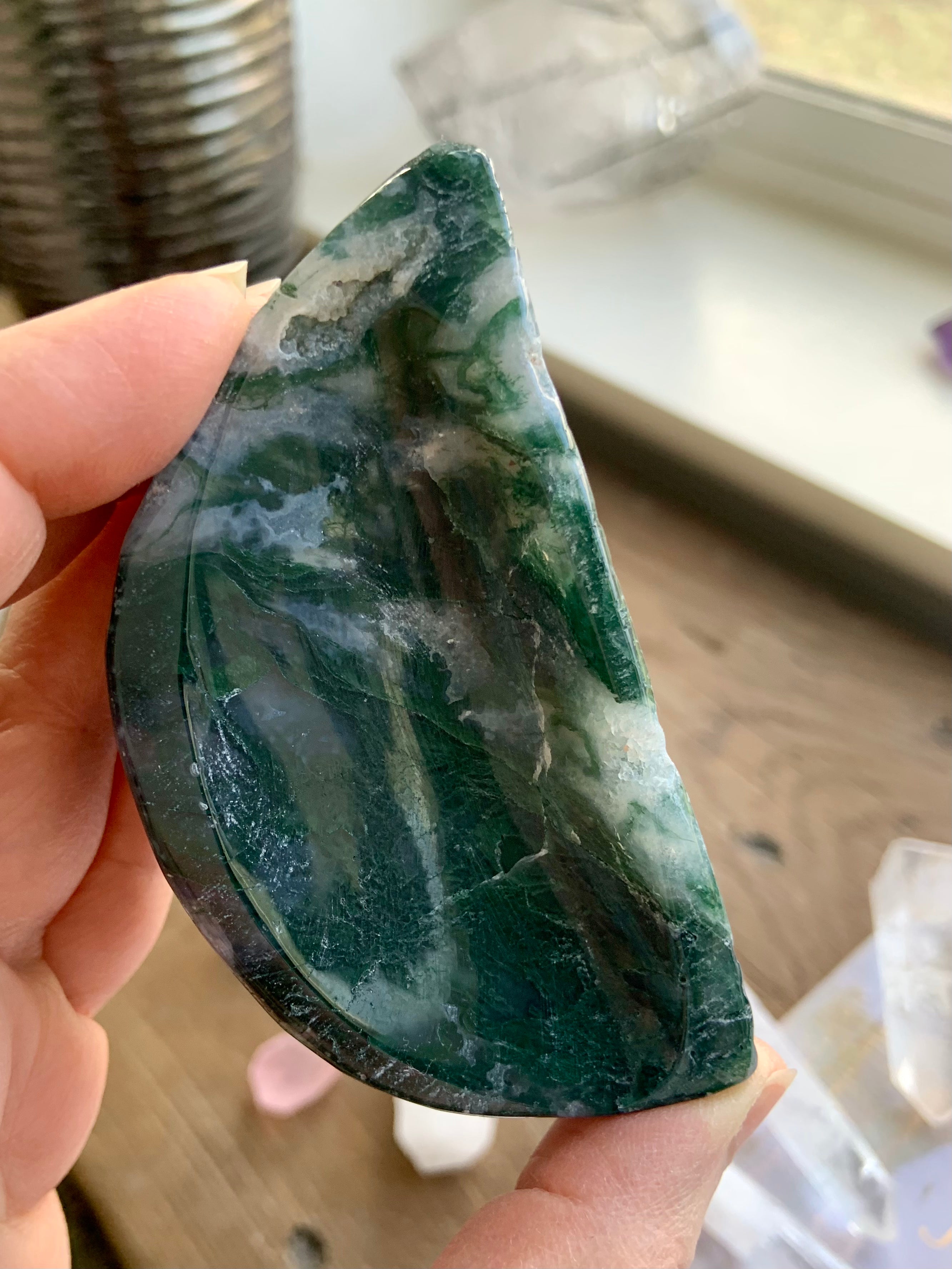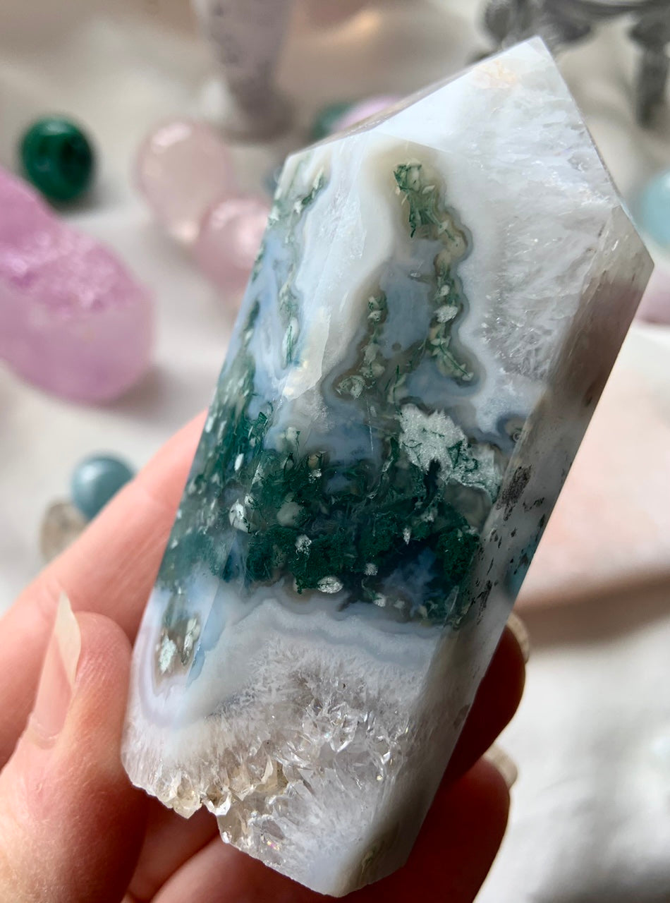 Let Moss Agate reconnect you with the rhythms of the natural world. As a certified crystal healer since 2012, I personally hand-select each piece in this collection for energetic integrity, clarity, and beauty.