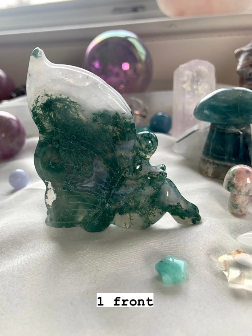 These Moss Agate Fairies look different on both sides + in different lighting/angles.